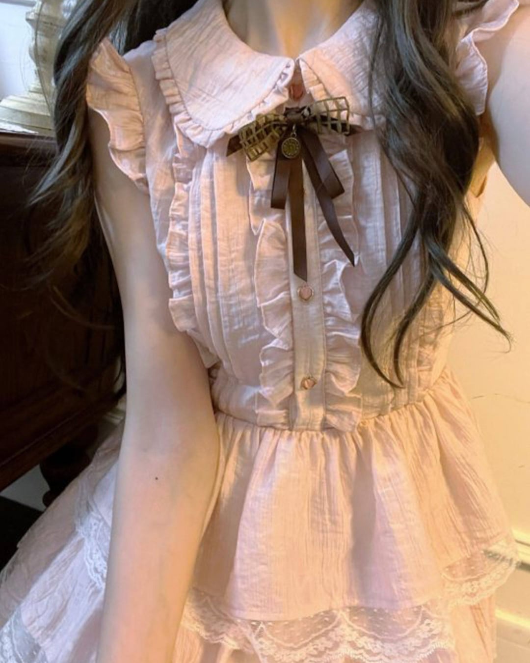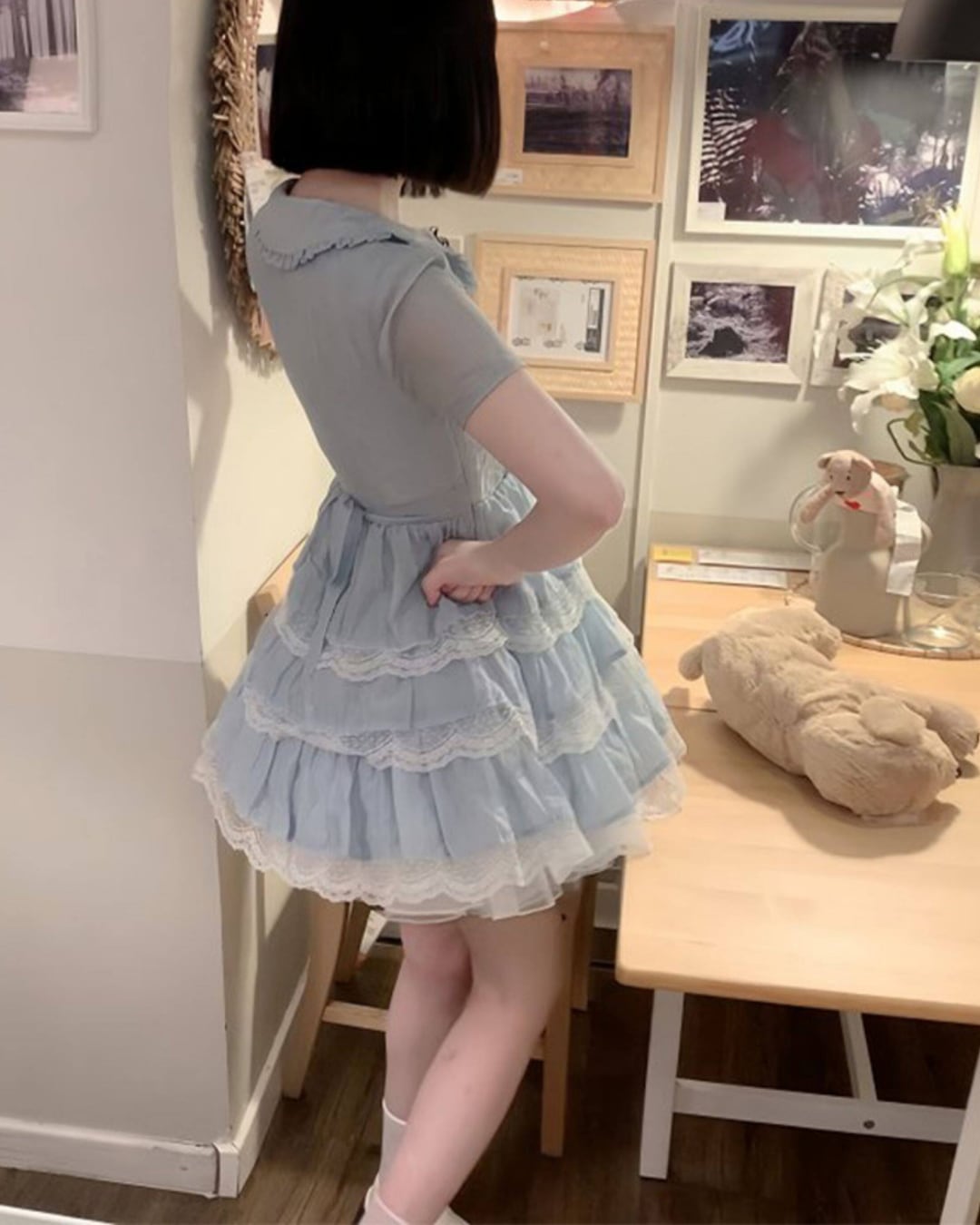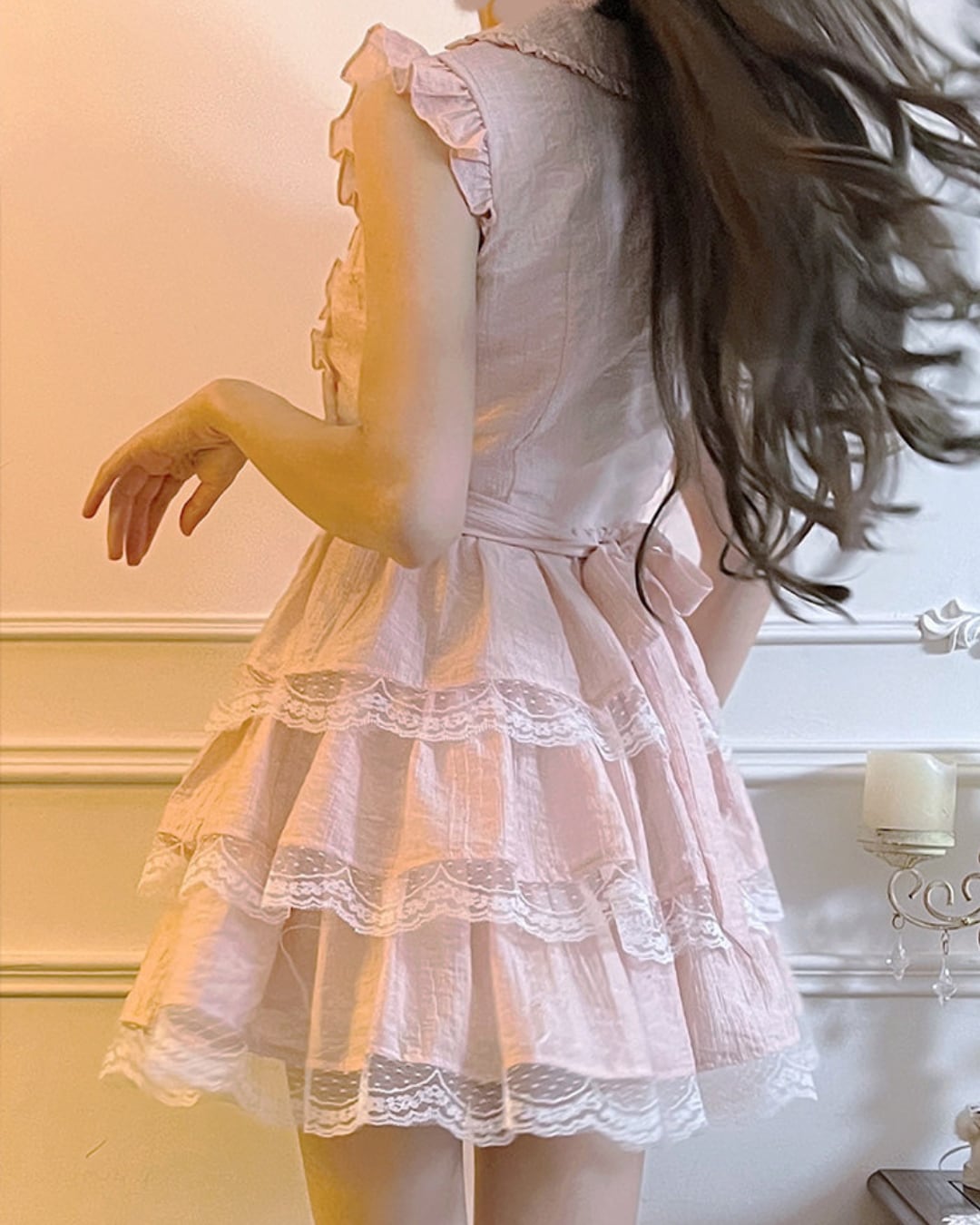 レースを重ねたティアードスカートで甘くガーリーな印象を演出⑅⃛