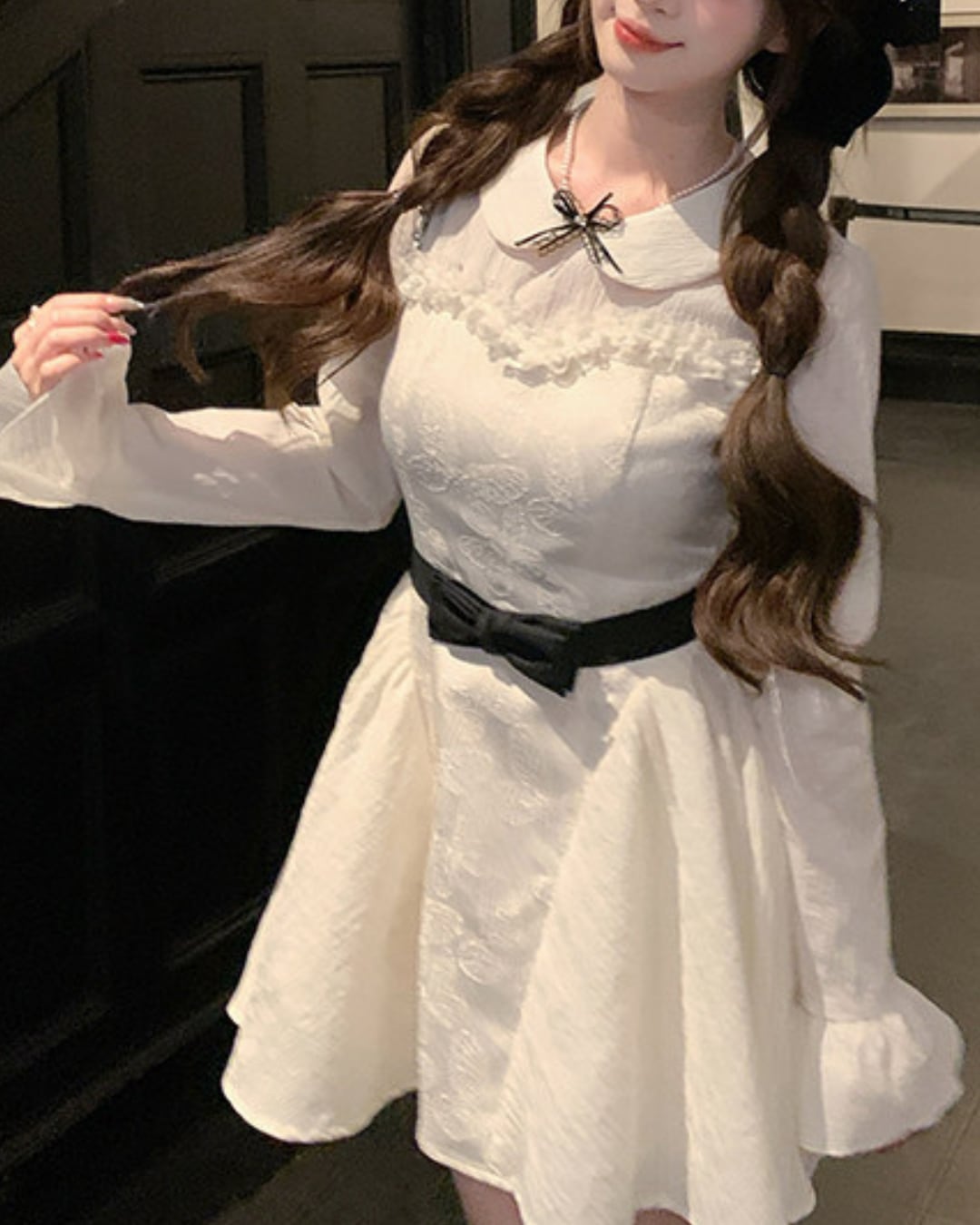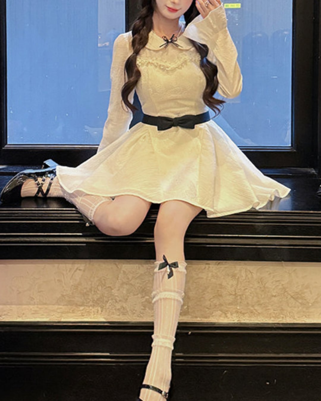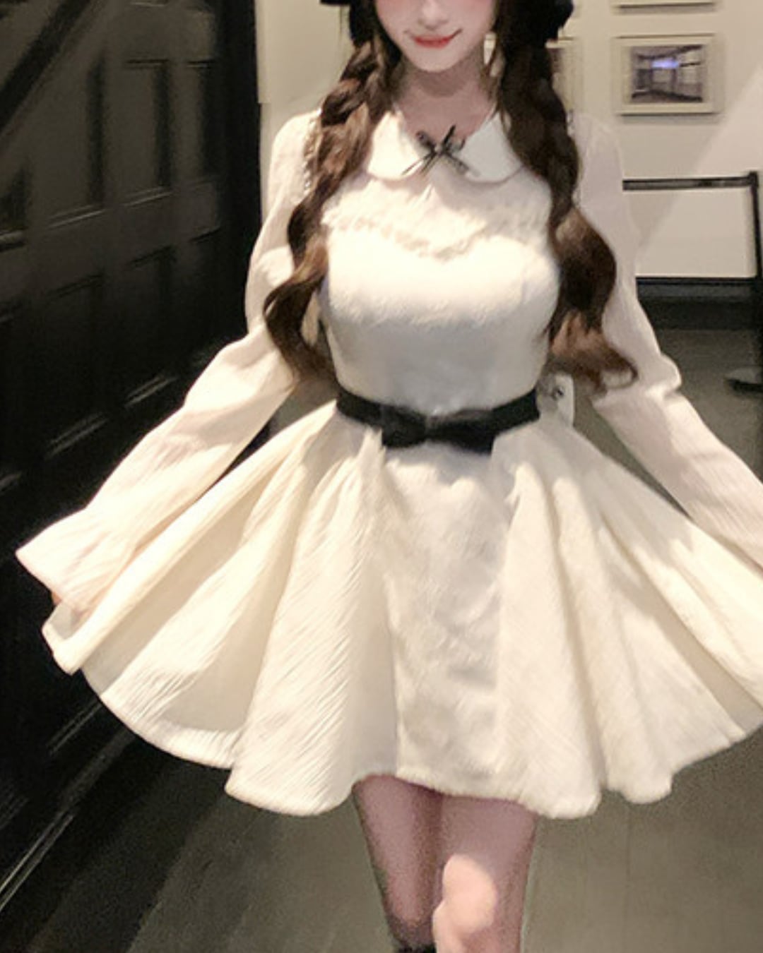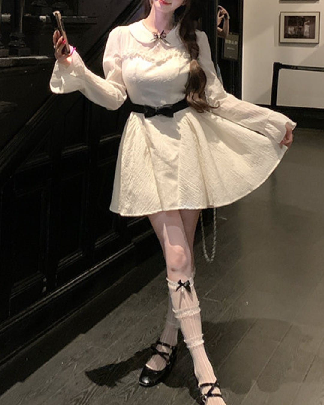ブラックのウエストリボンが映えるドーリーなワンピース♡