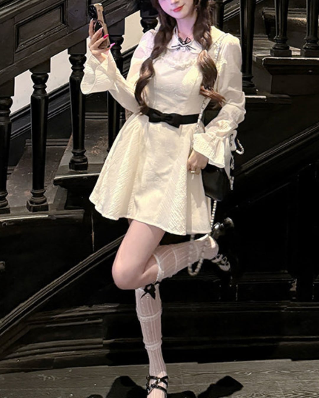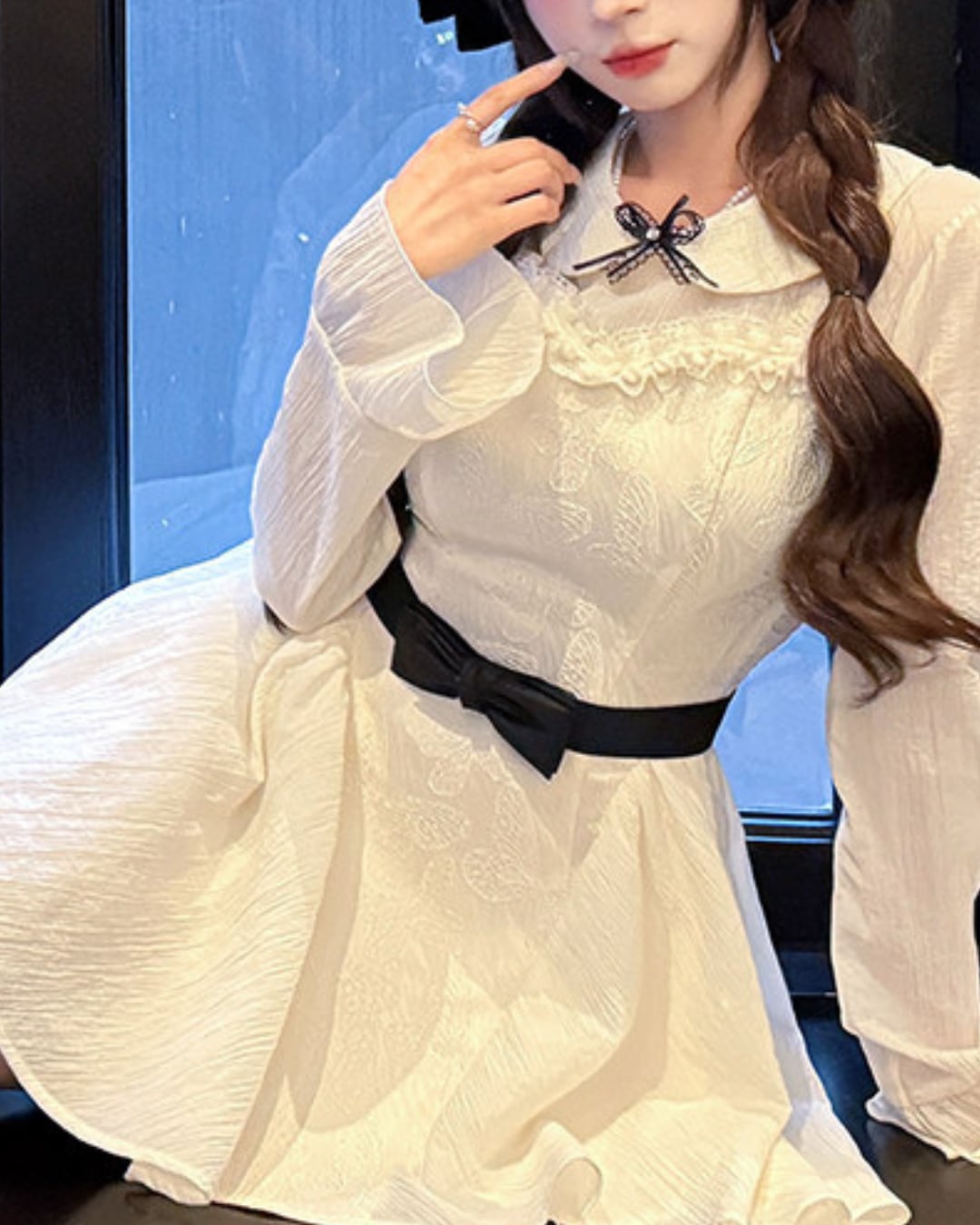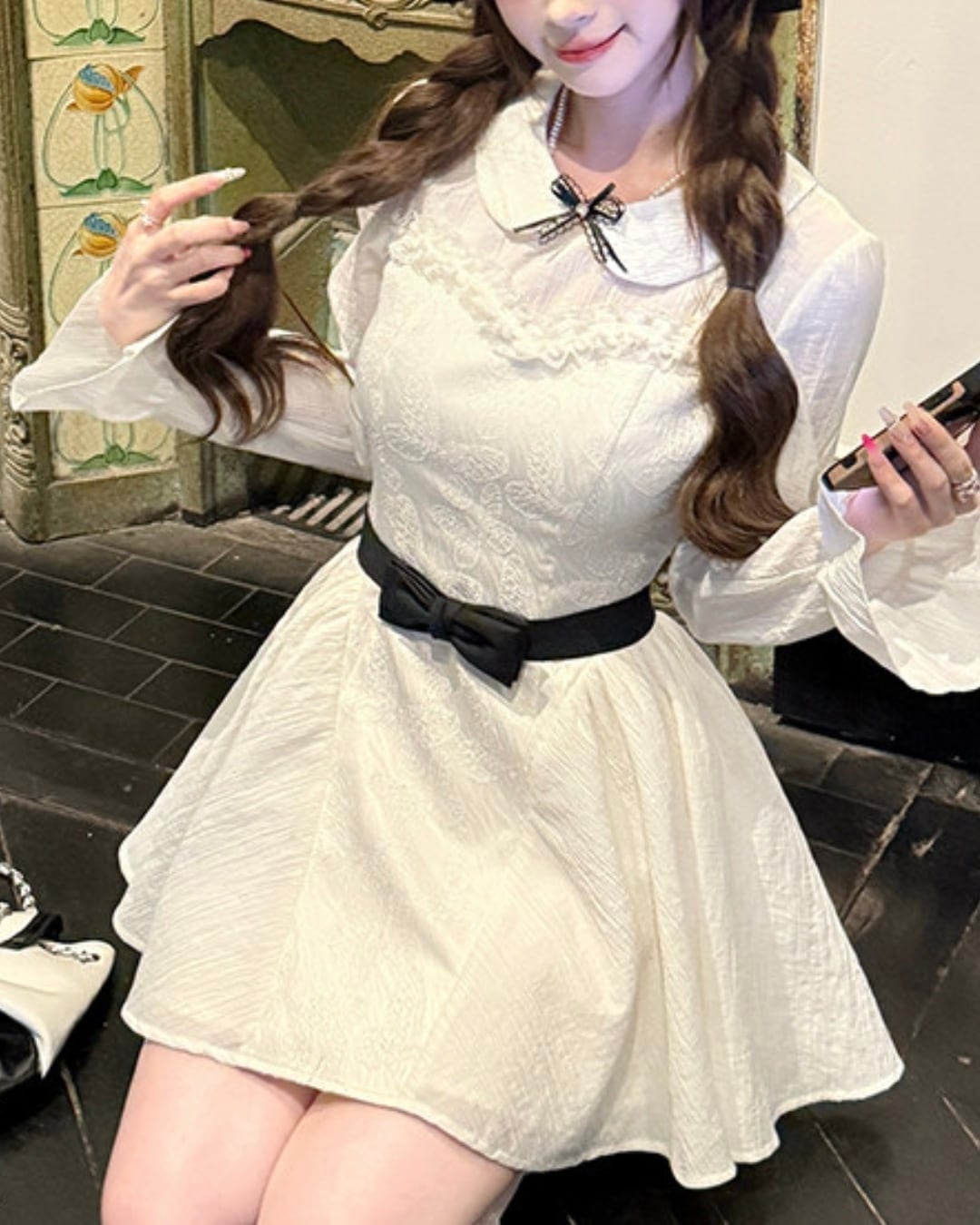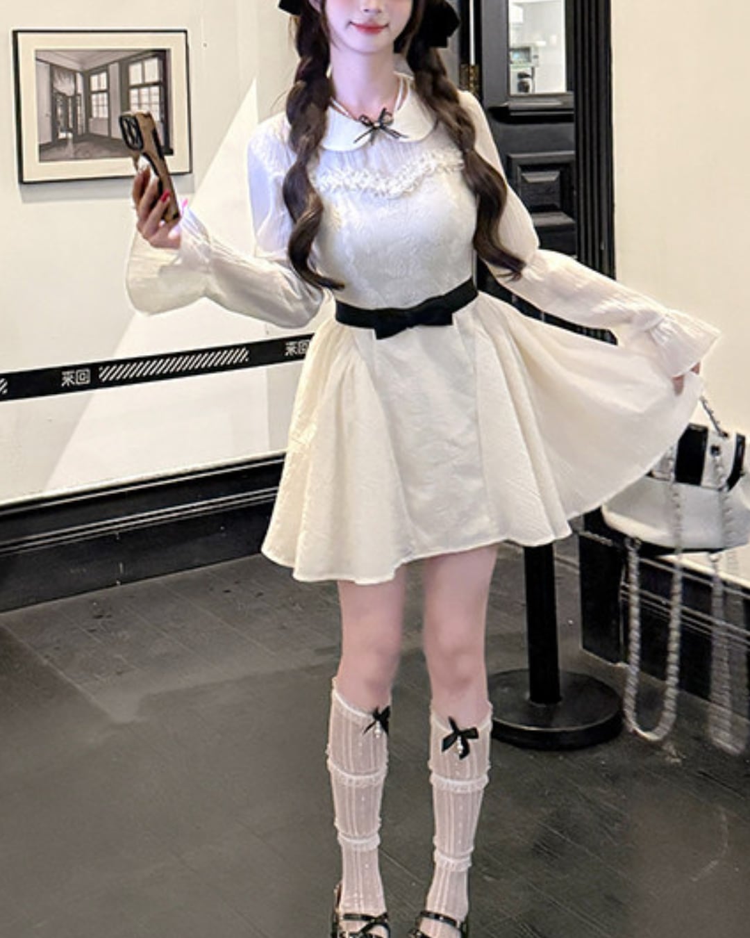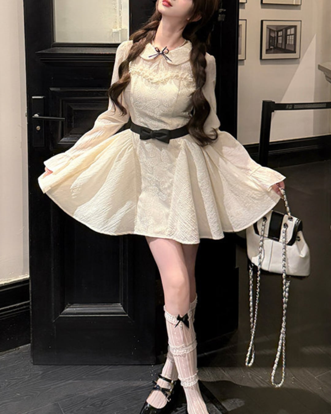 ブラックのウエストリボンが映えるドーリーなワンピース♡