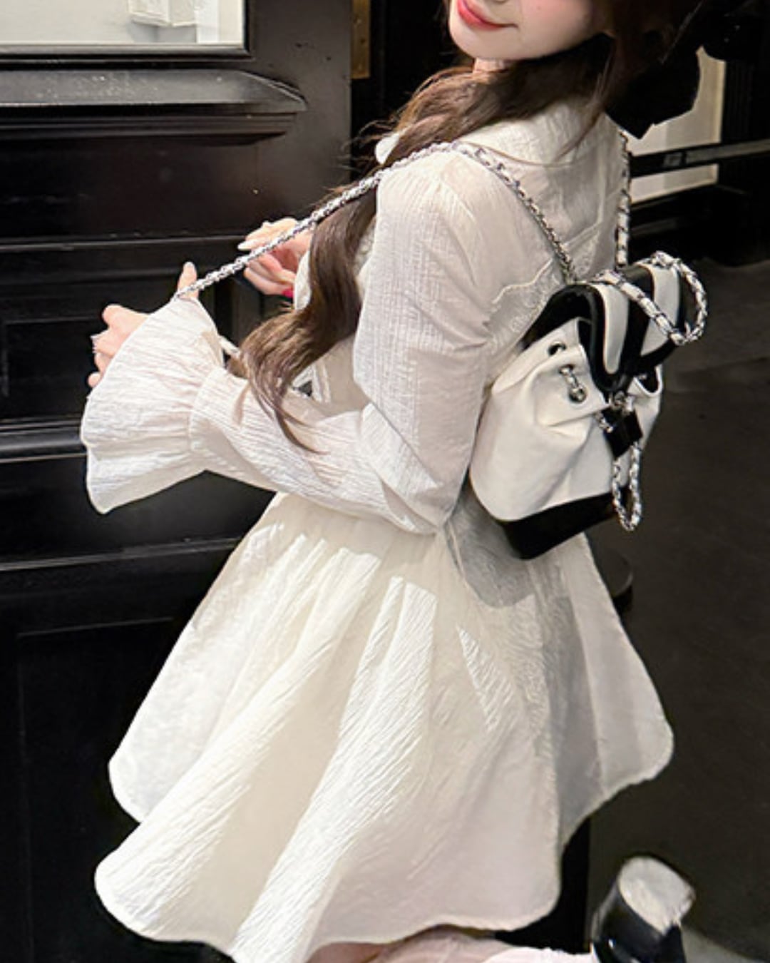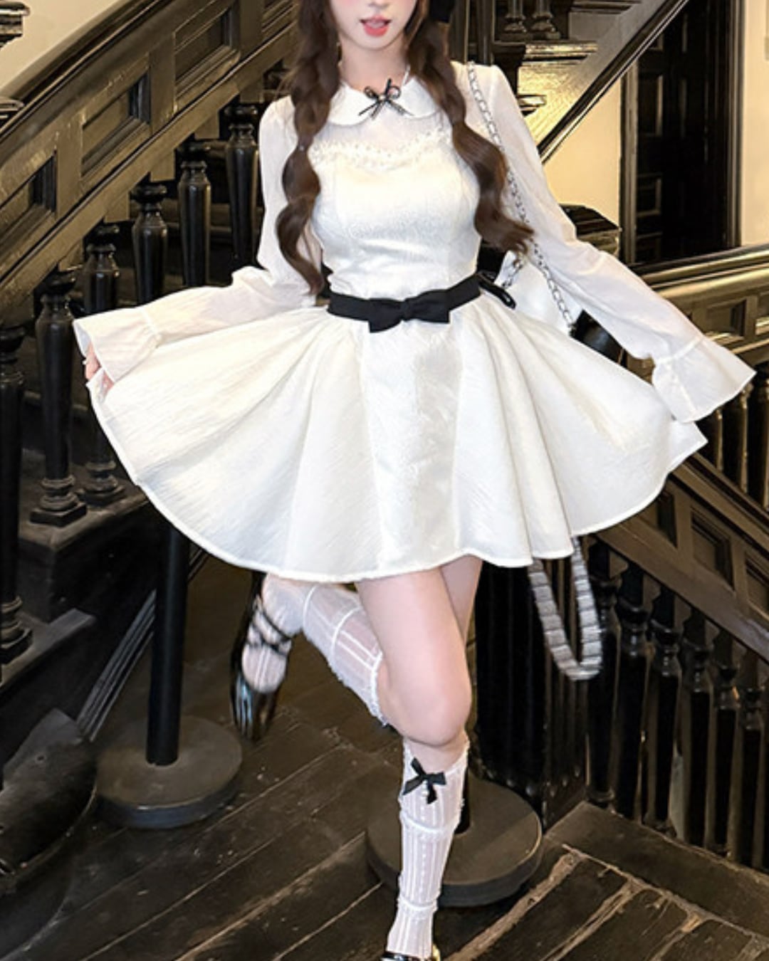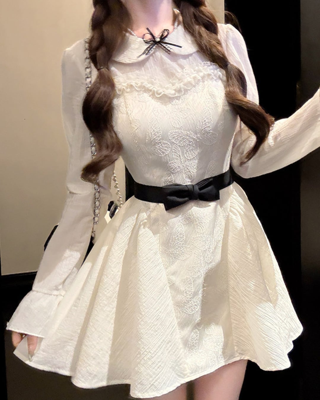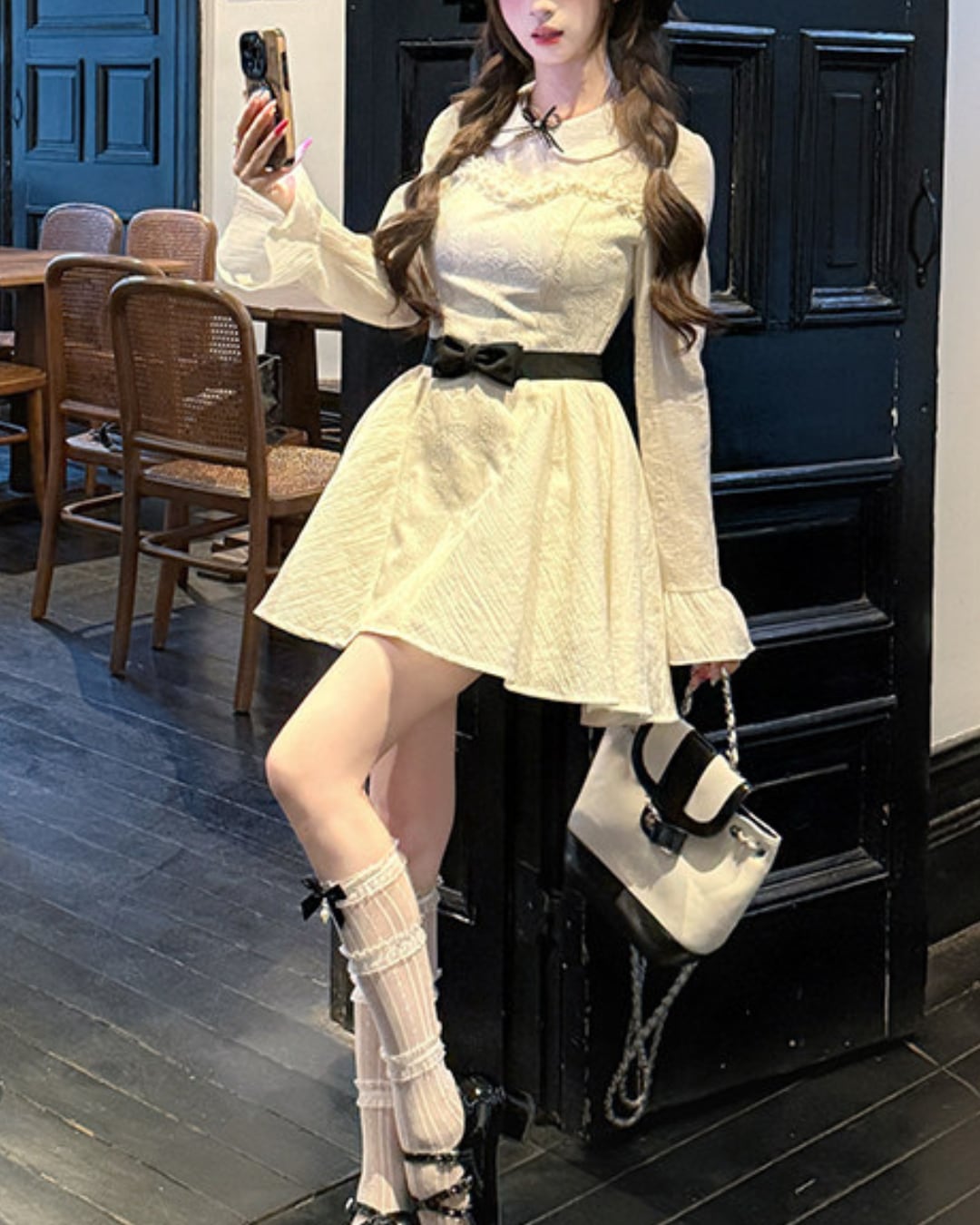 ブラックのウエストリボンが映えるドーリーなワンピース♡
