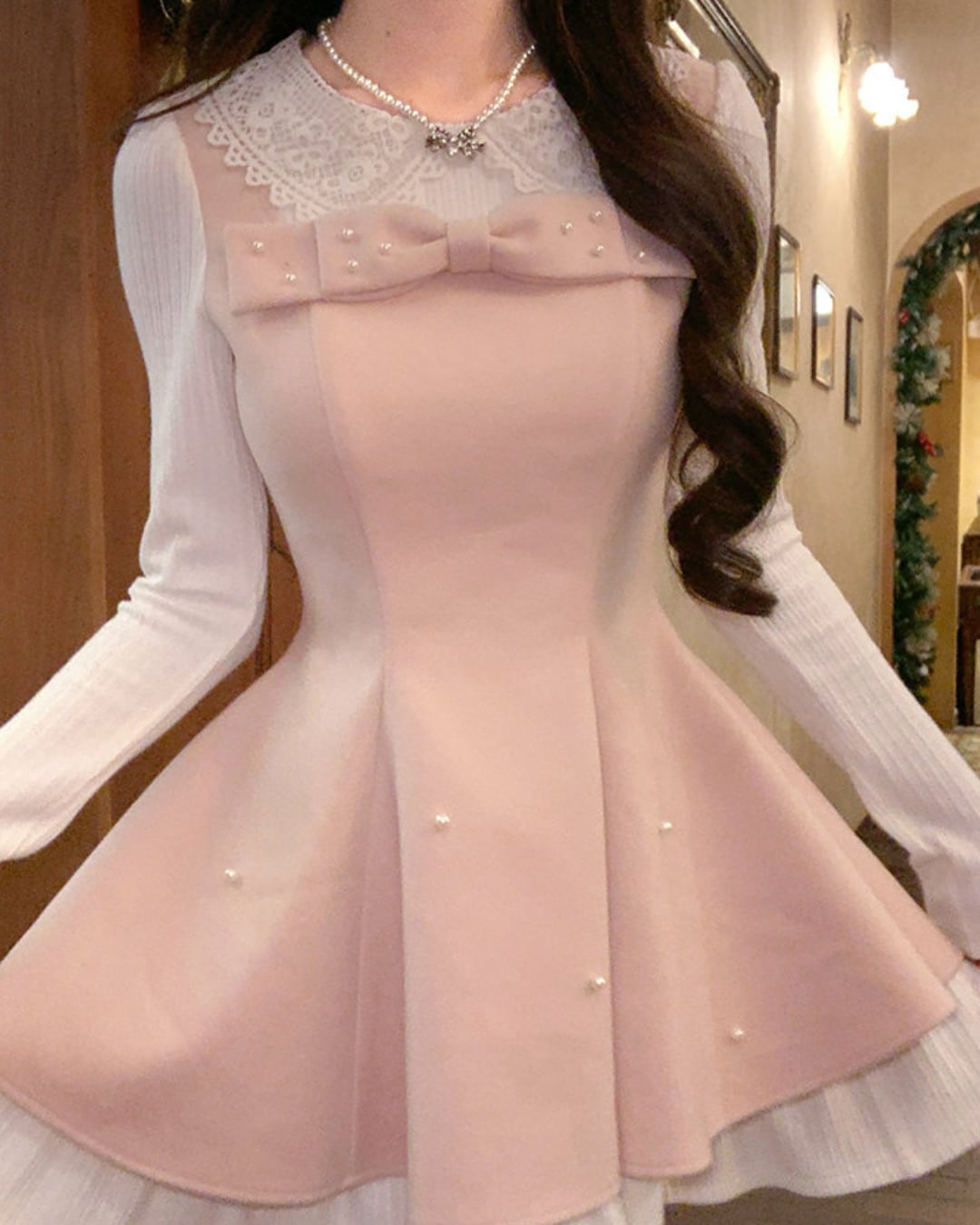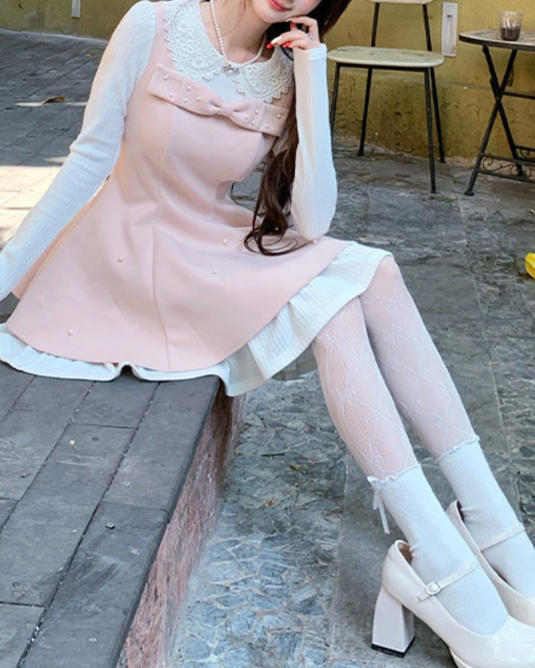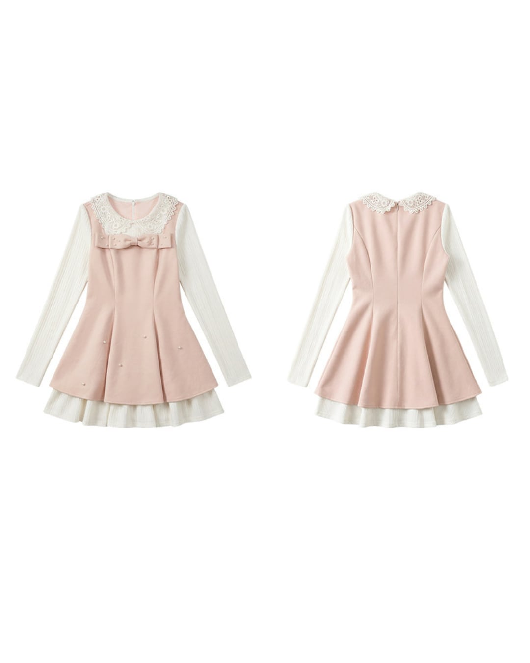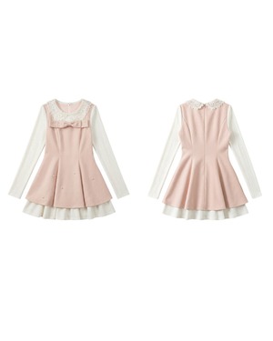 レースカラーのブラウスにワンピースを重ねたような