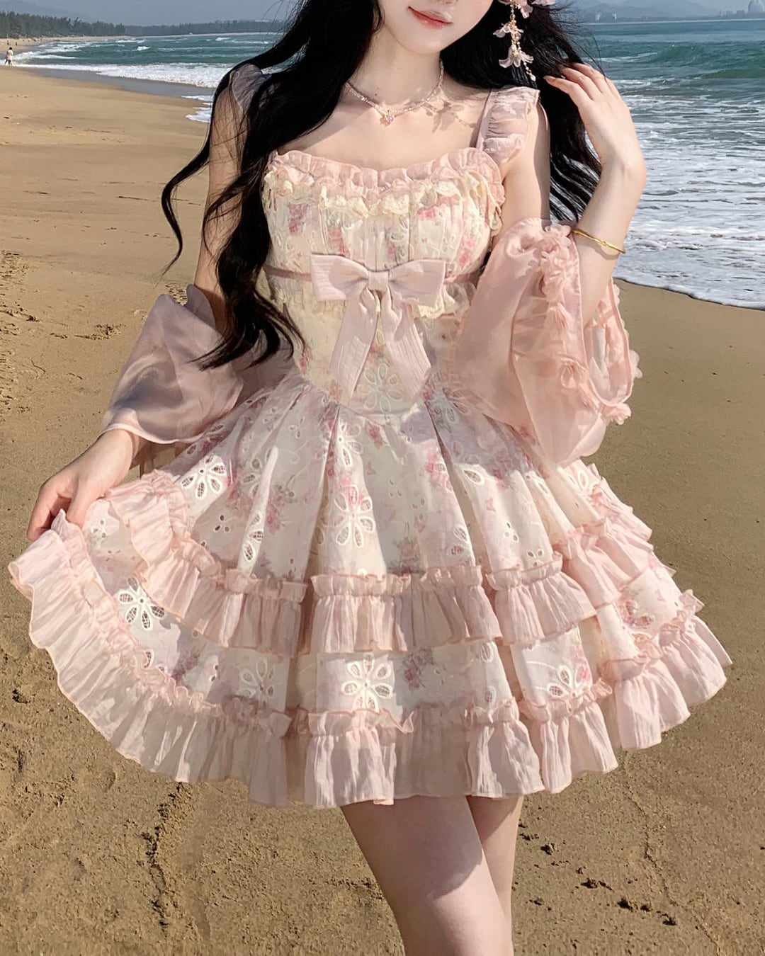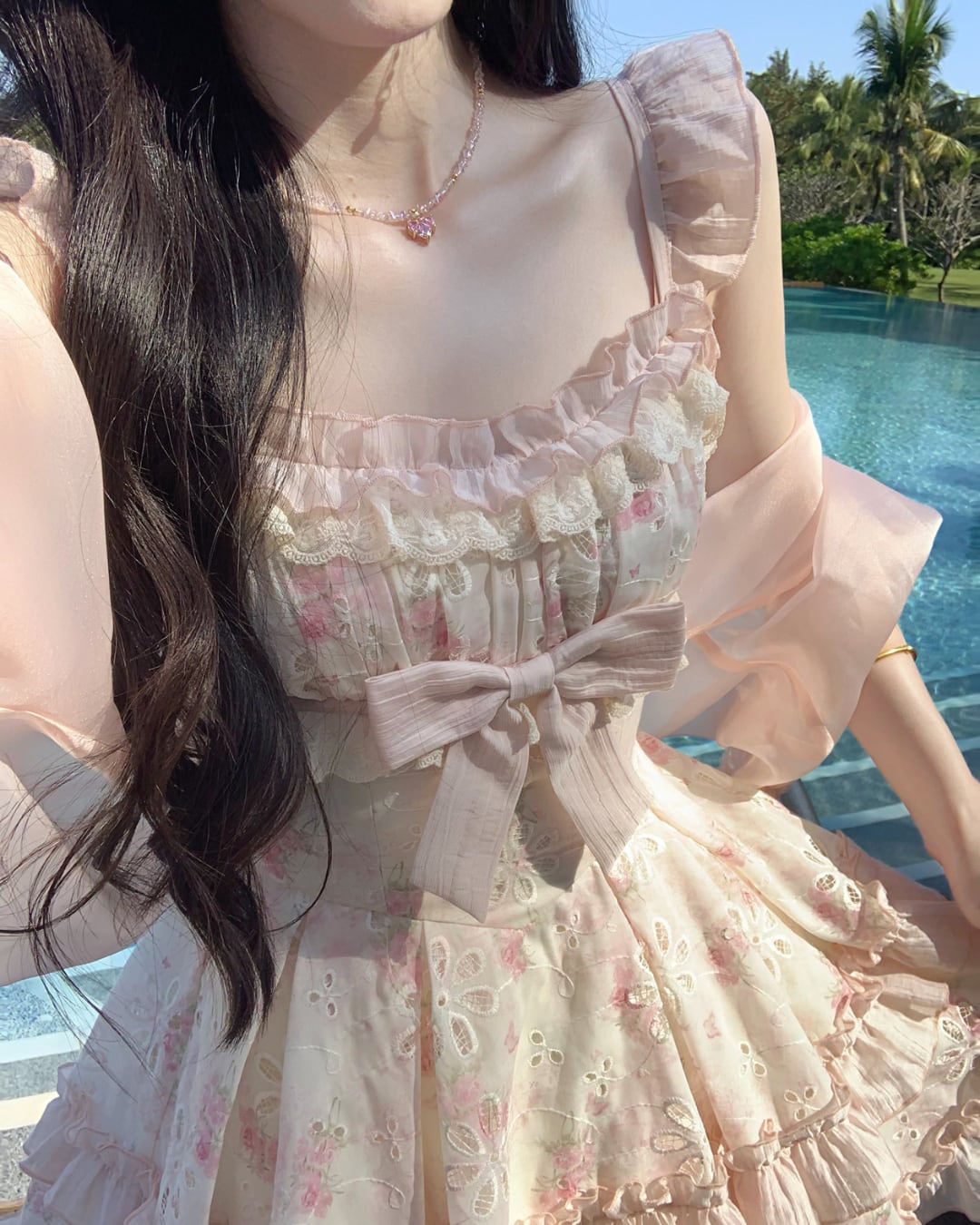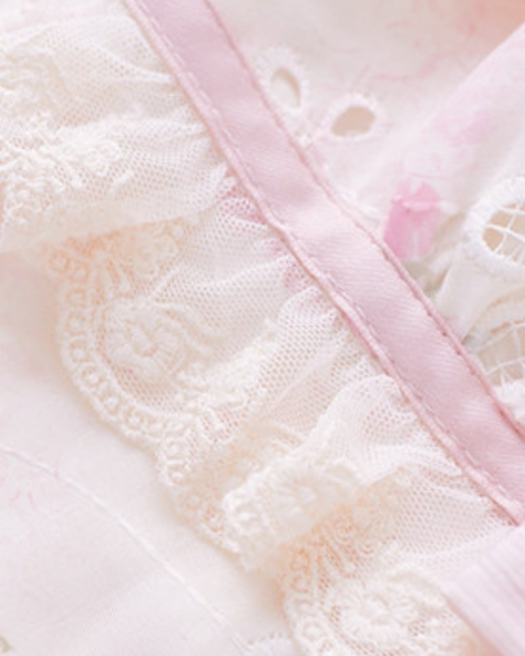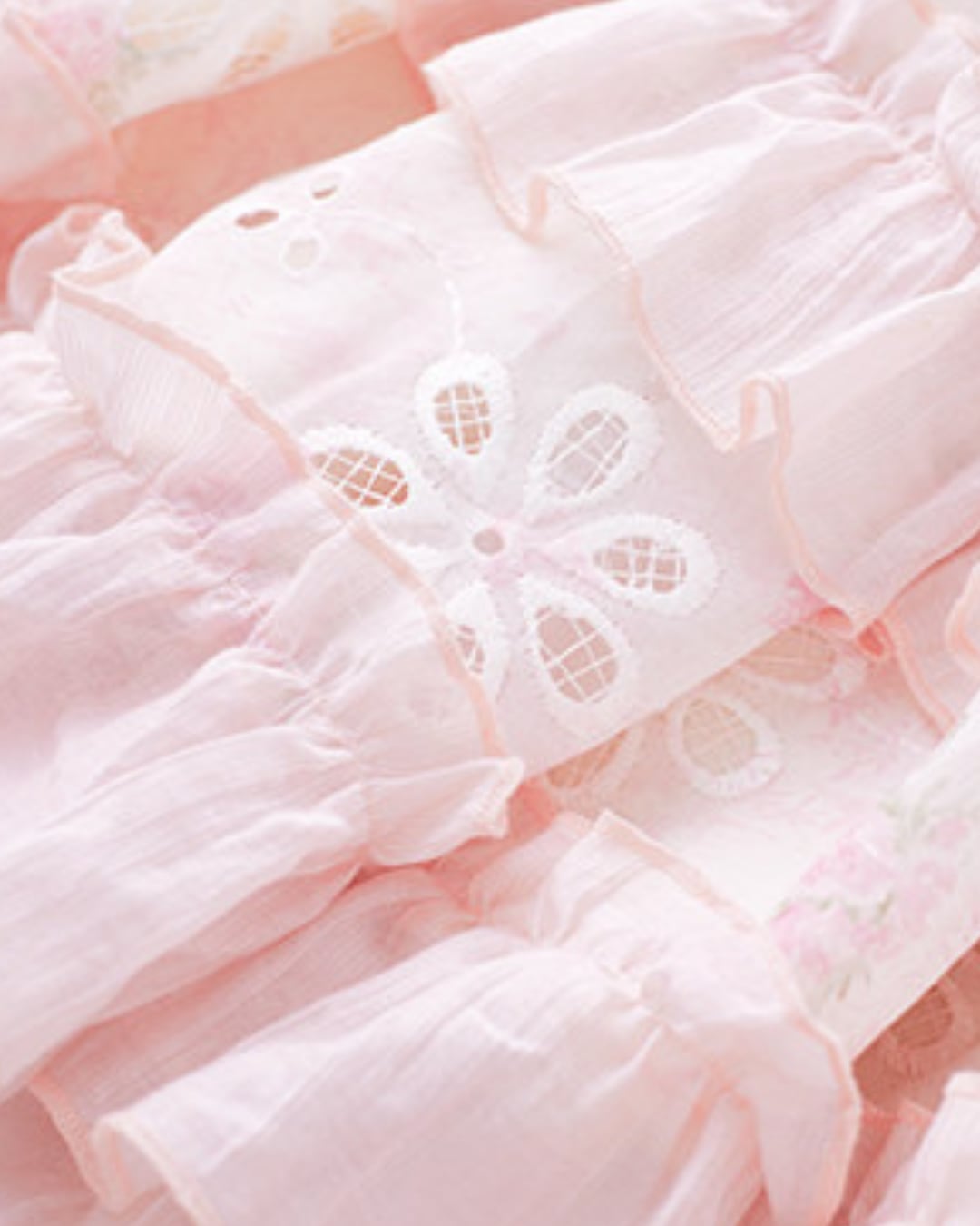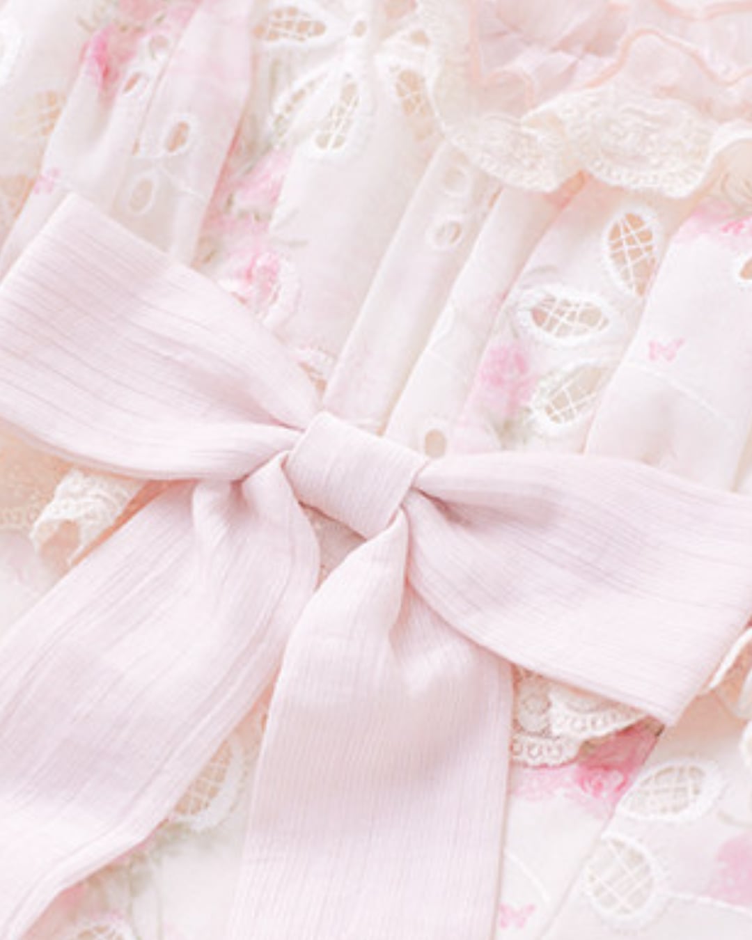 フラワーカットワークにリボンとフリルを詰め込んだ