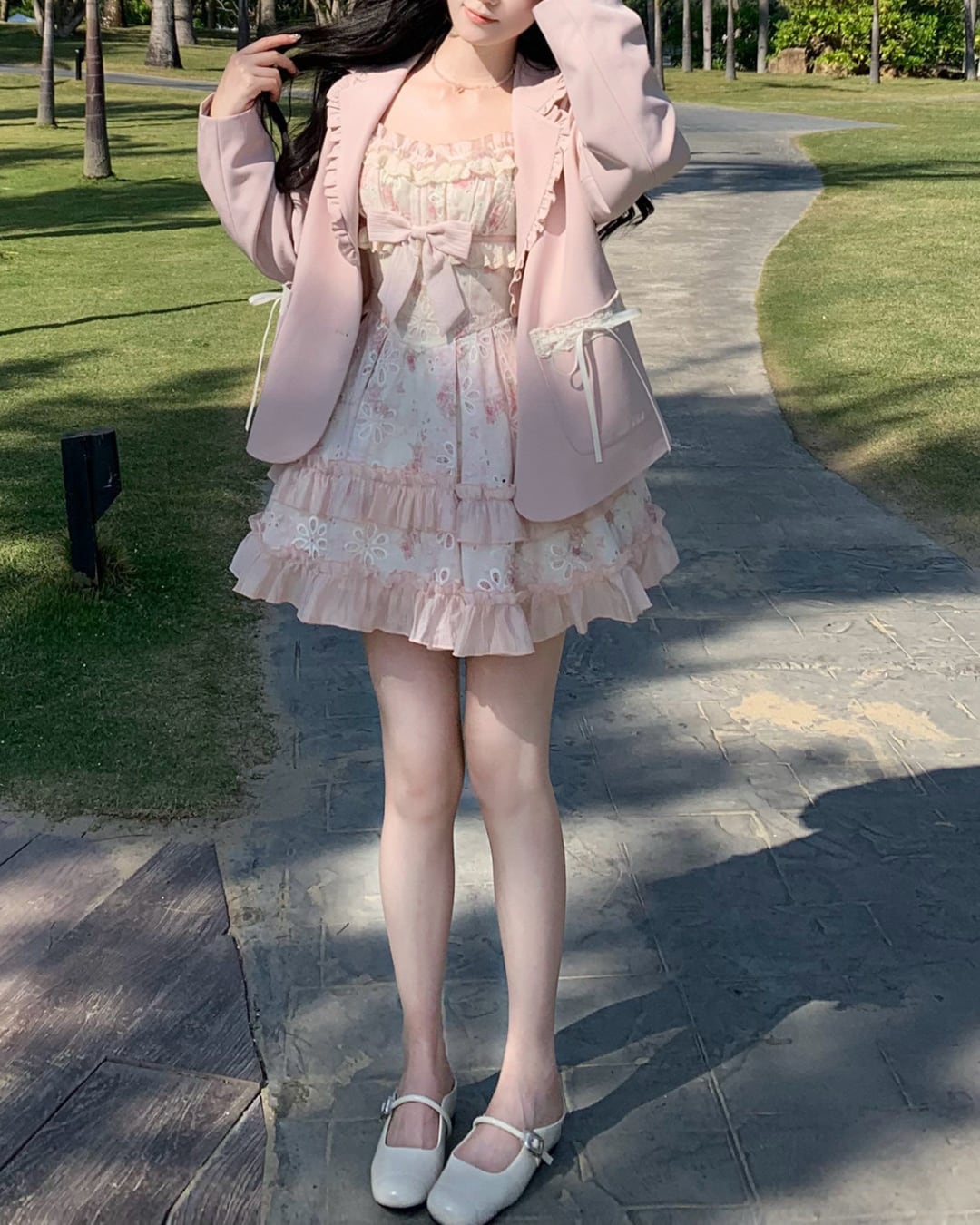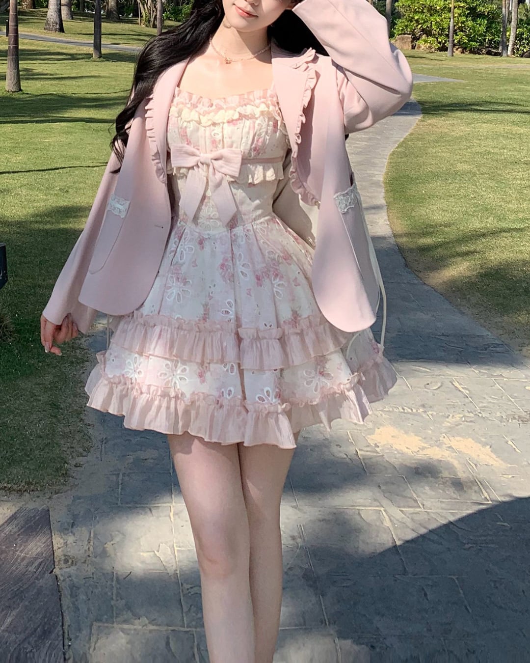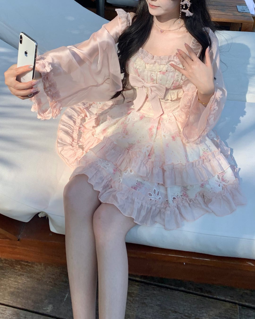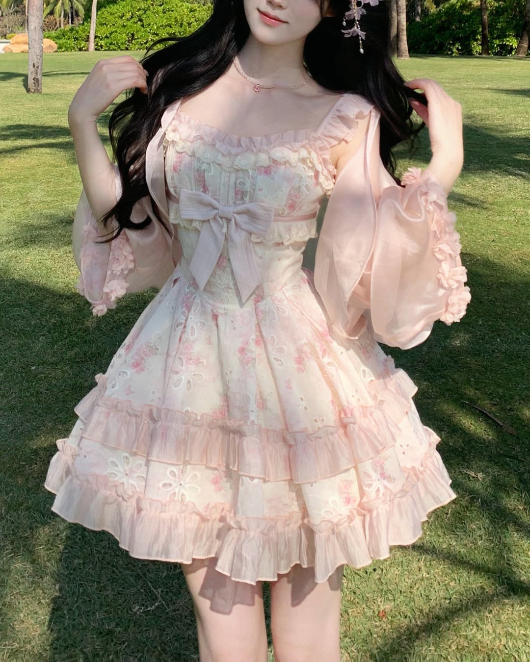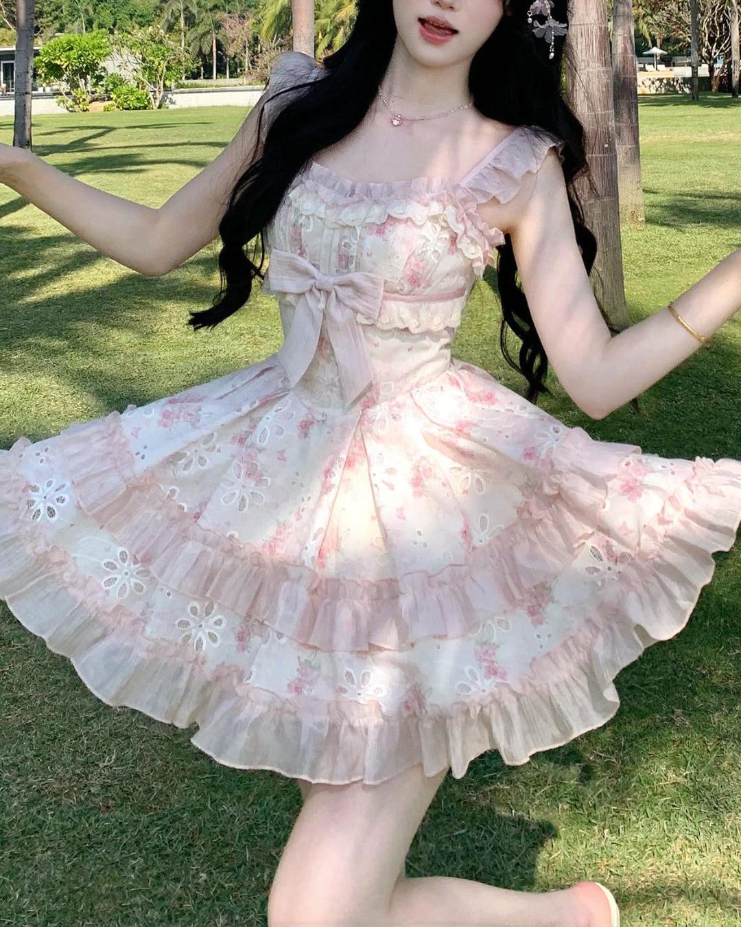 フラワーカットワークにリボンとフリルを詰め込んだ