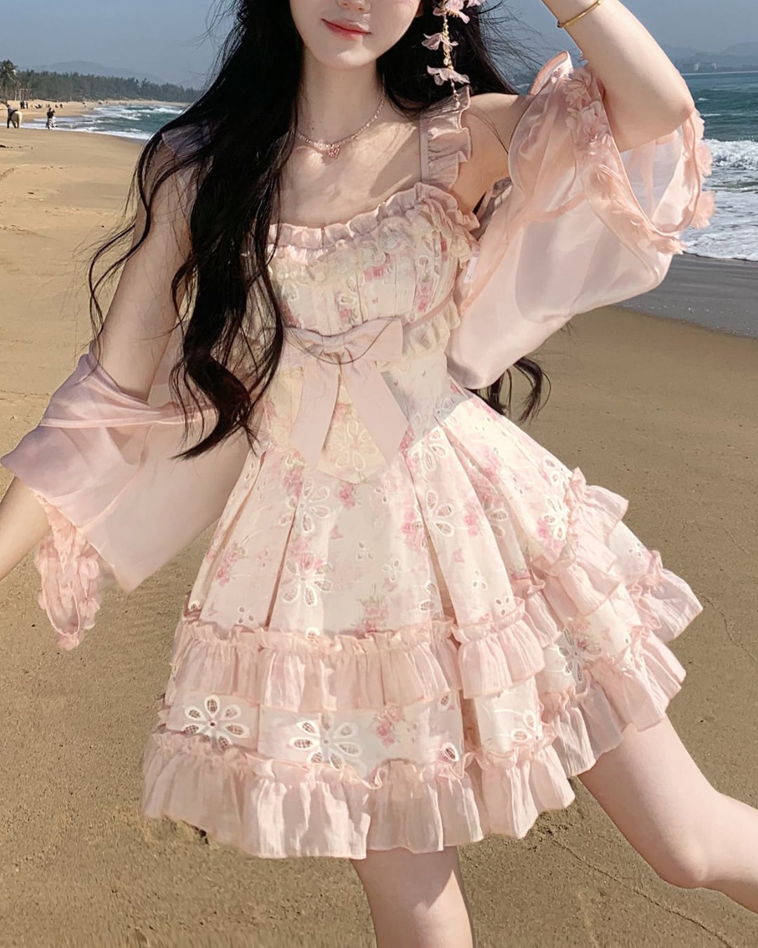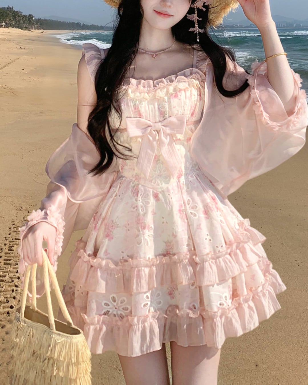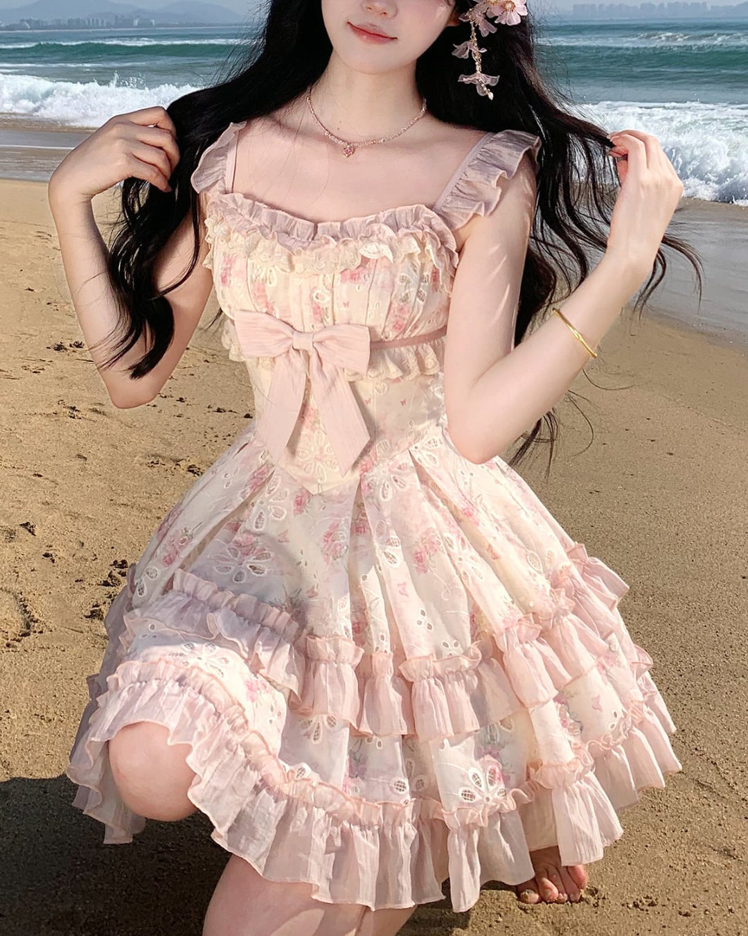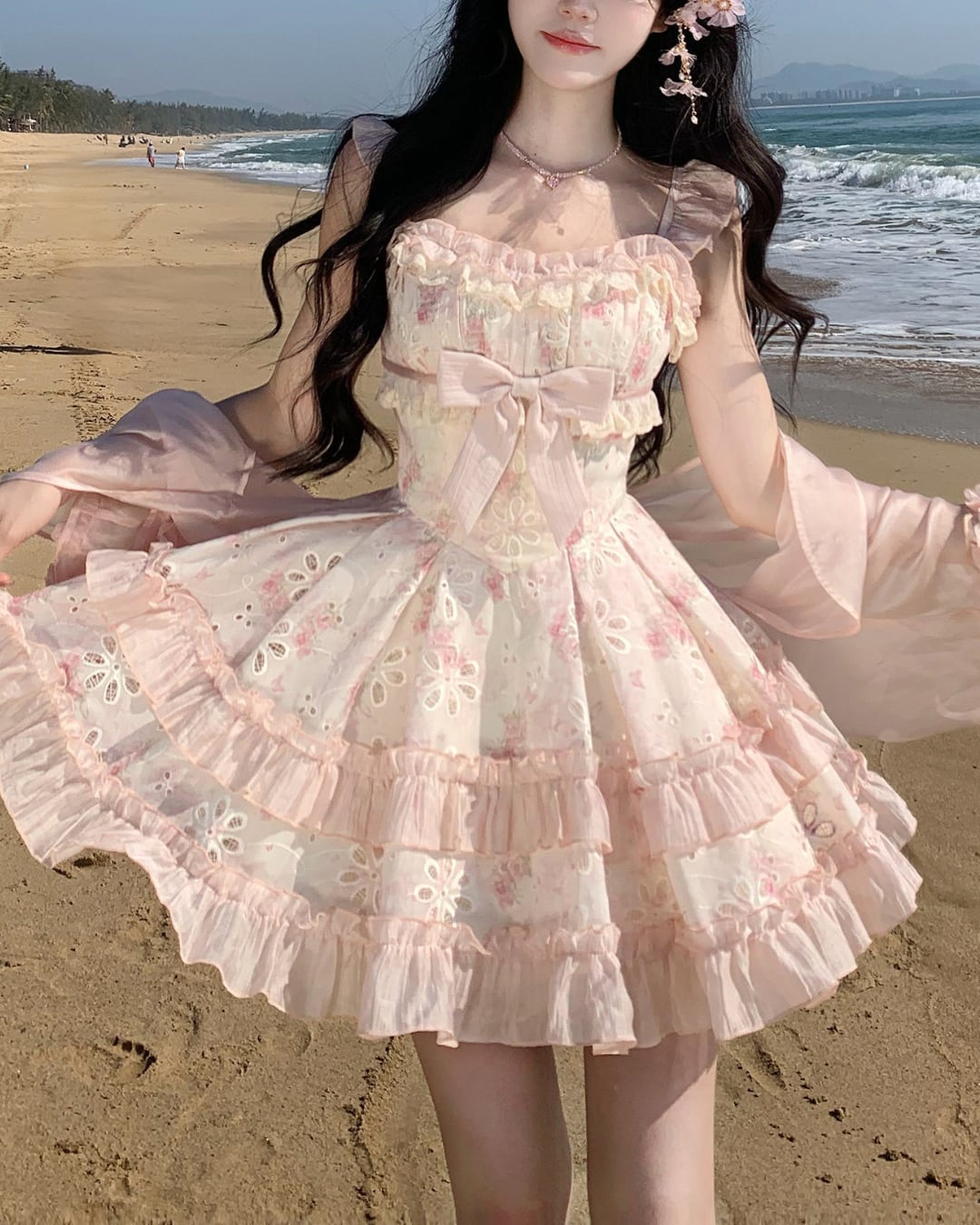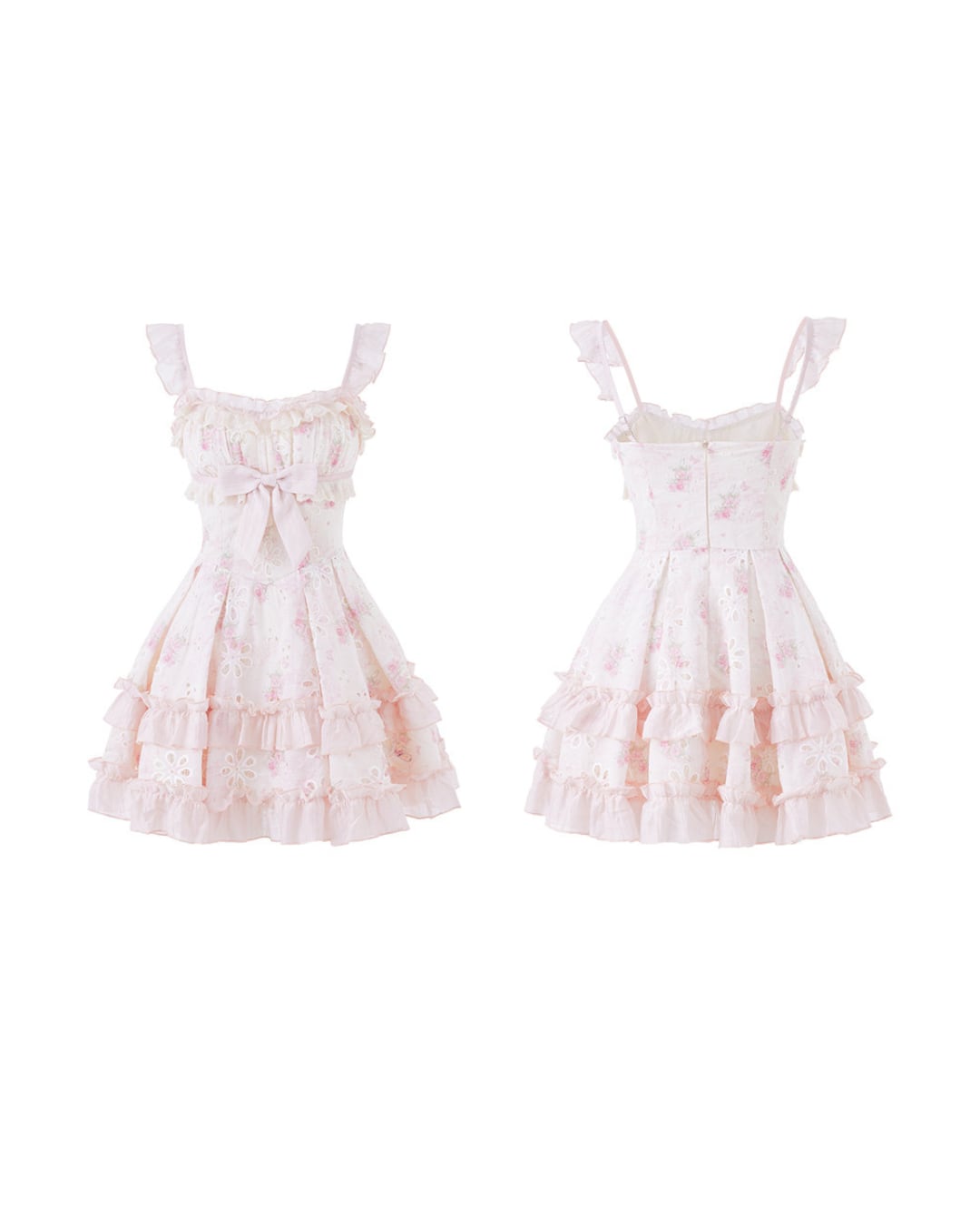フラワーカットワークにリボンとフリルを詰め込んだ