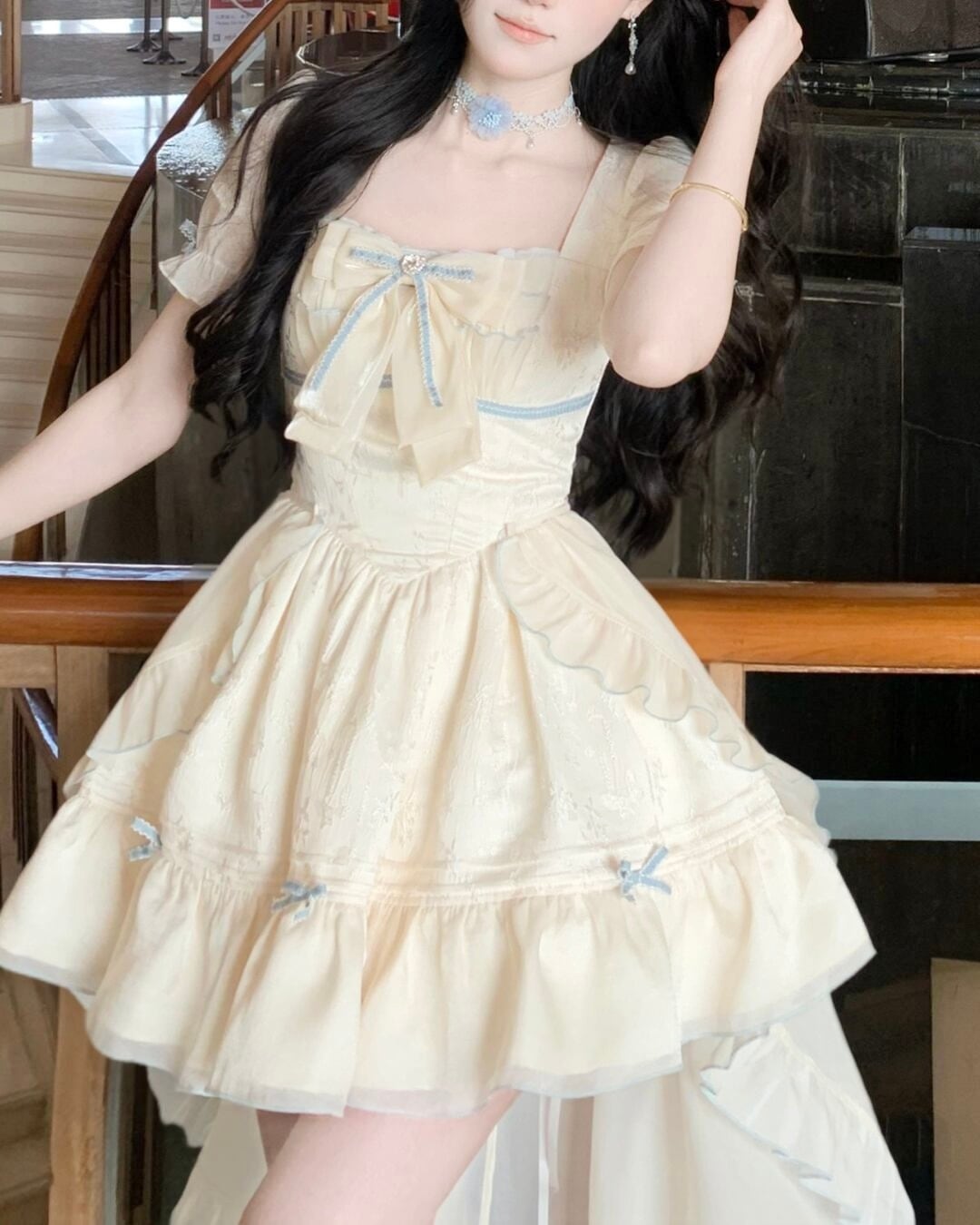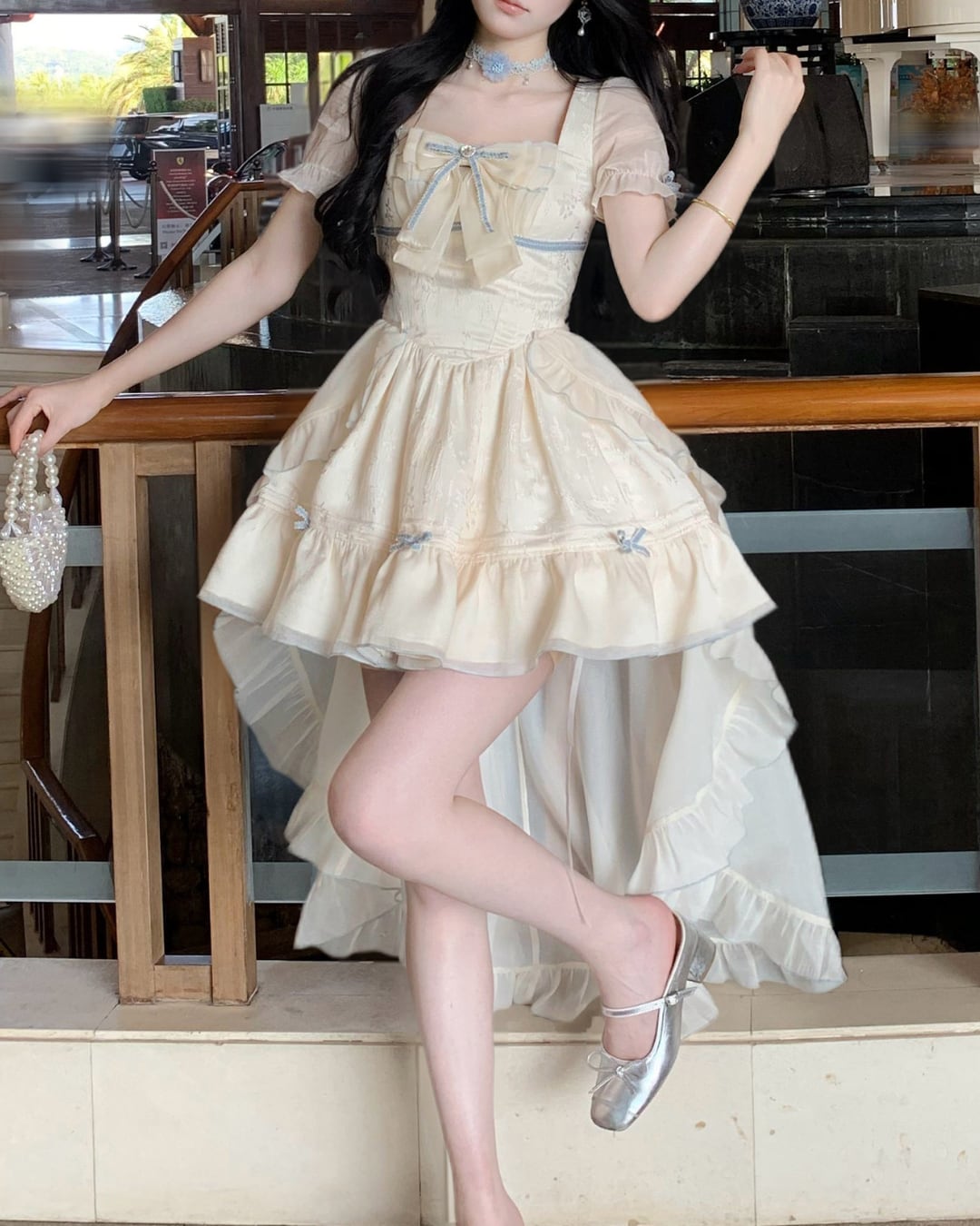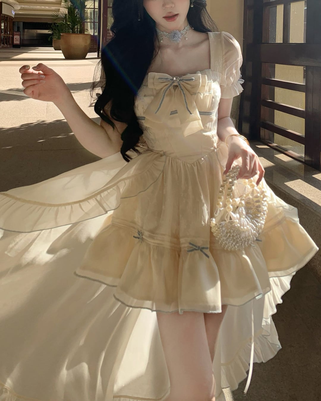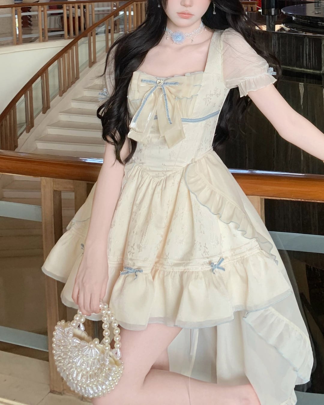 淡いクリームカラーにリボンディテールが映えるフェミニンワンピース♡