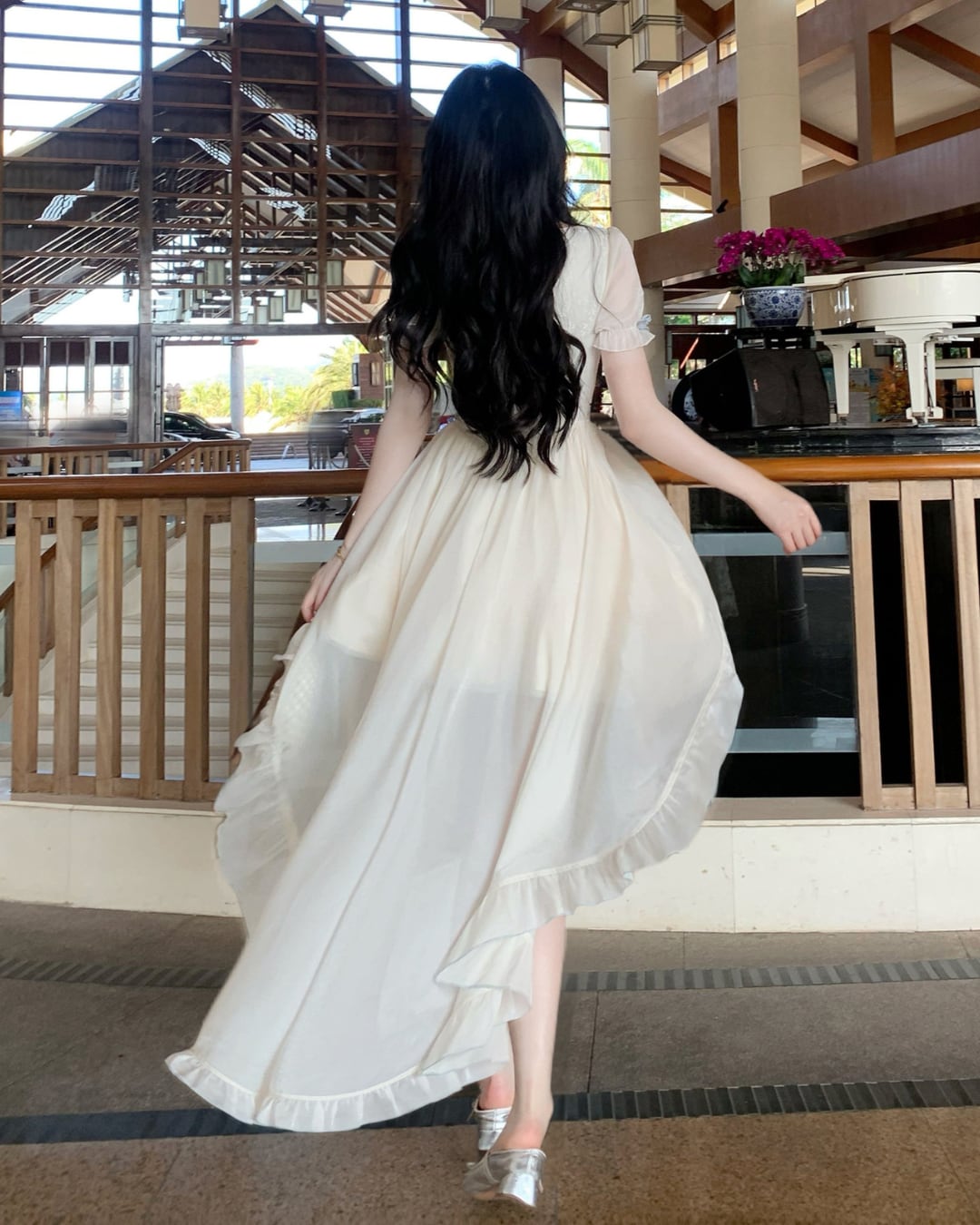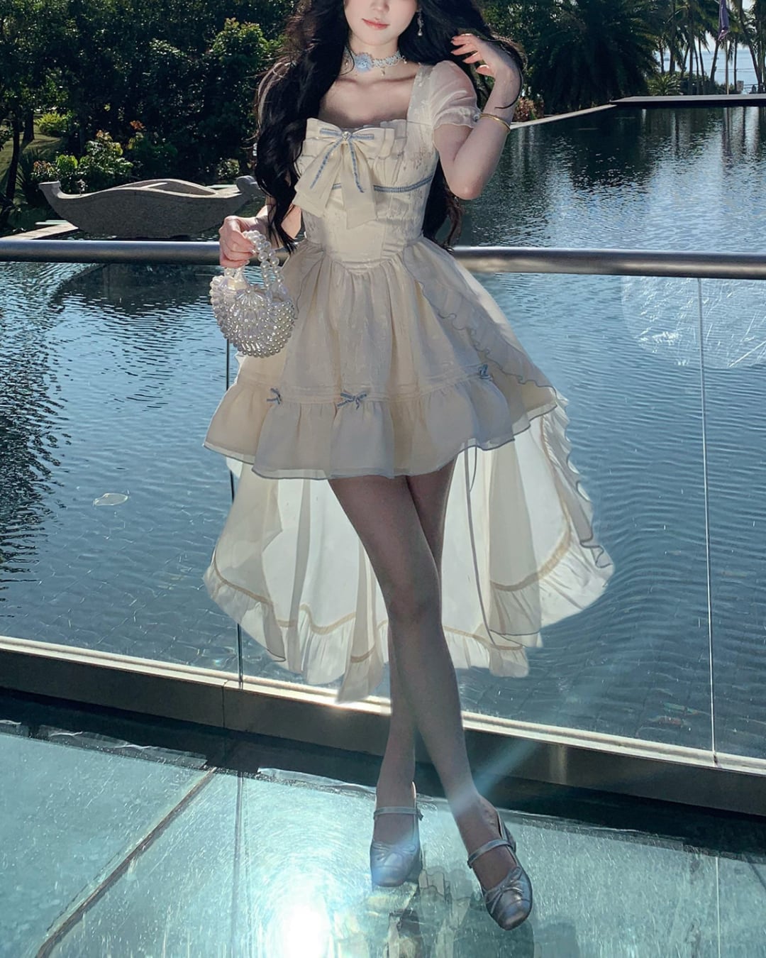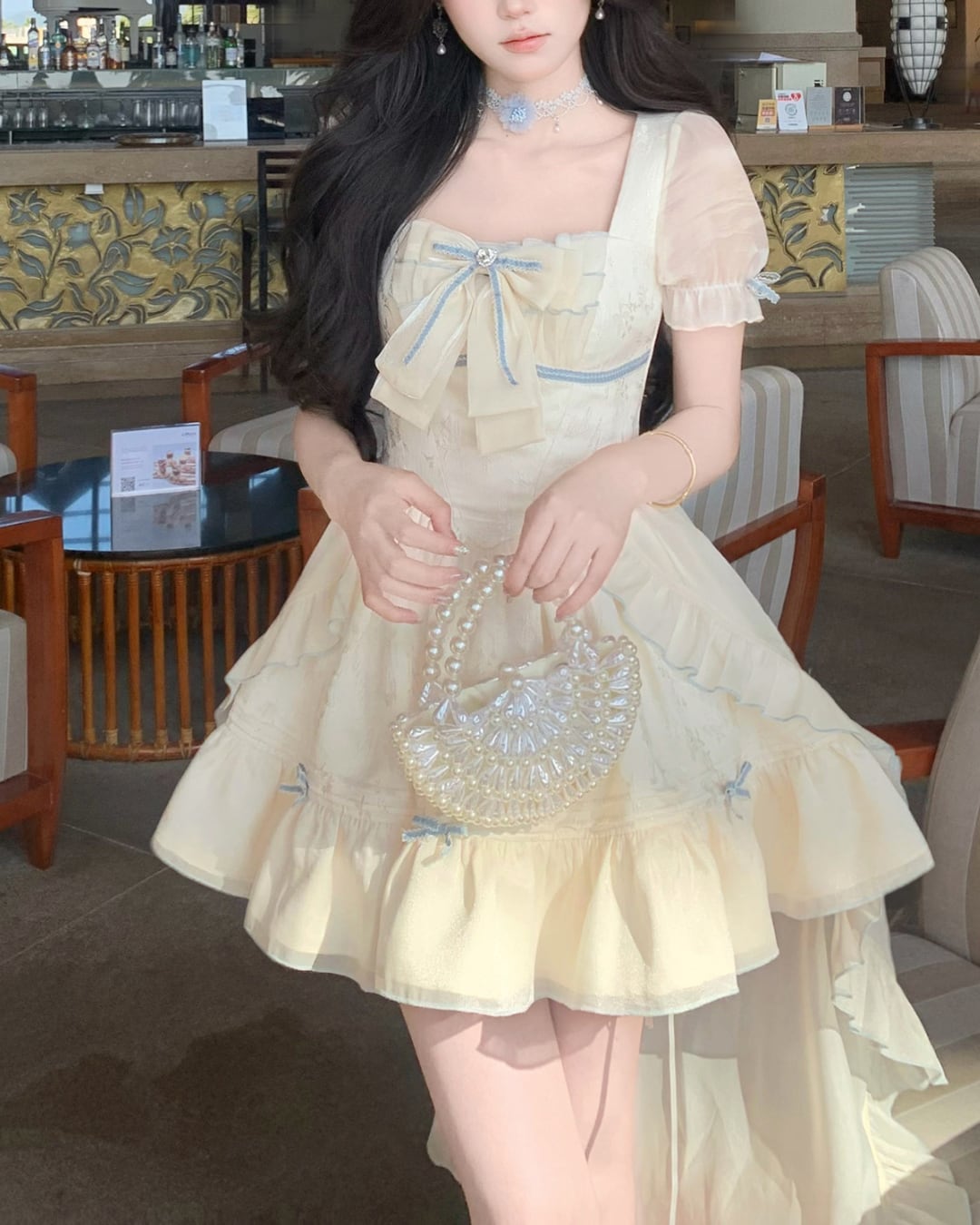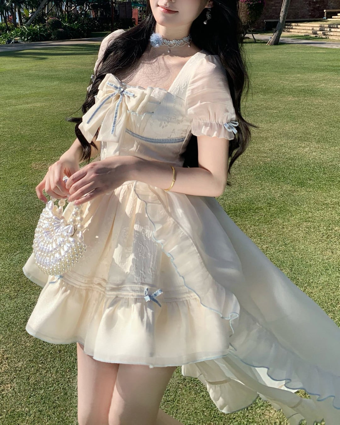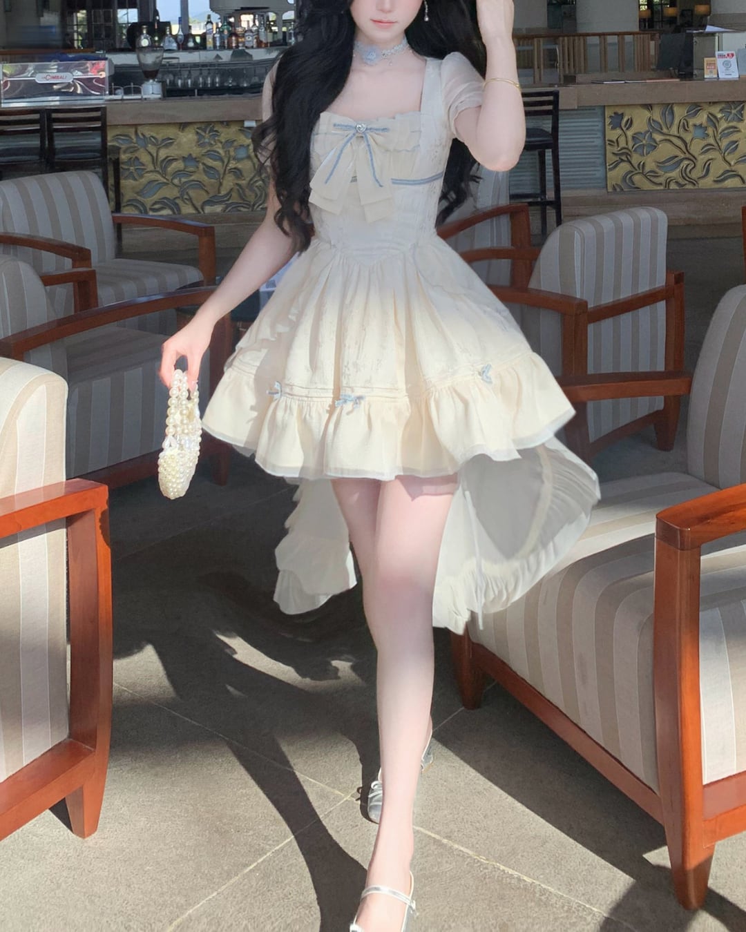 淡いクリームカラーにリボンディテールが映えるフェミニンワンピース♡