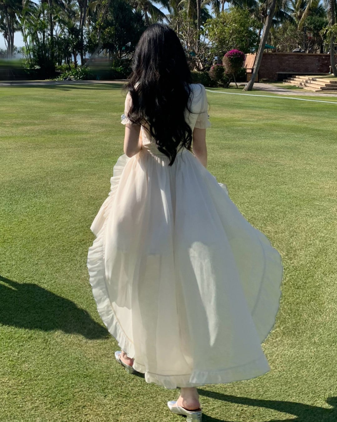 フィッシュテールデザインが後ろ姿まで華やかな印象に*.゜