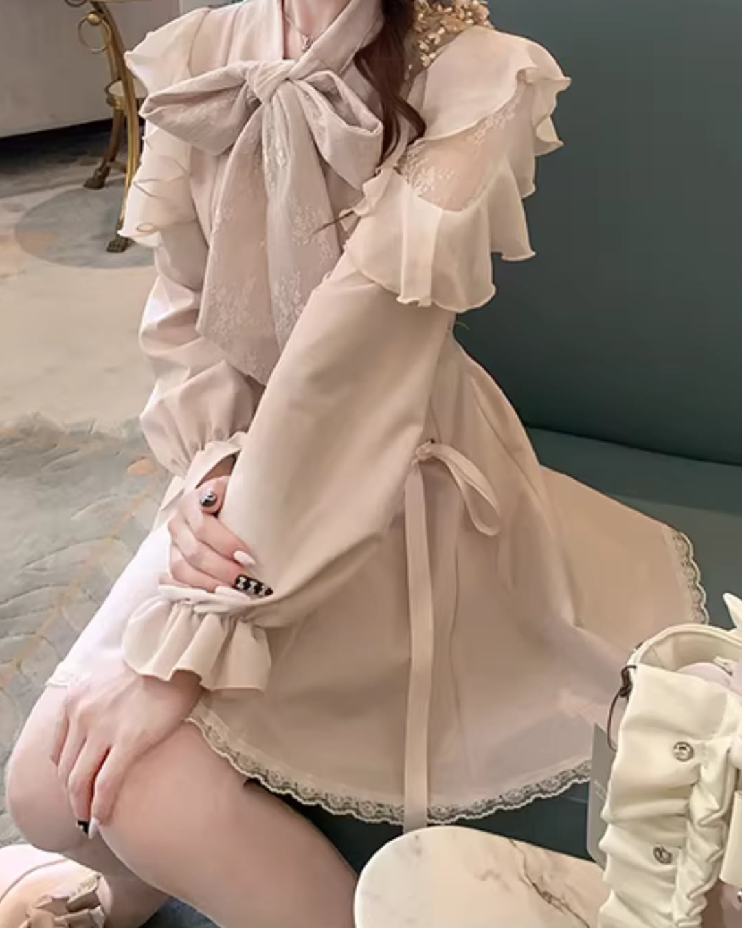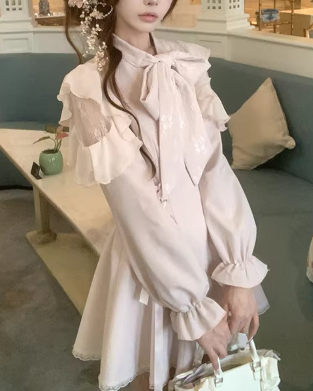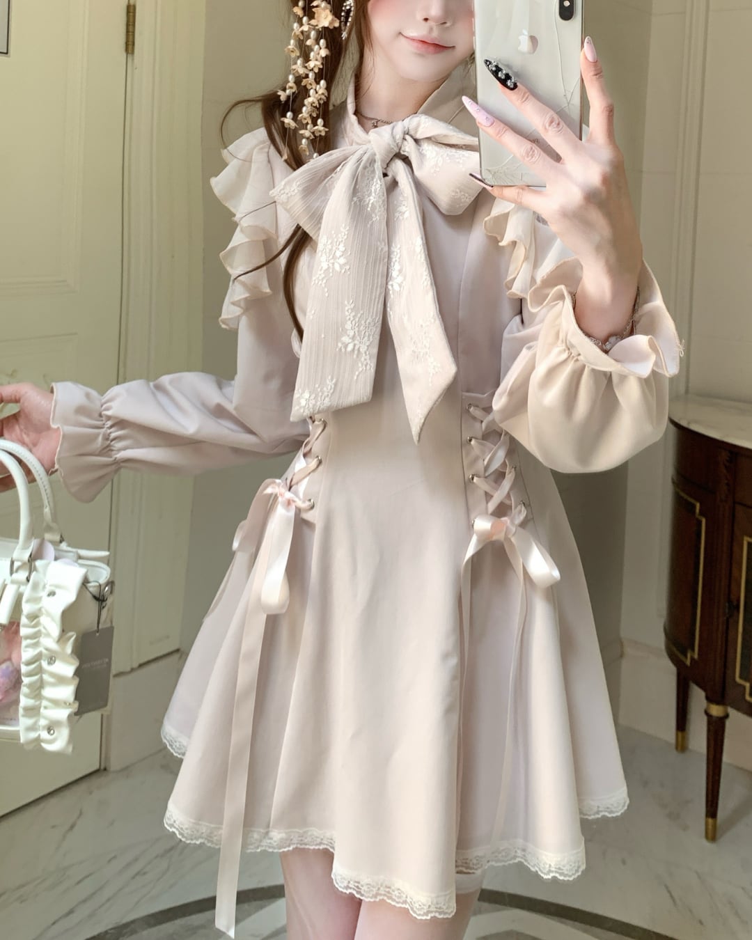 ボウタイリボンショルダーレースフリルワンピース 2508544
