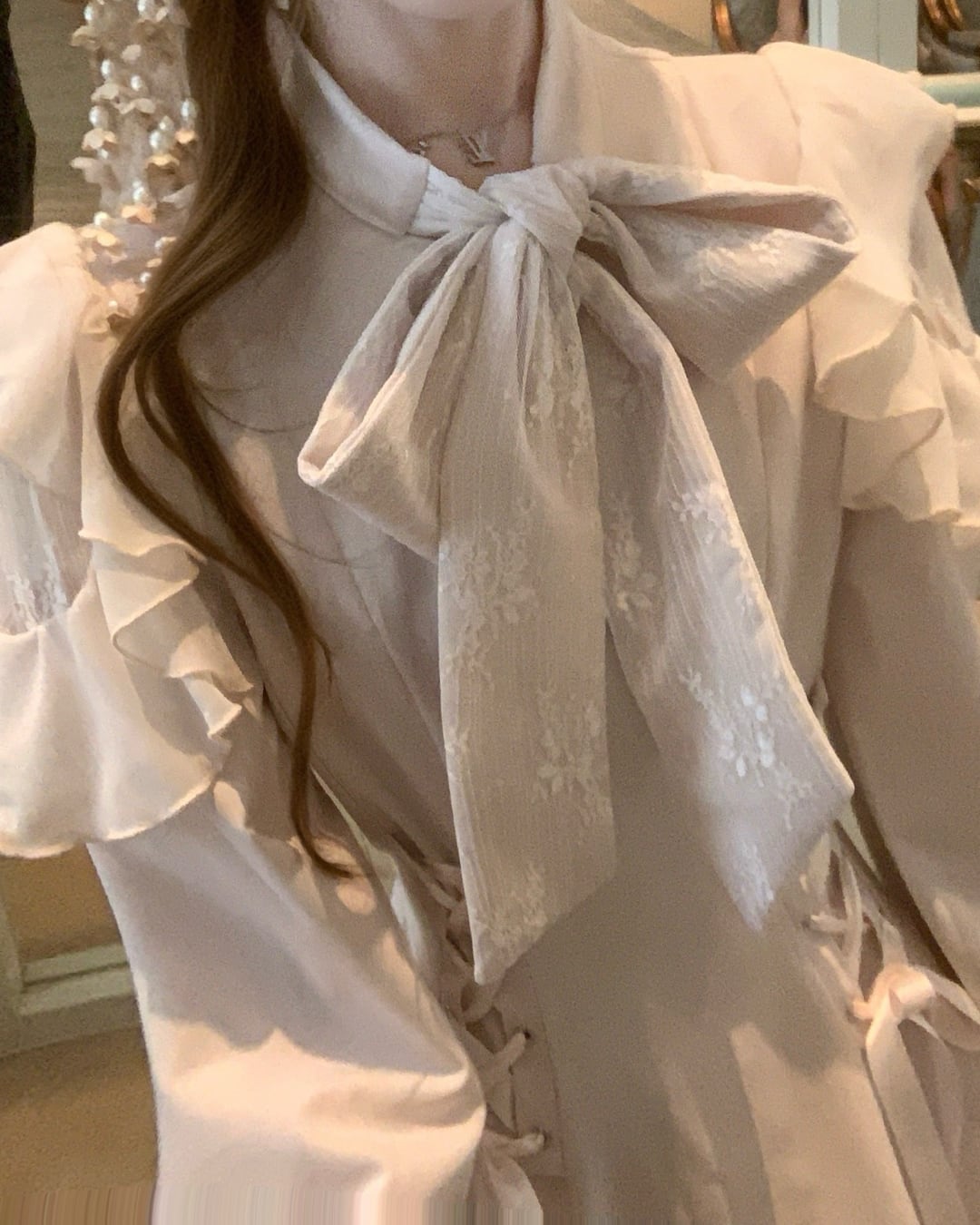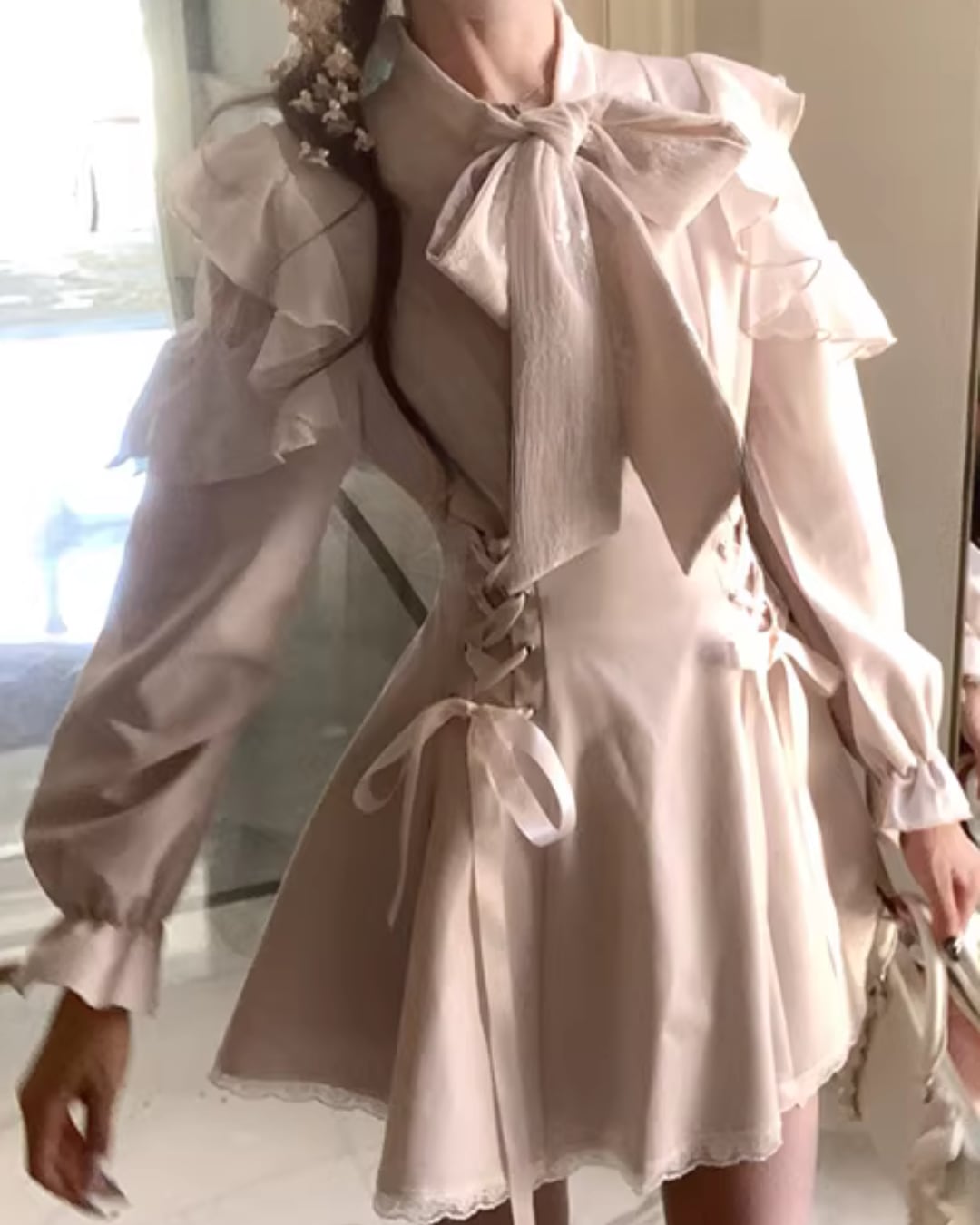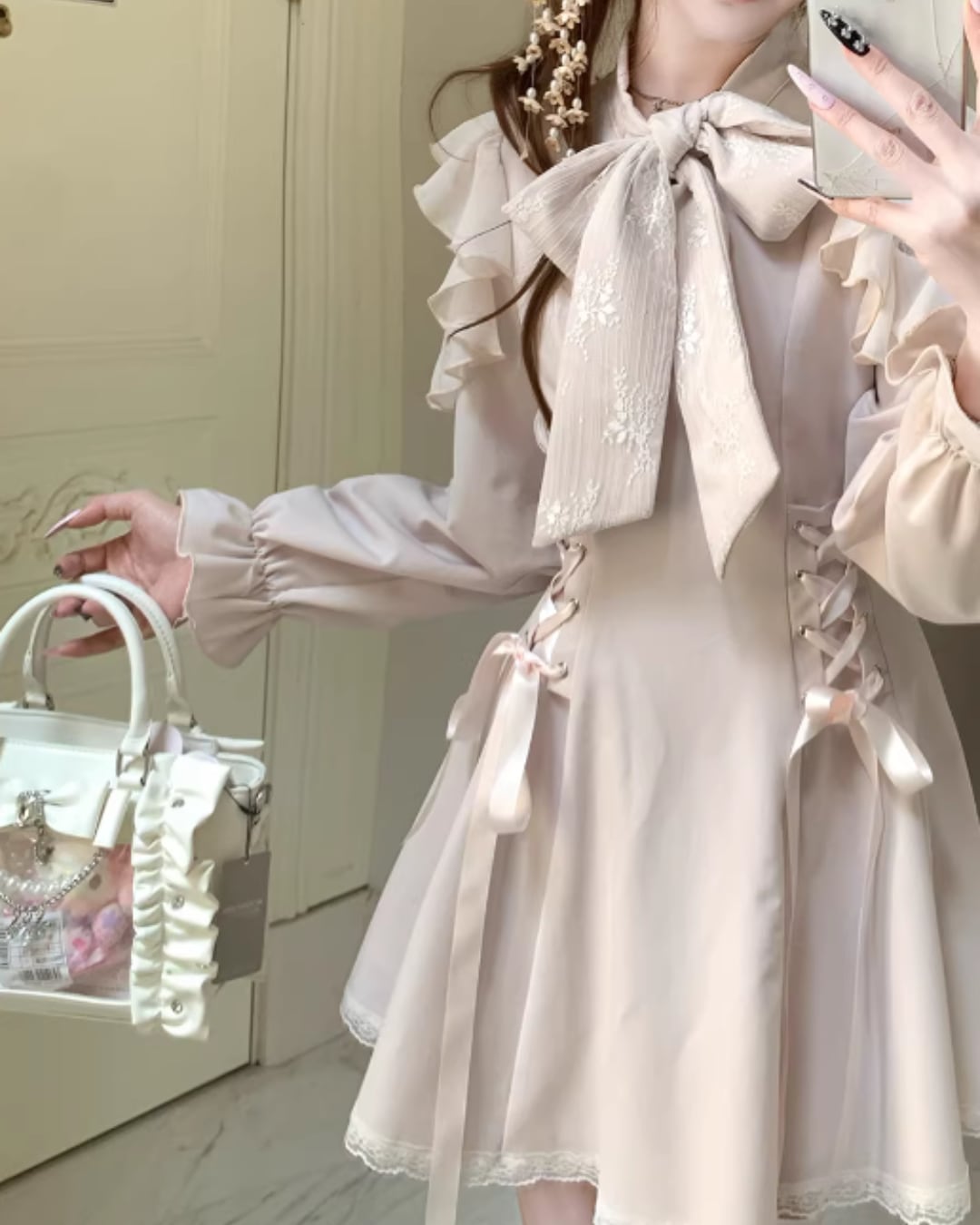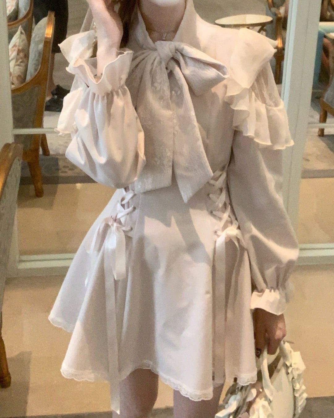 大きなボウタイリボンとショルダーフリルをあしらったガーリーワンピース♡