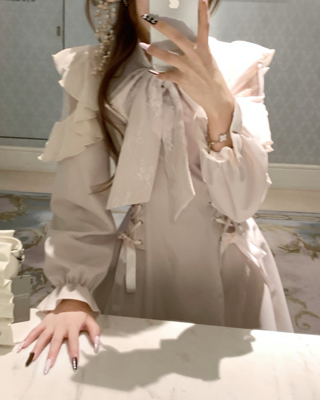 やわらかなニュアンスカラーで甘すぎず、特別なお出かけにもぴったりの一着です⑅⃛