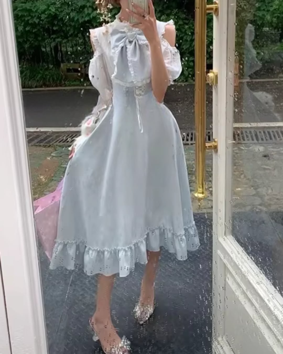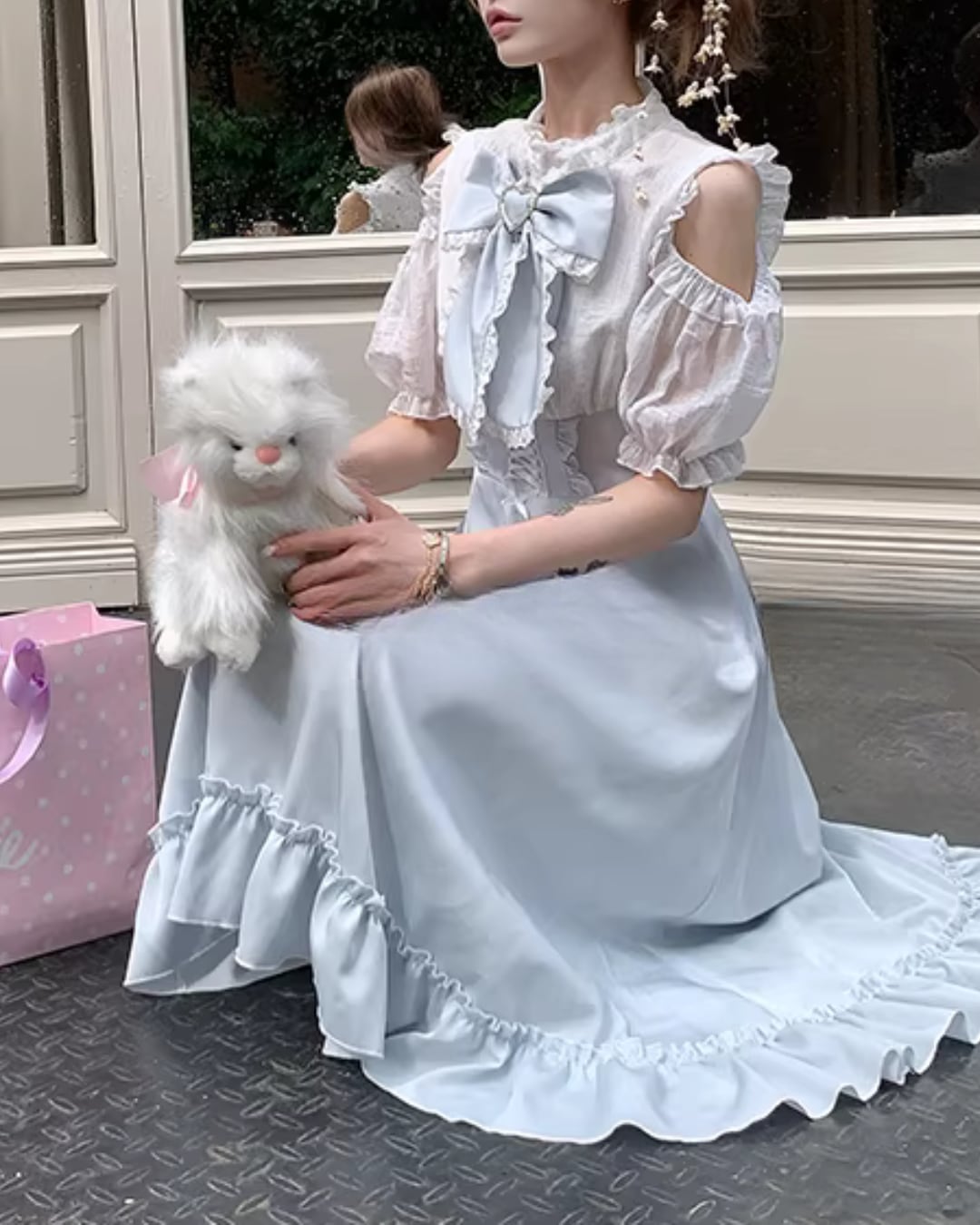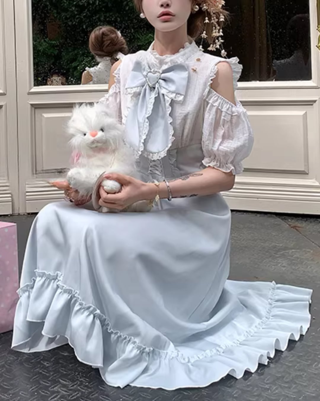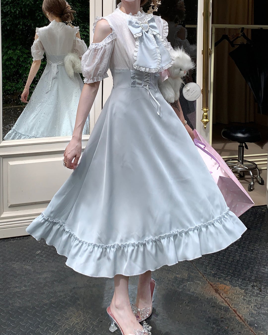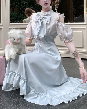 フリルディテールが華やかさをプラスし、クラシカルで可憐な印象に*.゜