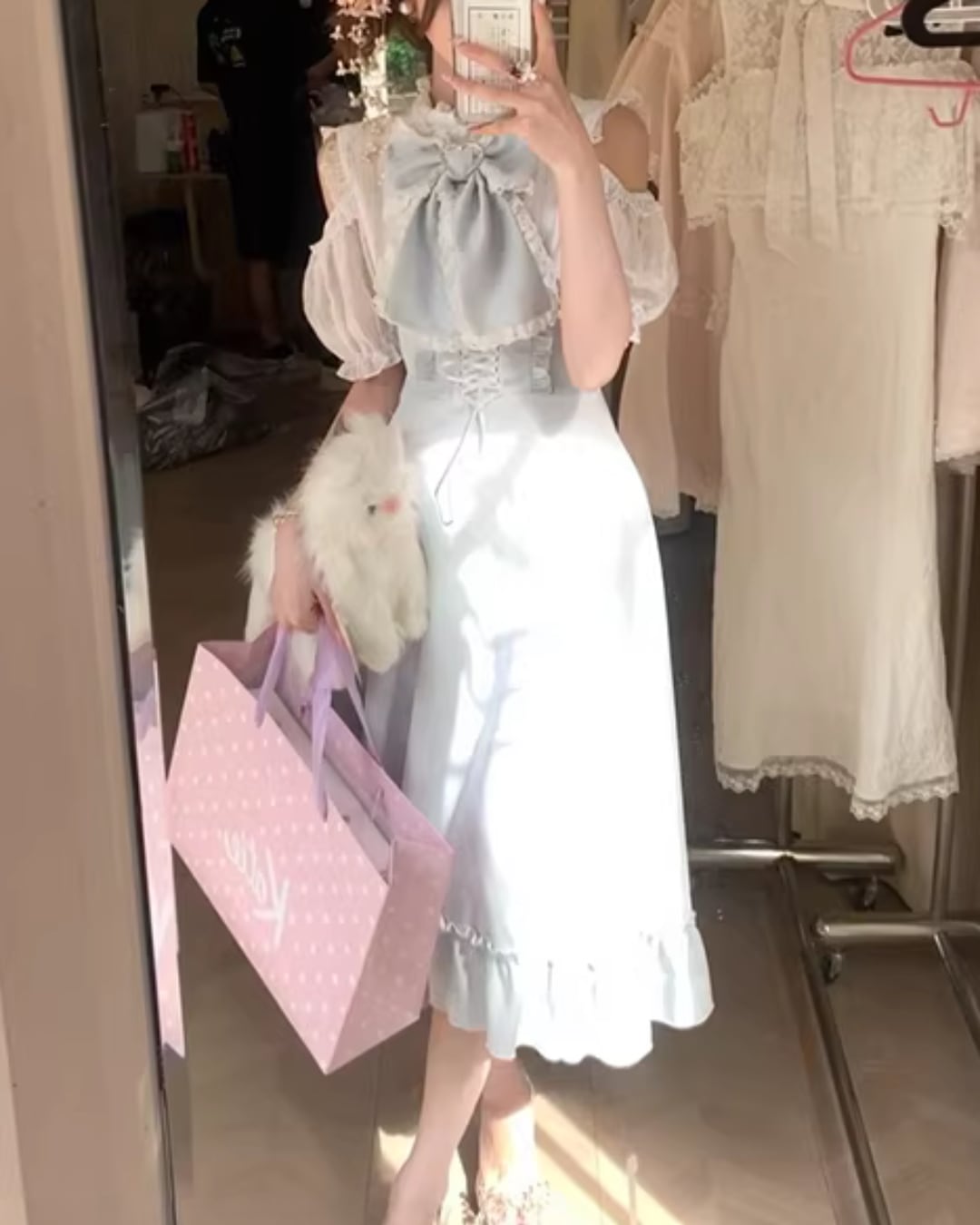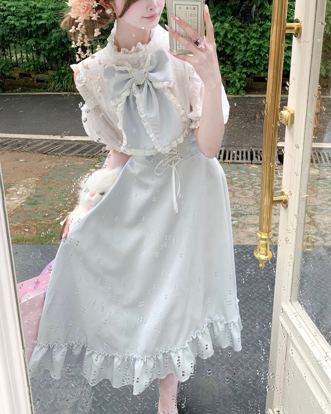 淡いブルーカラーに大きなリボンを添えた