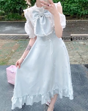 アクアブルーリボンオフショルワンピース 2508546