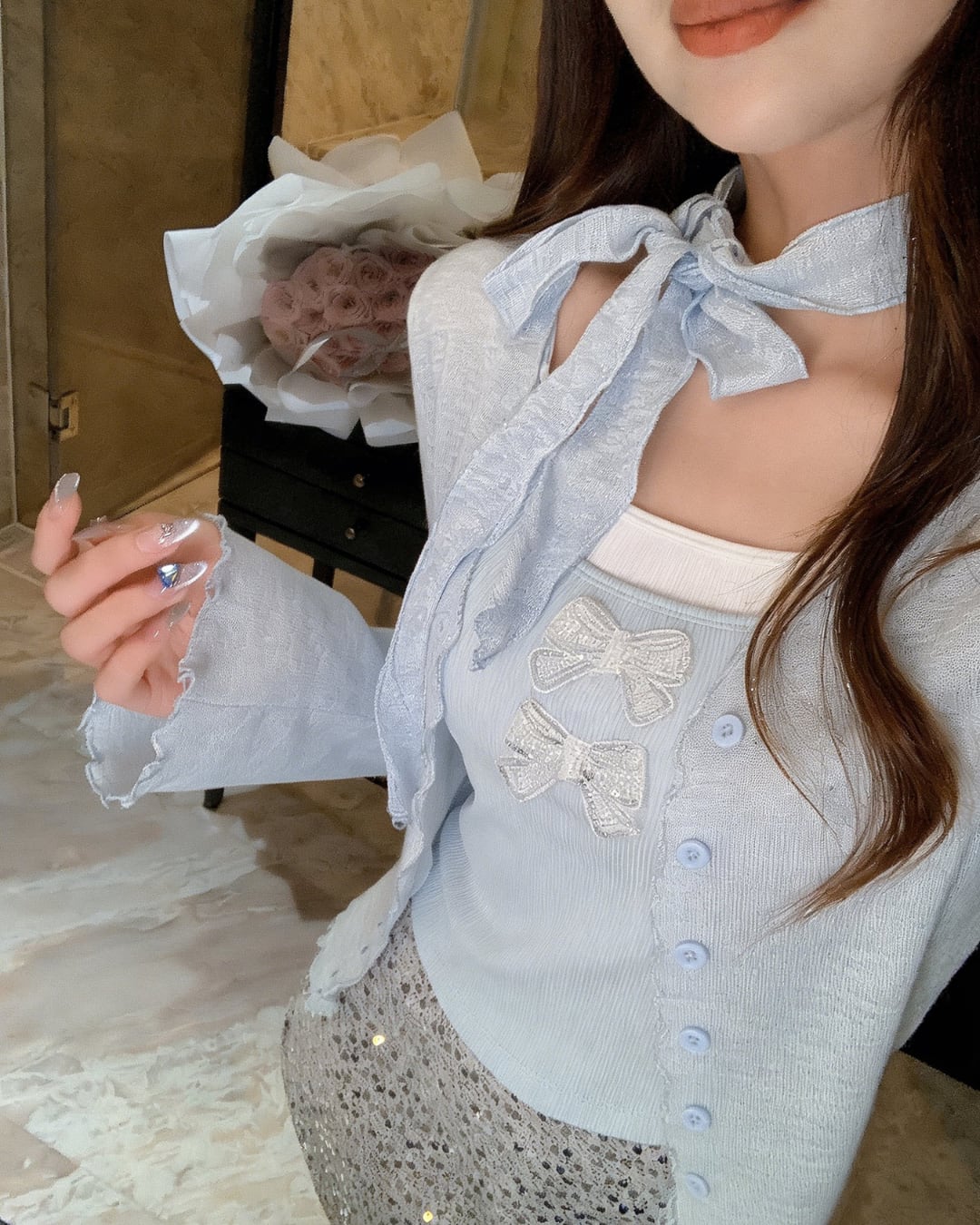リボンタイつきで、気分やコーデに合わせて印象を変えられます.*・゚