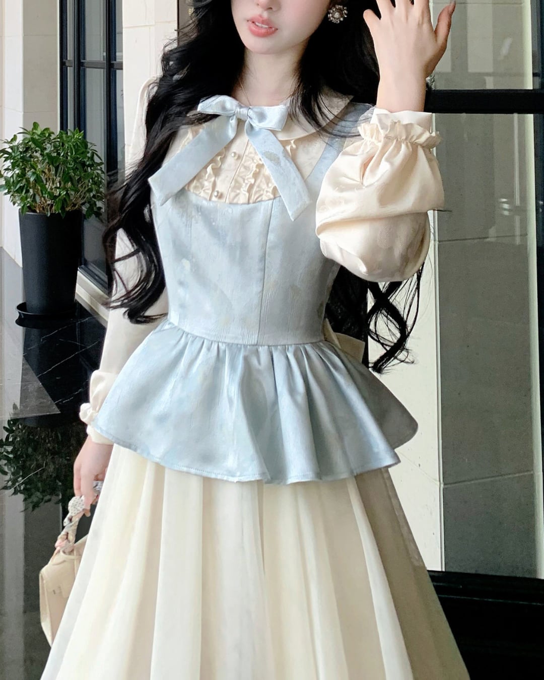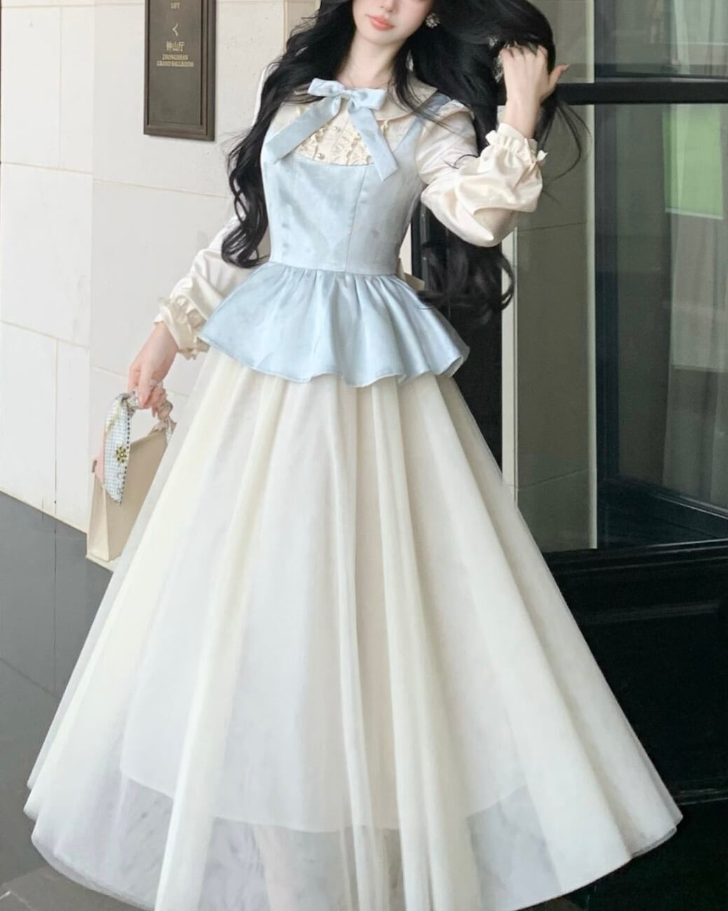 ブルーのペプラムシルエットが華やかなプリンセスワンピース♡