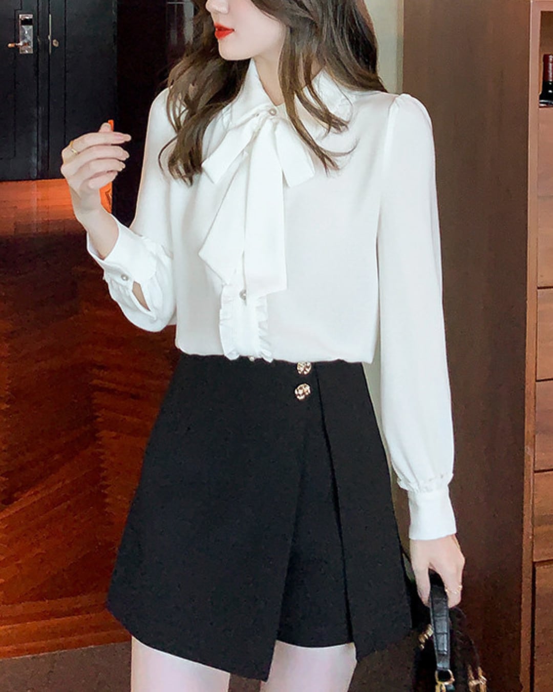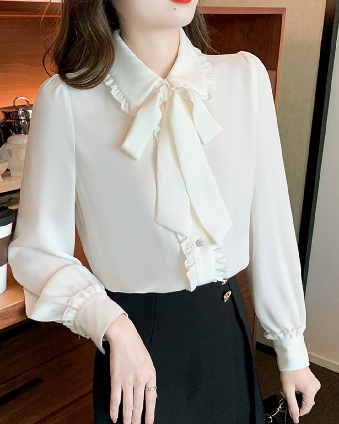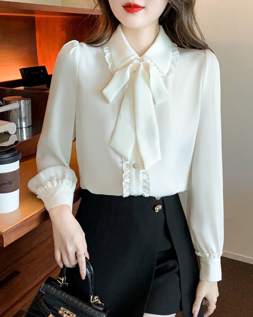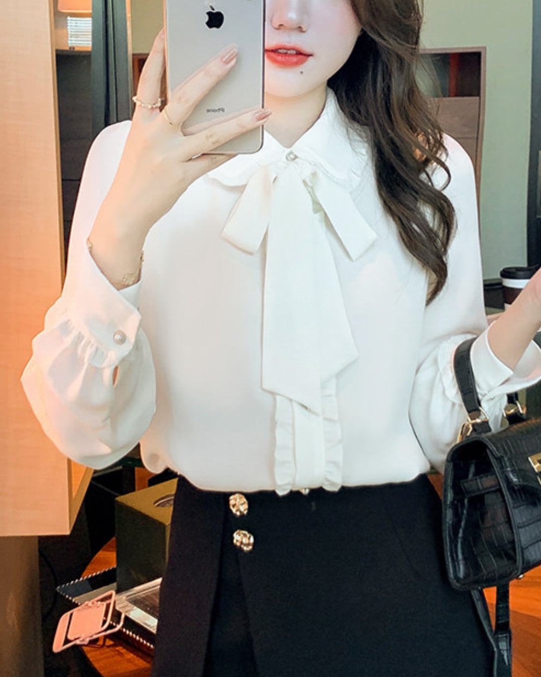 とろみのある質感に、ボウタイリボンが映える上品ブラウス♡