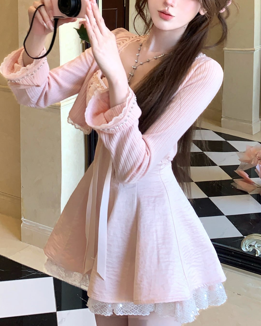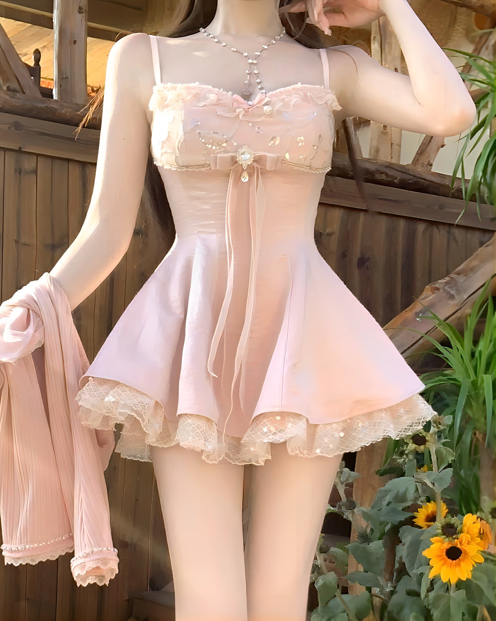 裾チュールにきらめくスパンコールが華やかさをプラスします✧˖°