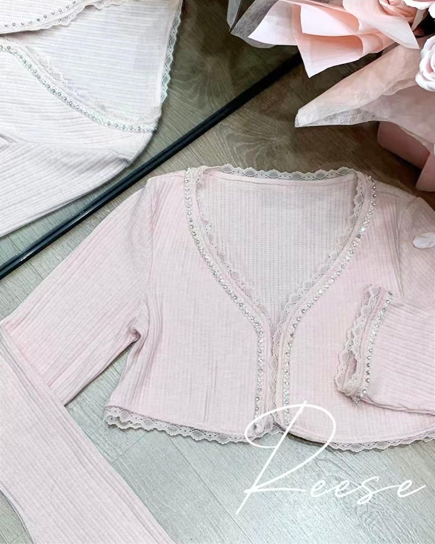繊細なレースとビジューが縁取る、フェミニンなカーディガン♡