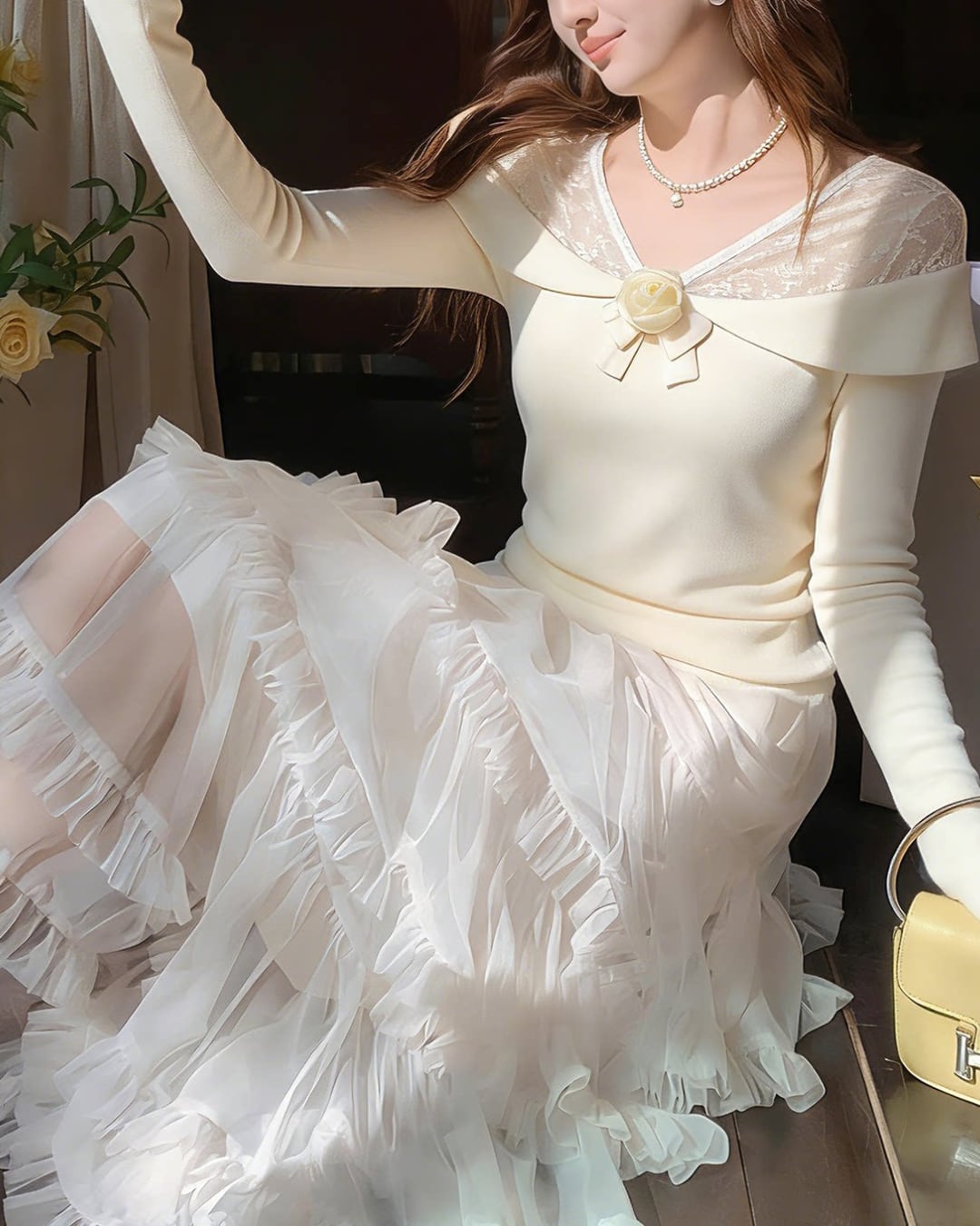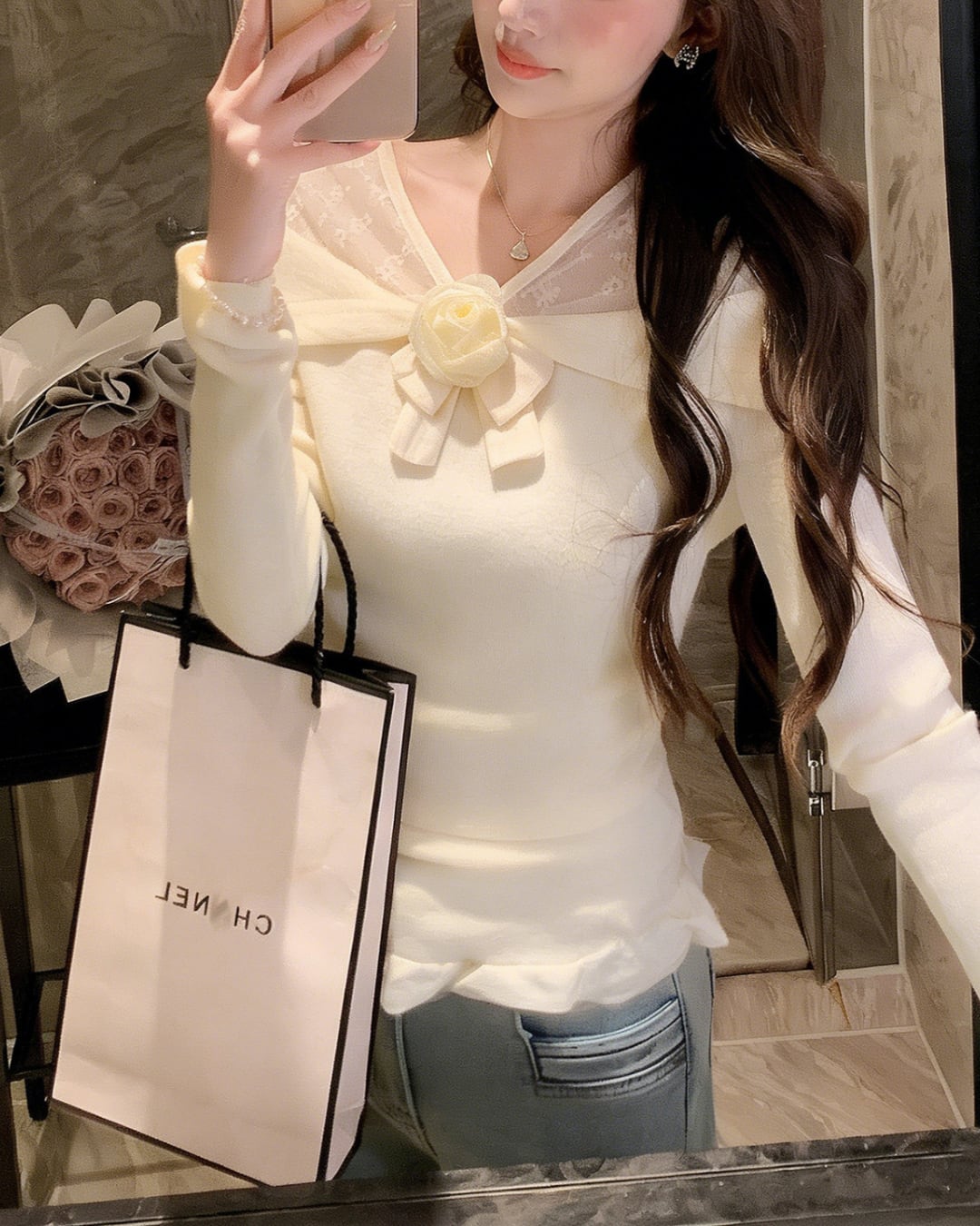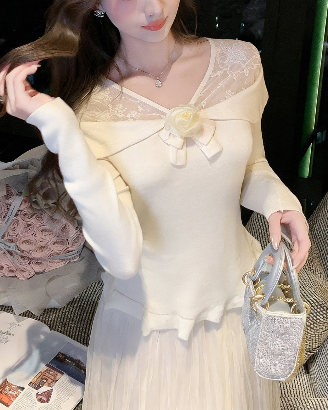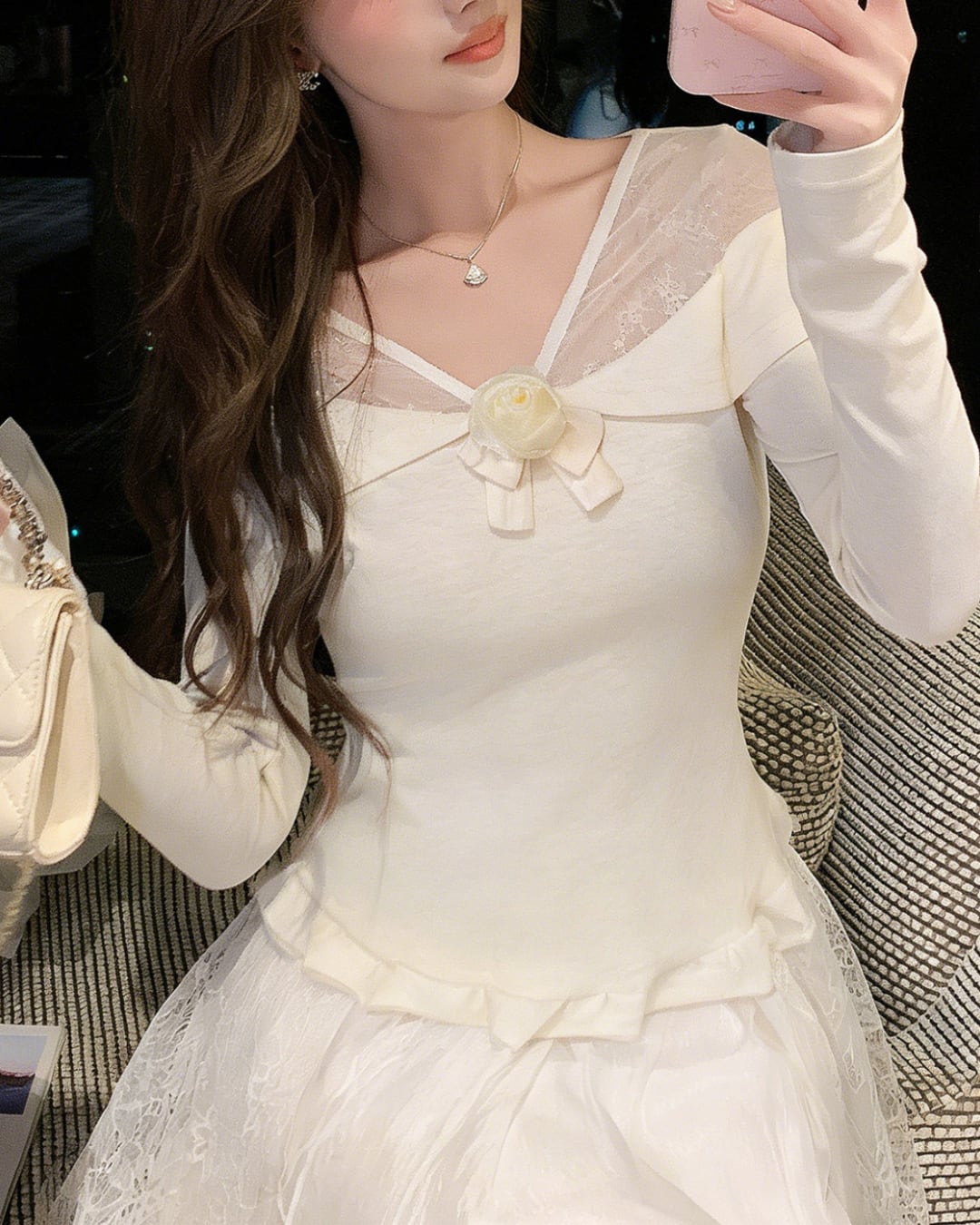 ロマンチックオフショルローズレーストップス(2 colors) 2508582