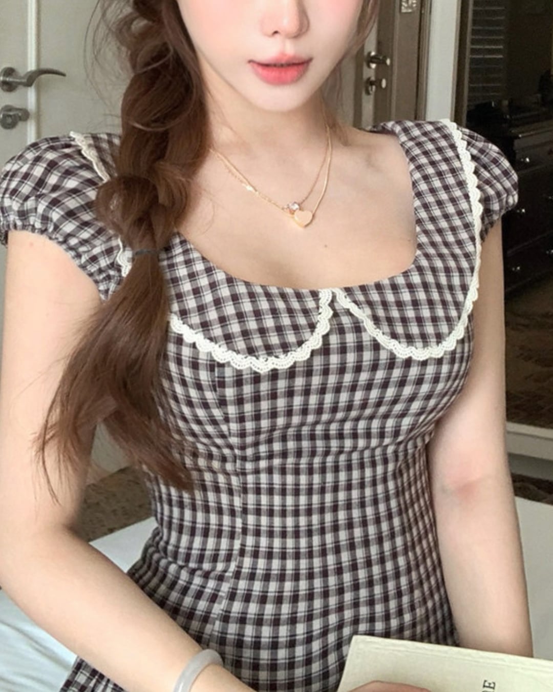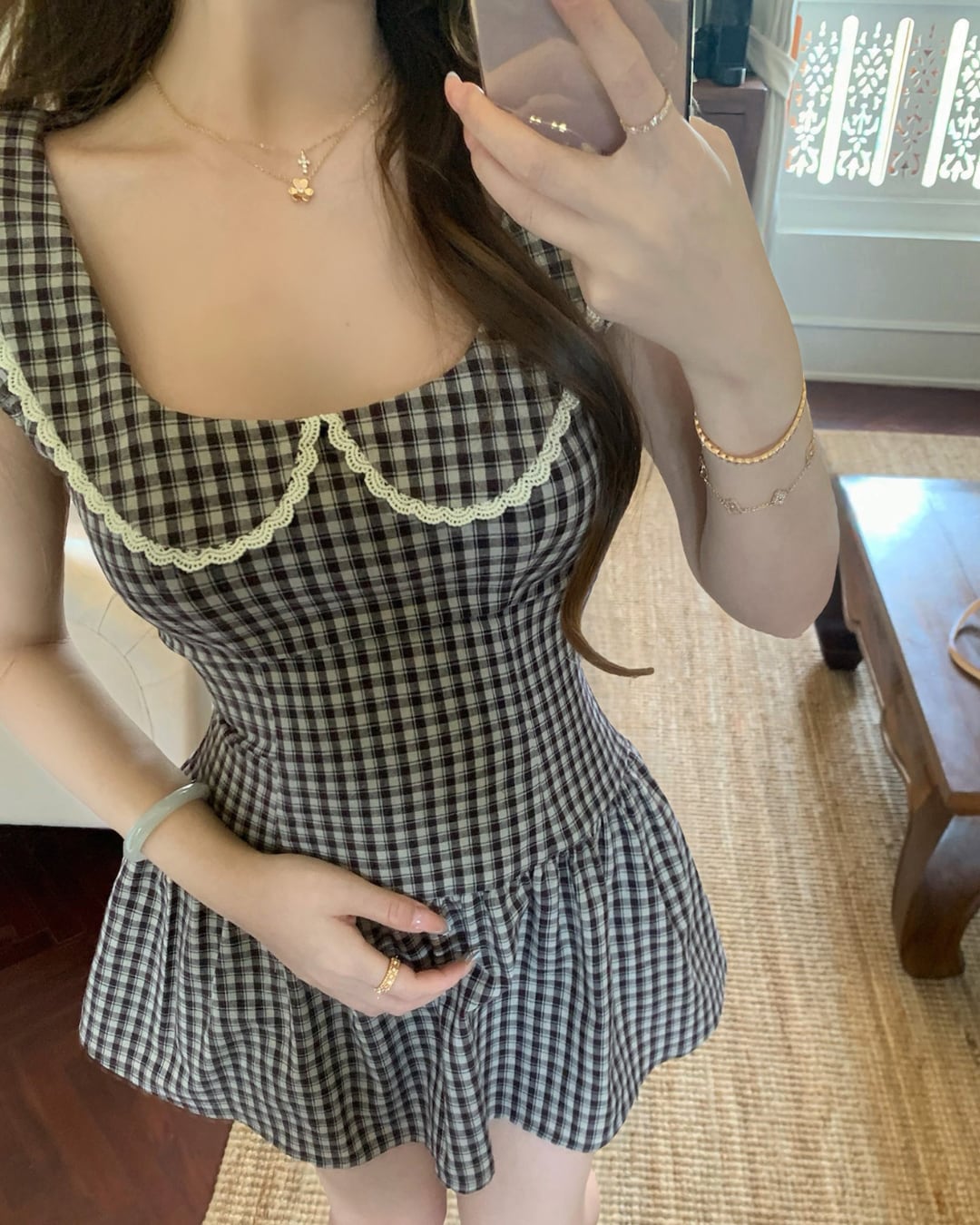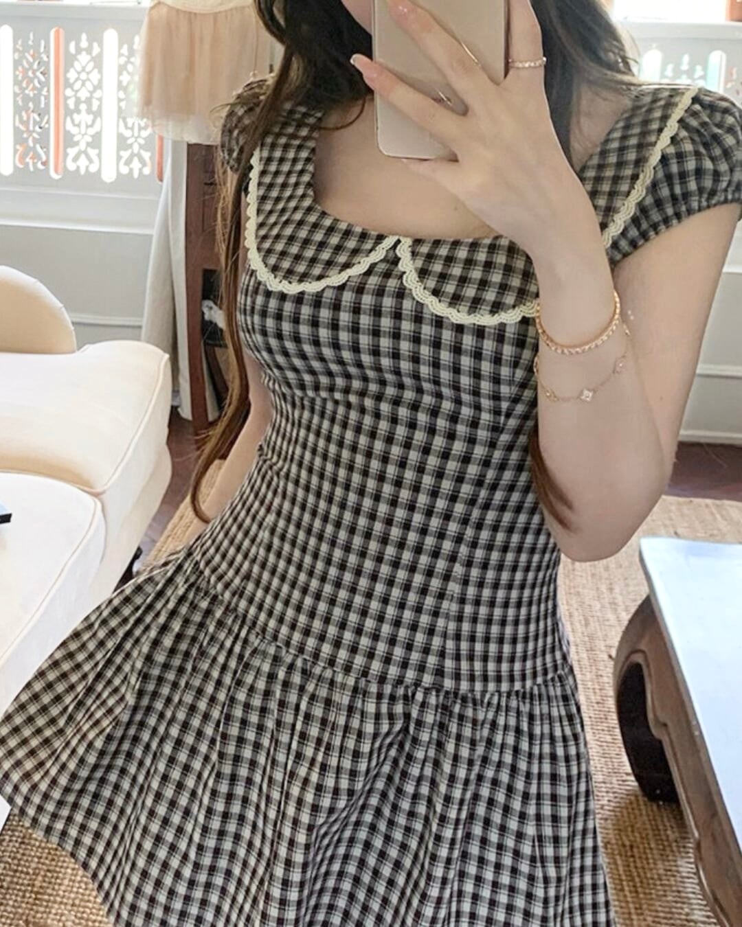 ブラウンのチェック柄にドールカラーが