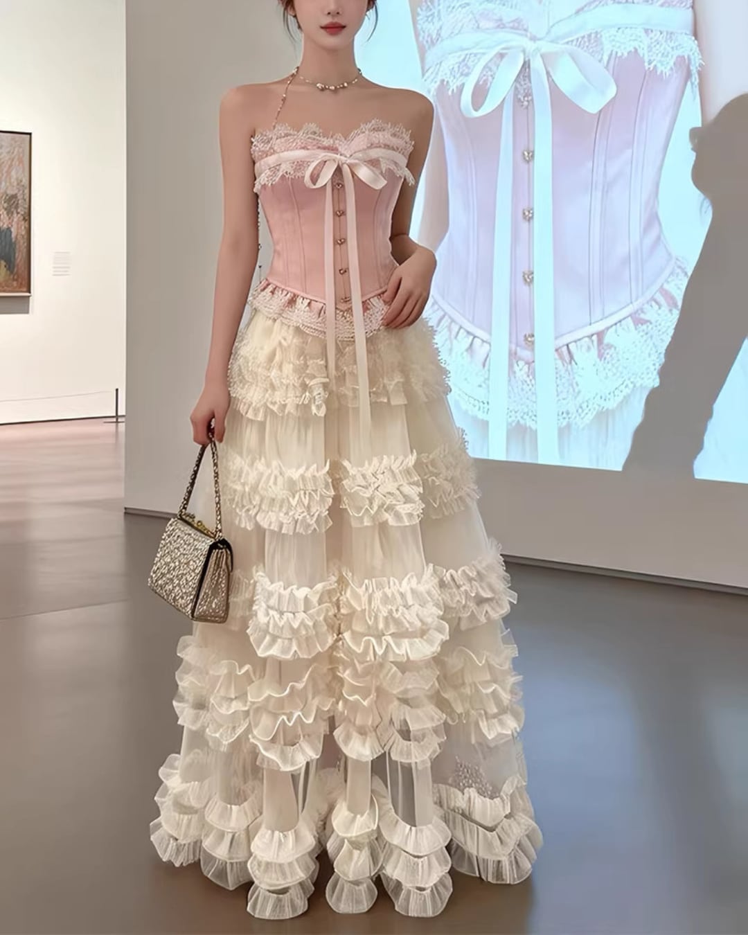 コルセットピンクトップス&ホイップケーキスカートセット 2508608