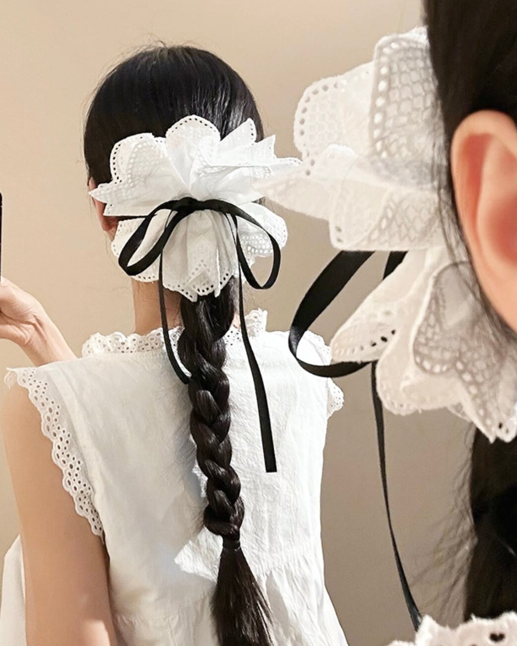 ホワイトレースリボンヘアクリップ 2508609