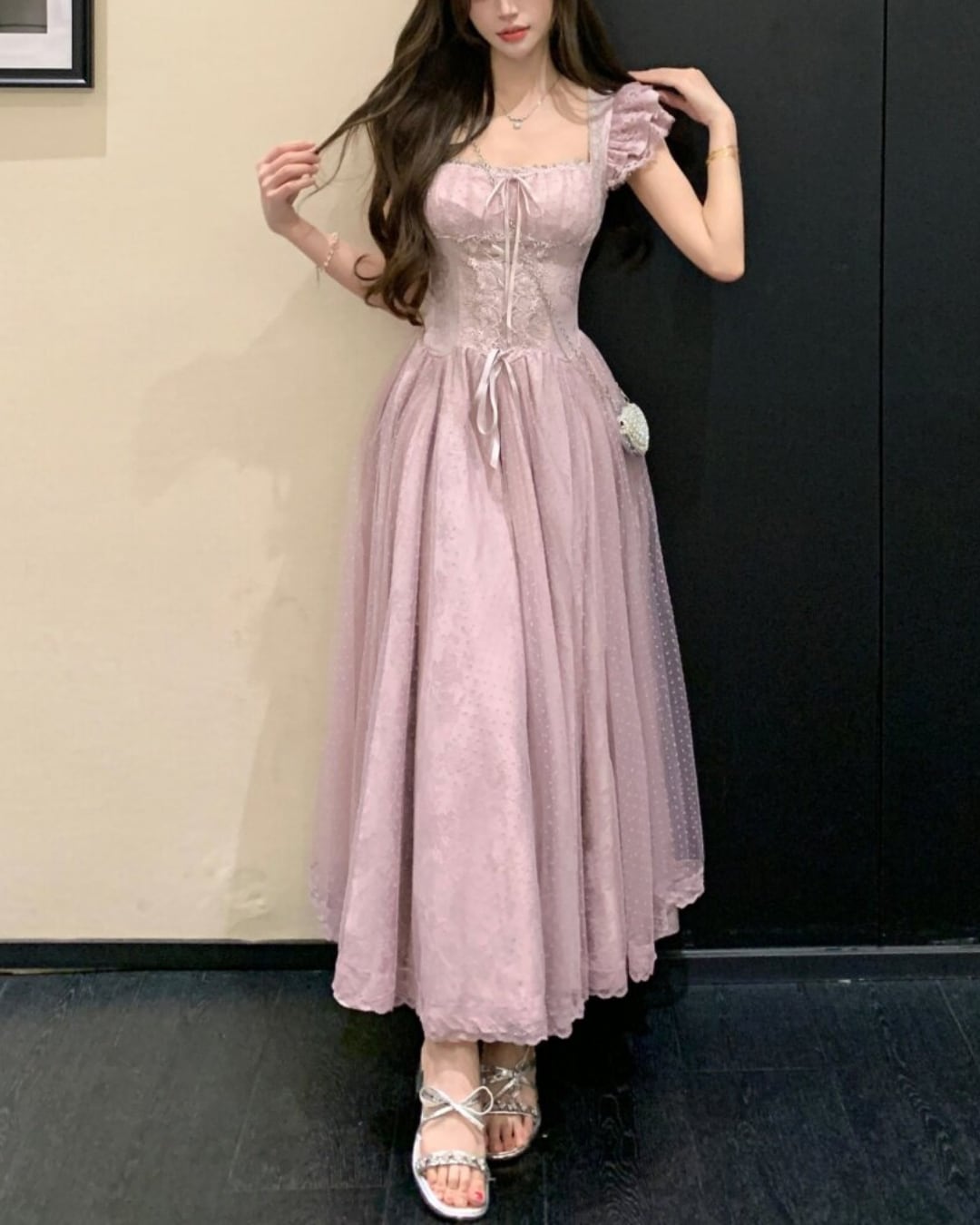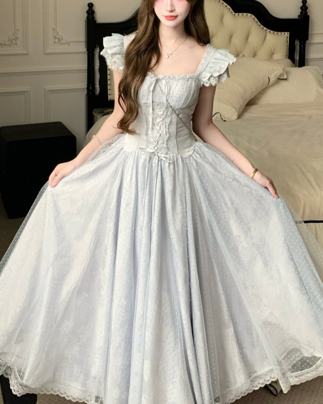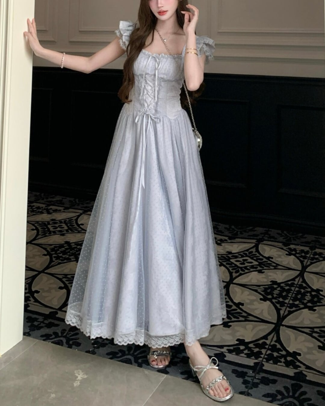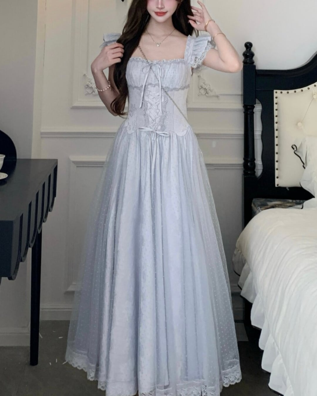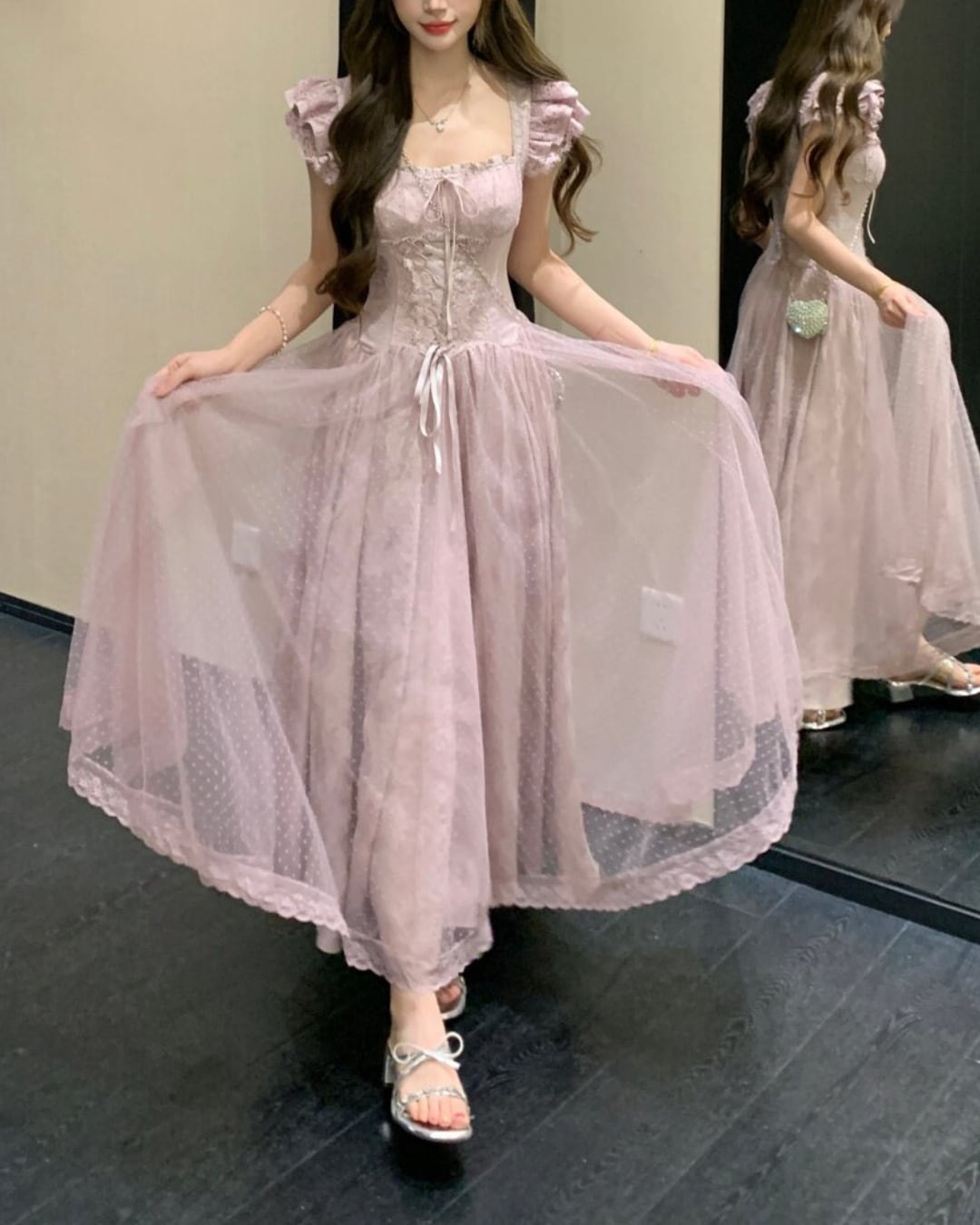 ドットチュールレースフレアワンピース(4 colors) 2508615