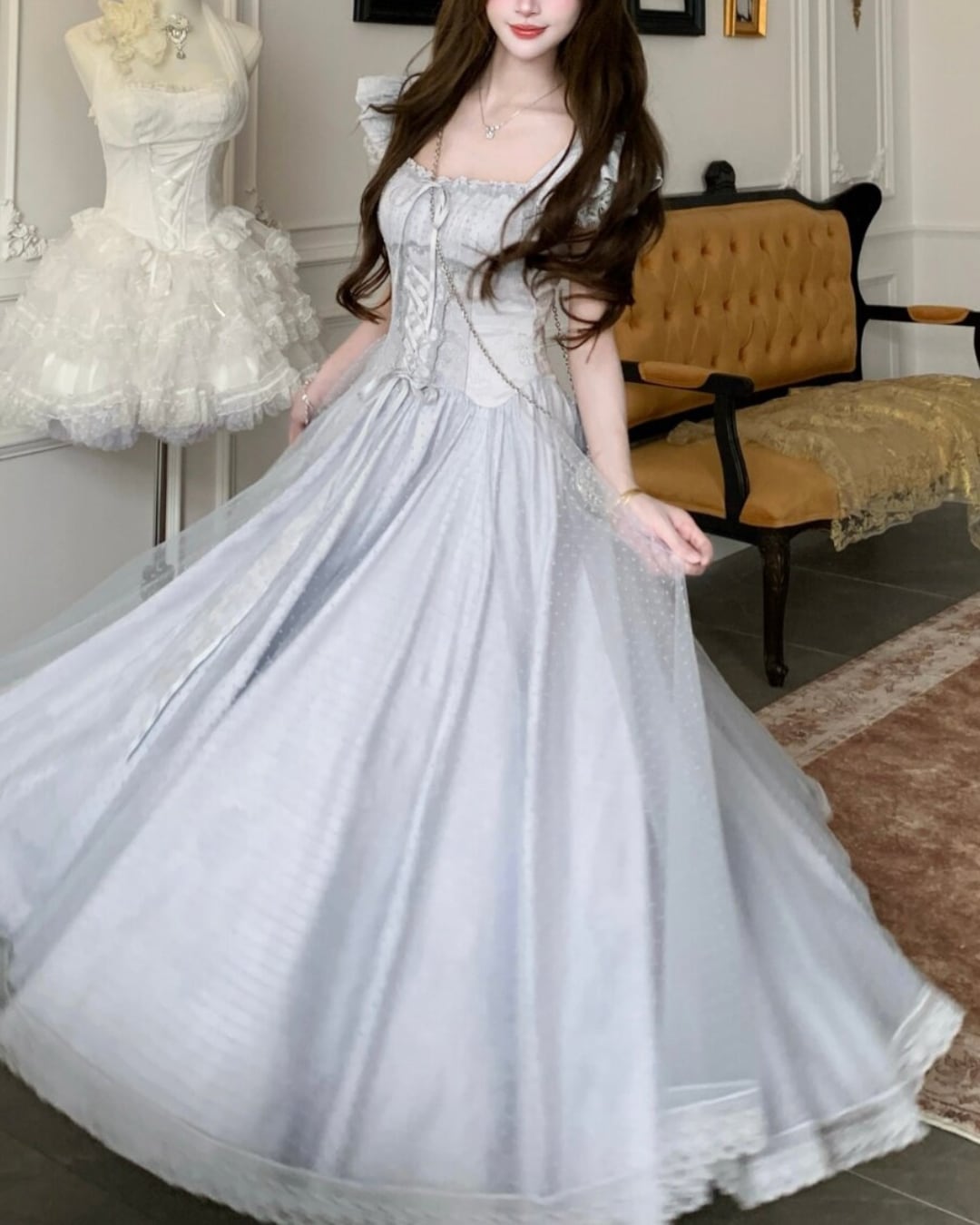 ふんわり広がるチュールスカートが、プリンセスライクな雰囲気を演出します*・゜゜