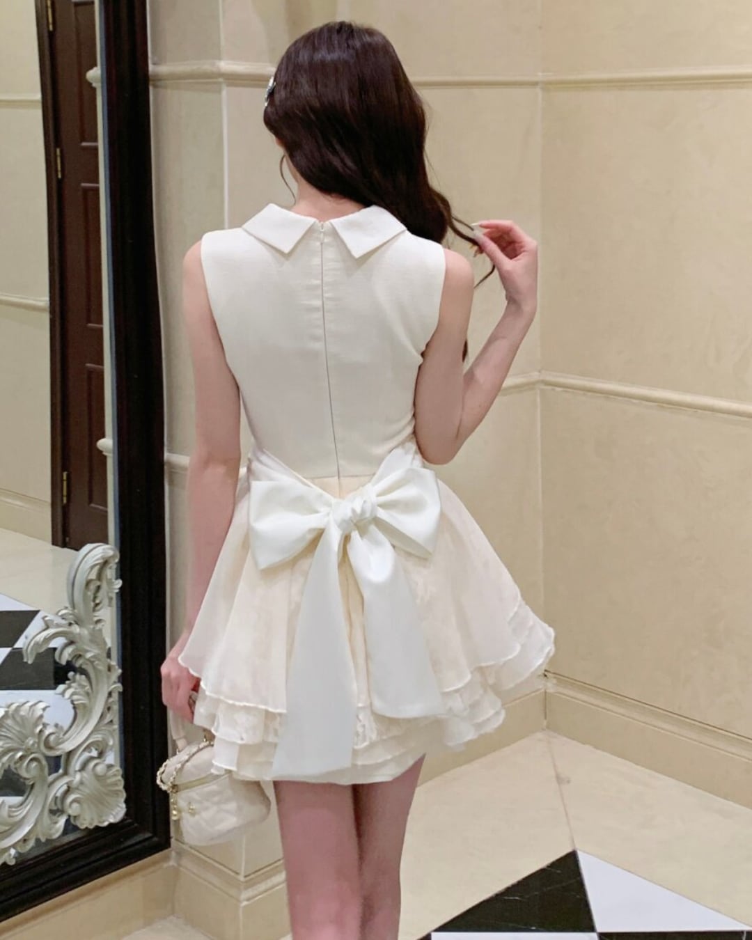 ウエストはリボンつきで後ろ姿までかわいいのもうれしいポイント◎