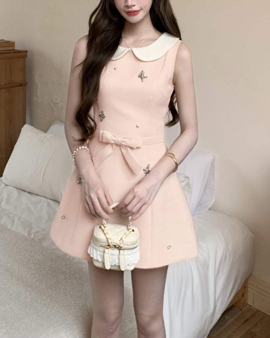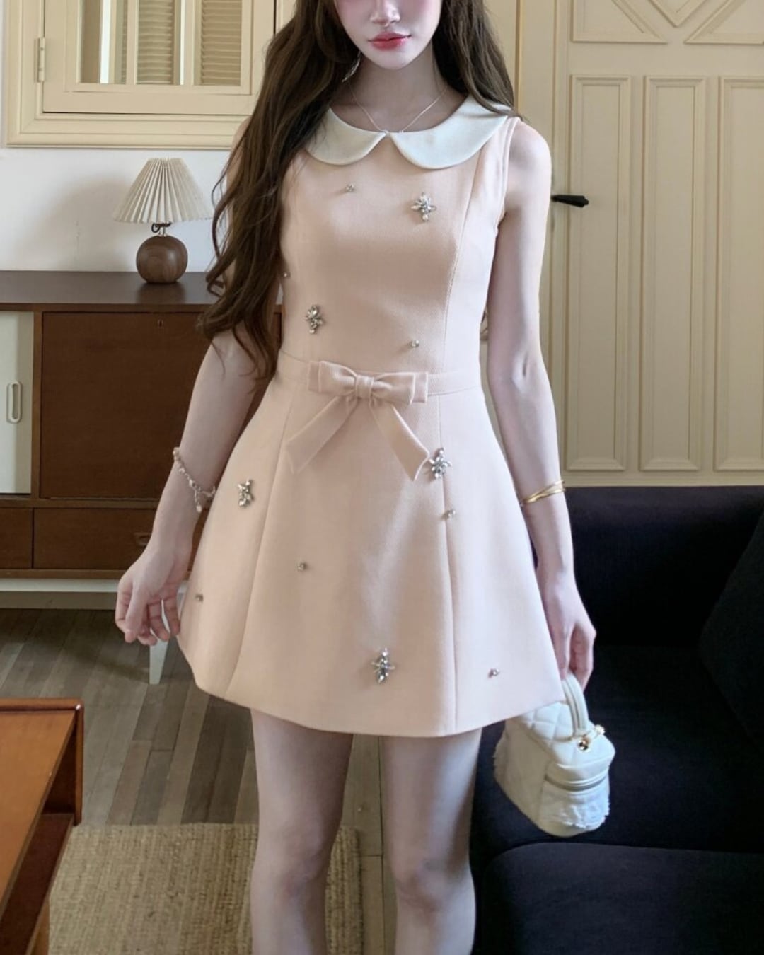散りばめられたビジューが華やかなアクセントになり、