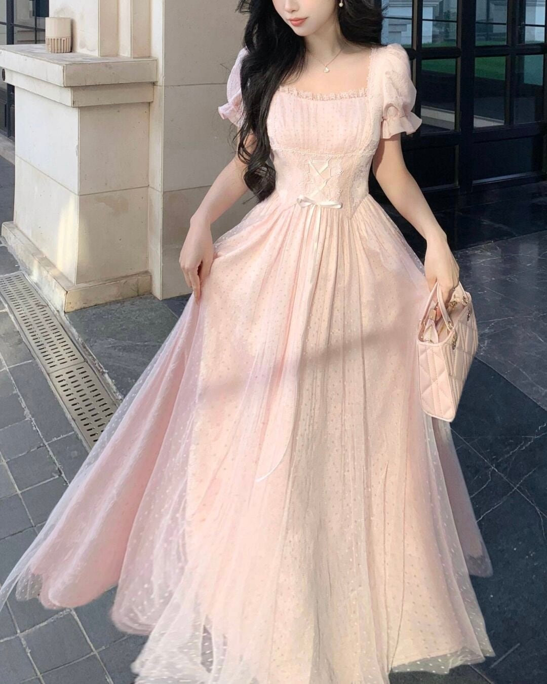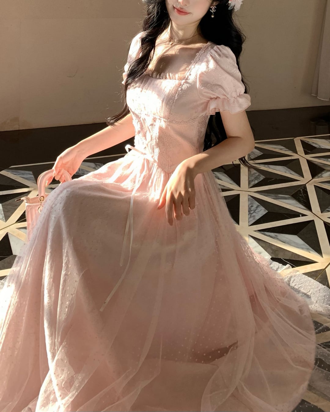 ふんわり揺れるドットチュールが華やかに映える一着です.*・゚