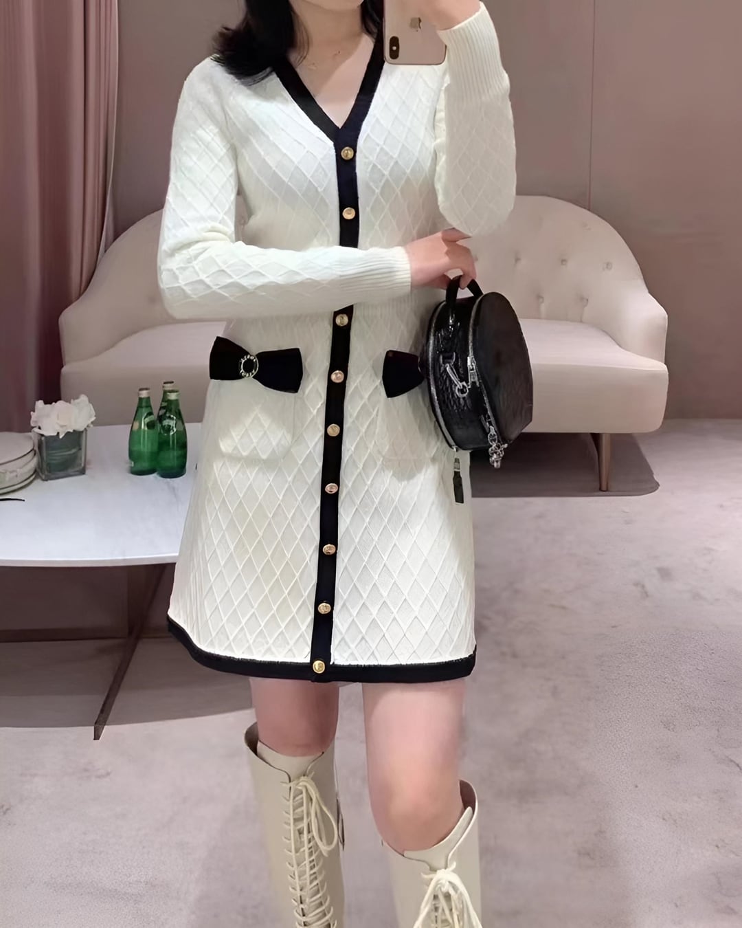 バイカラーリボンニットワンピース(2 colors) 24WP01018