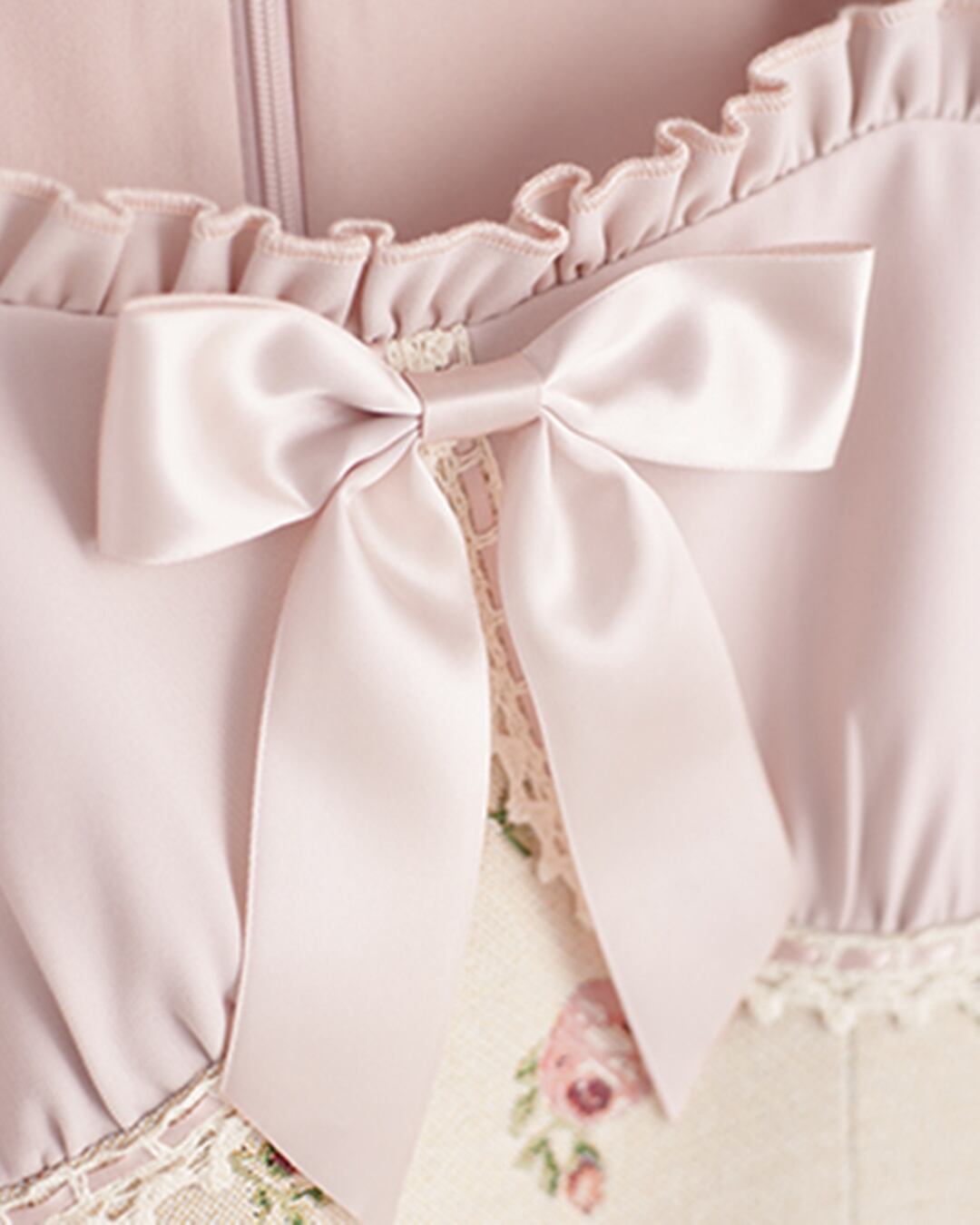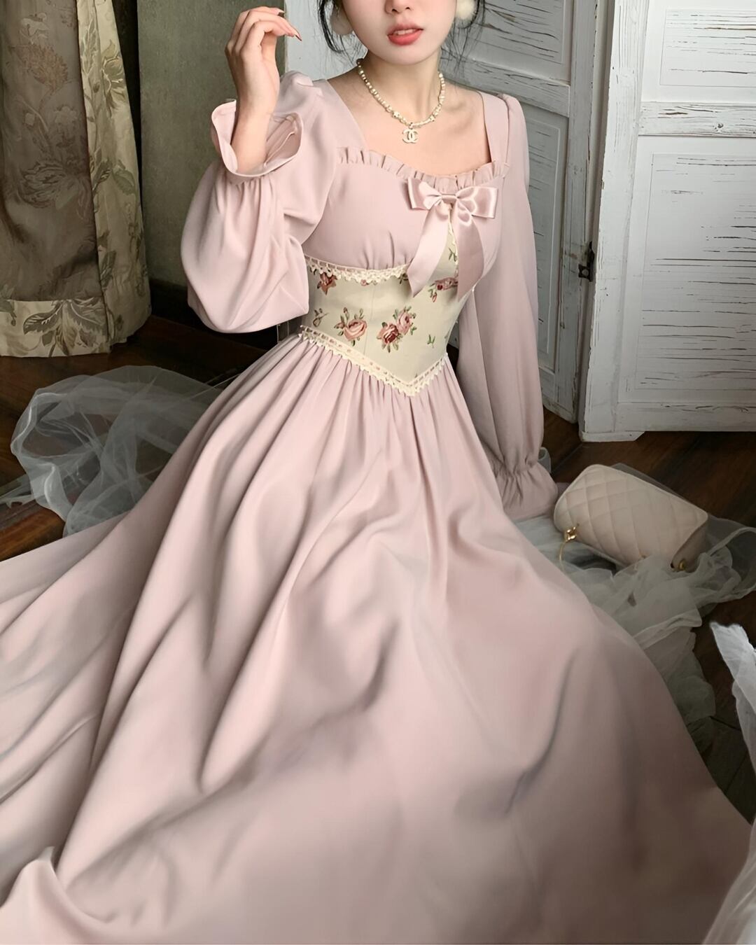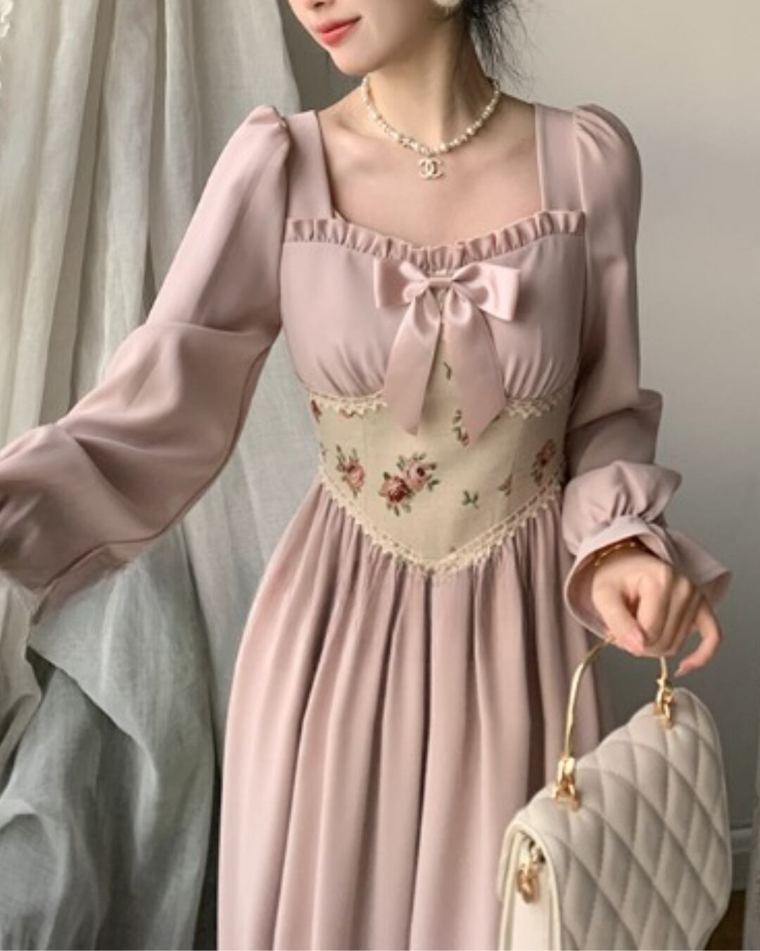 【XS/Sサイズ残り在庫わずか】フラワーコルセットリボンワンピース 24WP01053