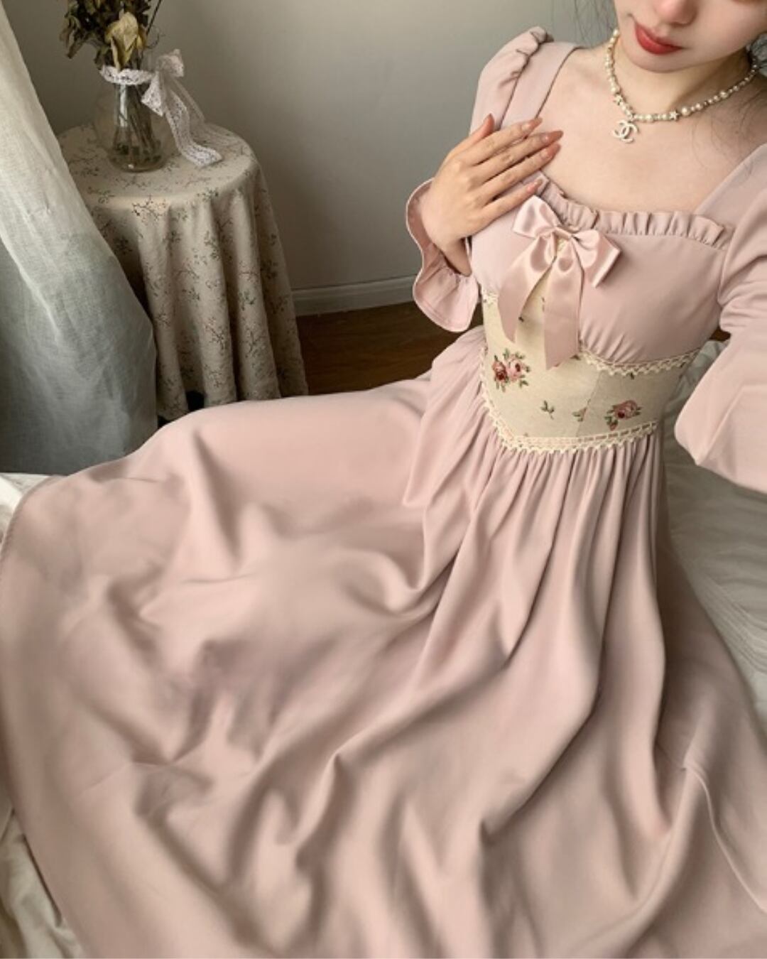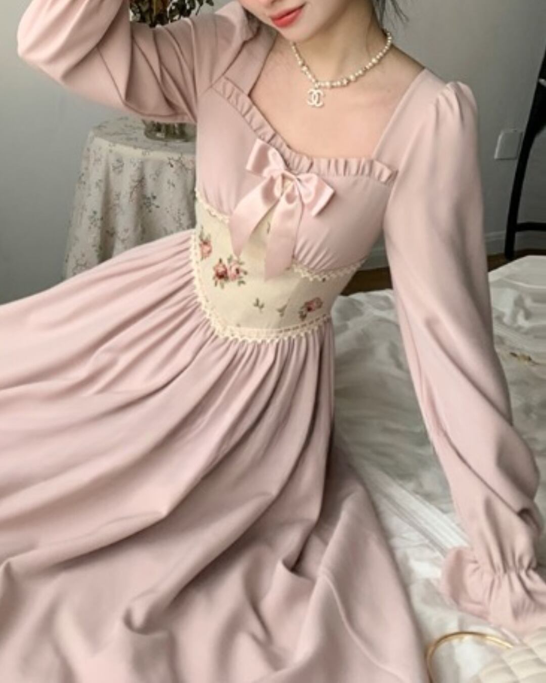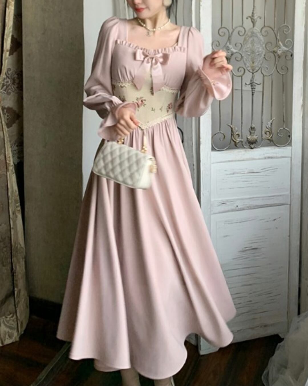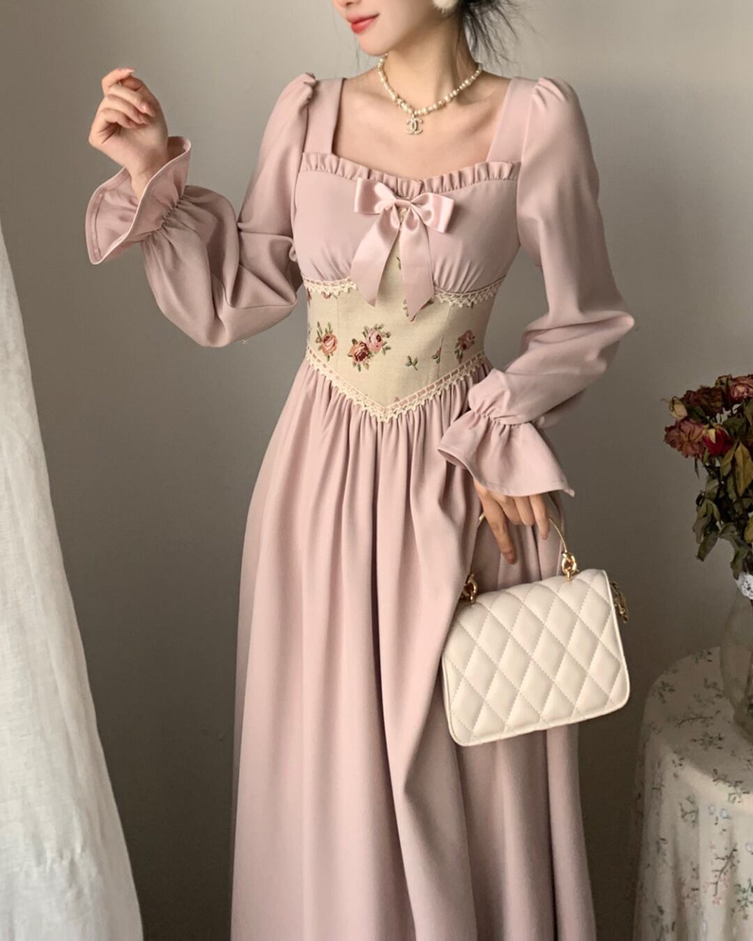 【XS/Sサイズ残り在庫わずか】フラワーコルセットリボンワンピース 24WP01053