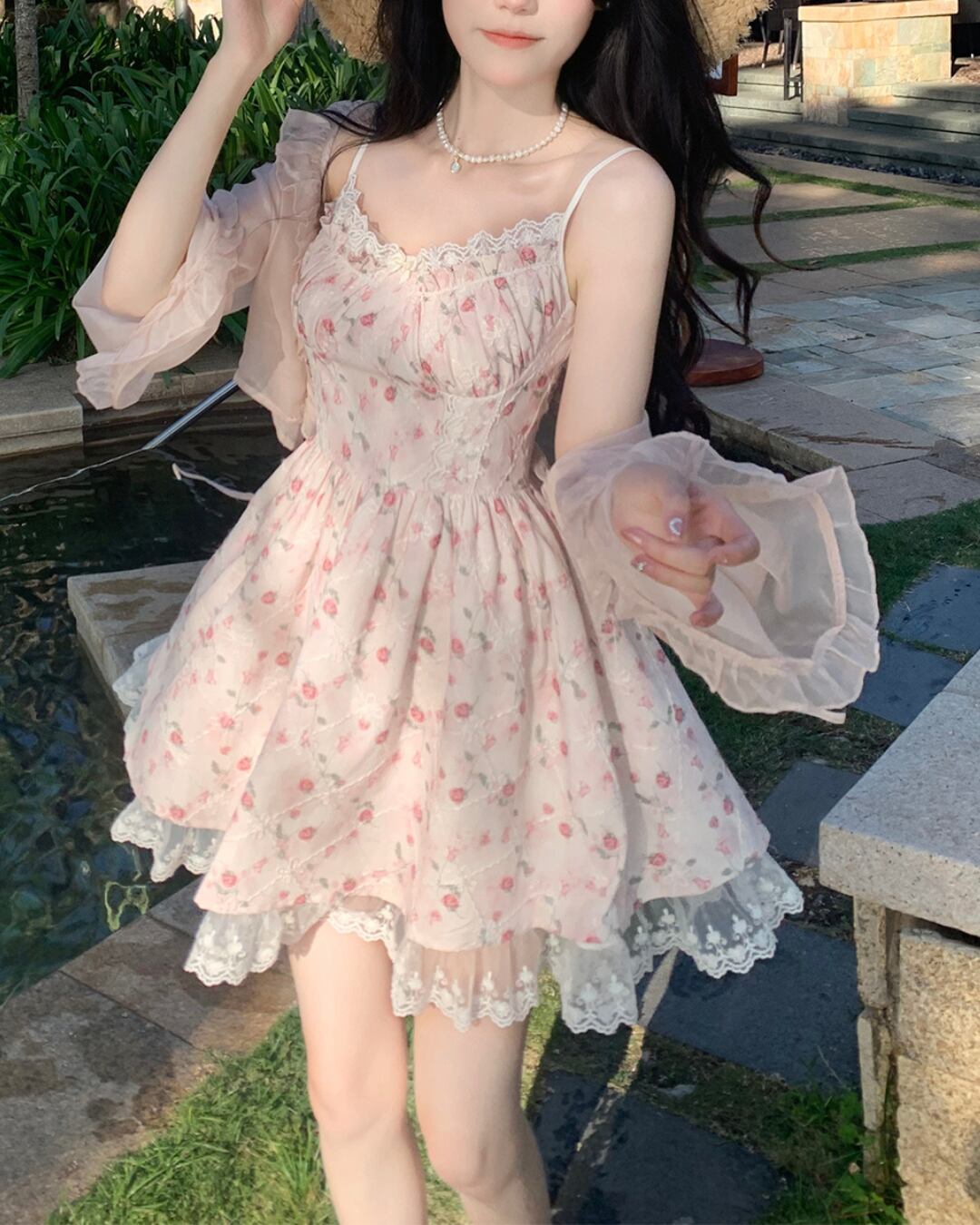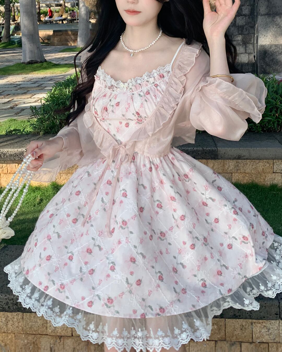 【Lサイズ残り在庫わずか】ローズレースキャミワンピース 24SP01054