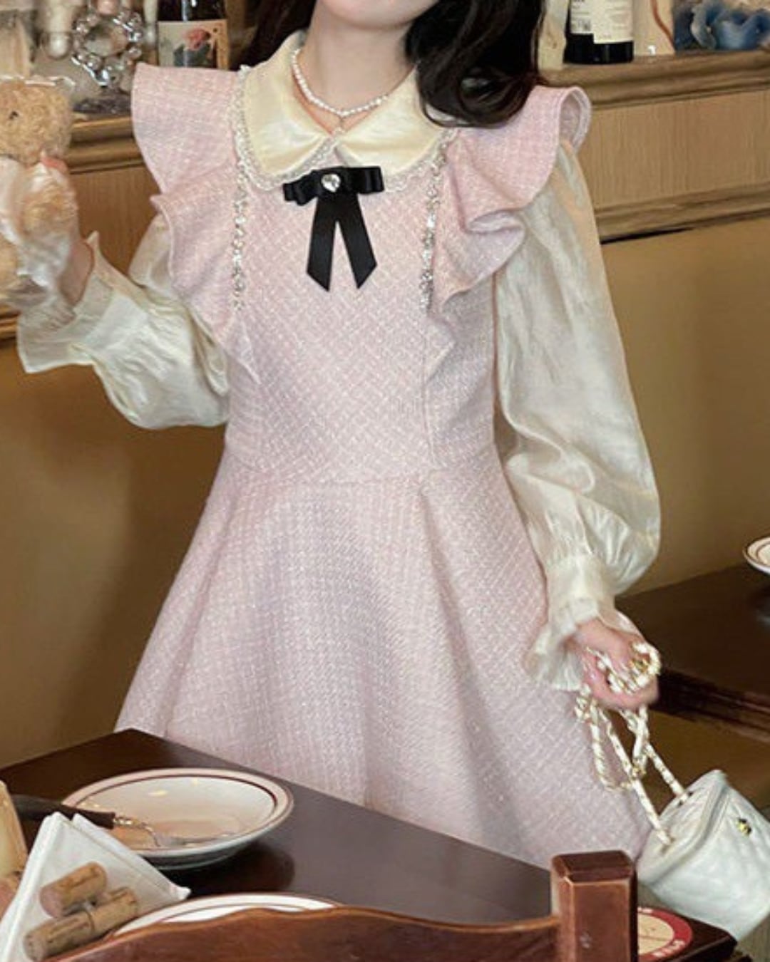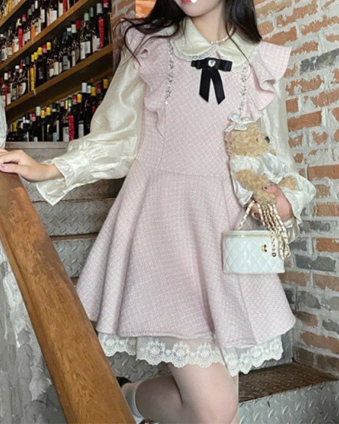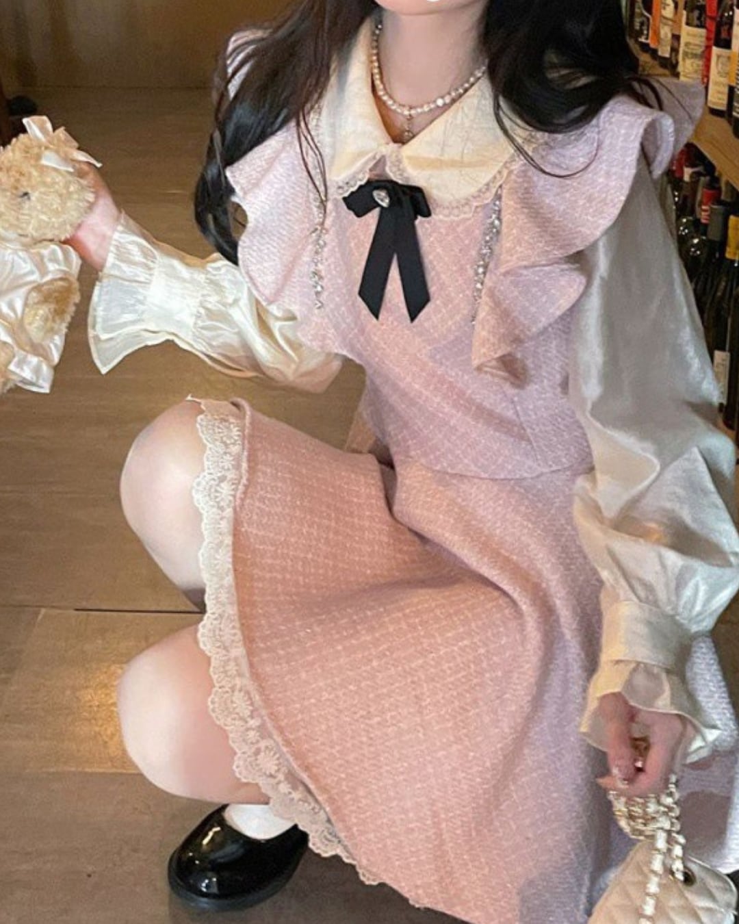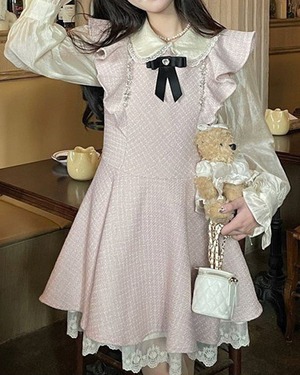 フリルピンクワンピース&ブラウスセット 24WP02044