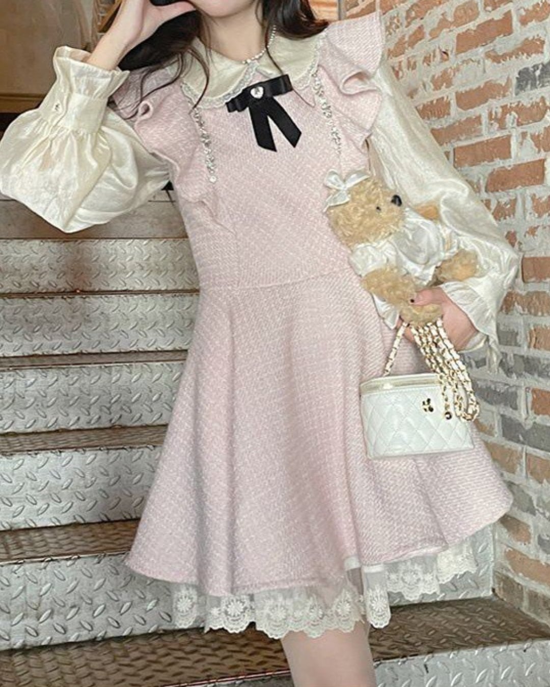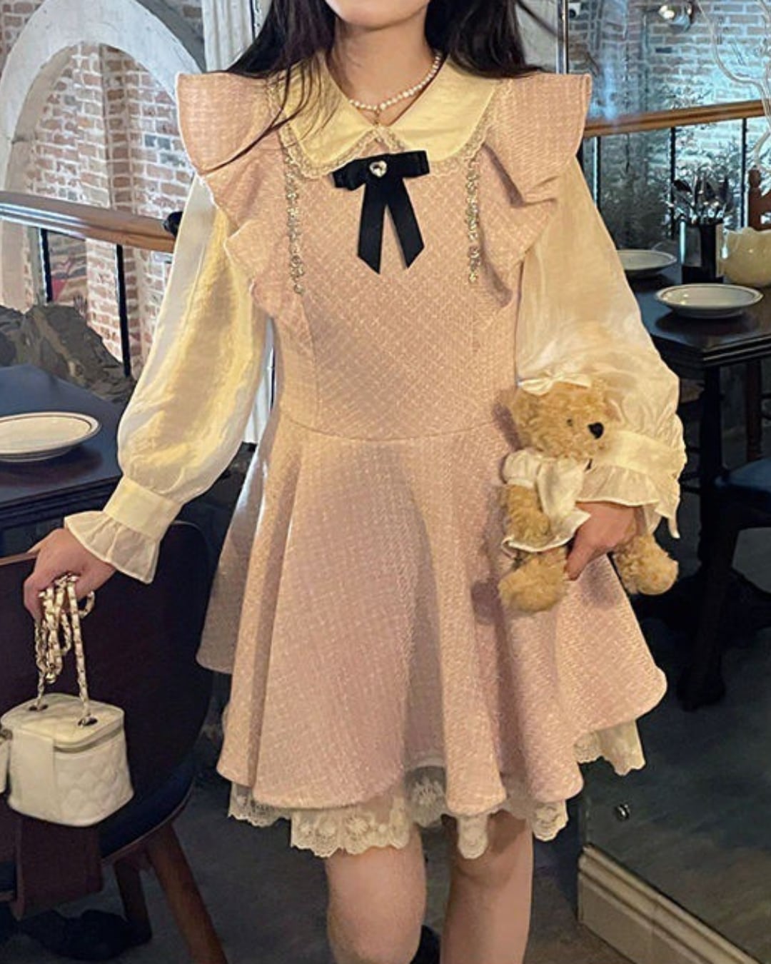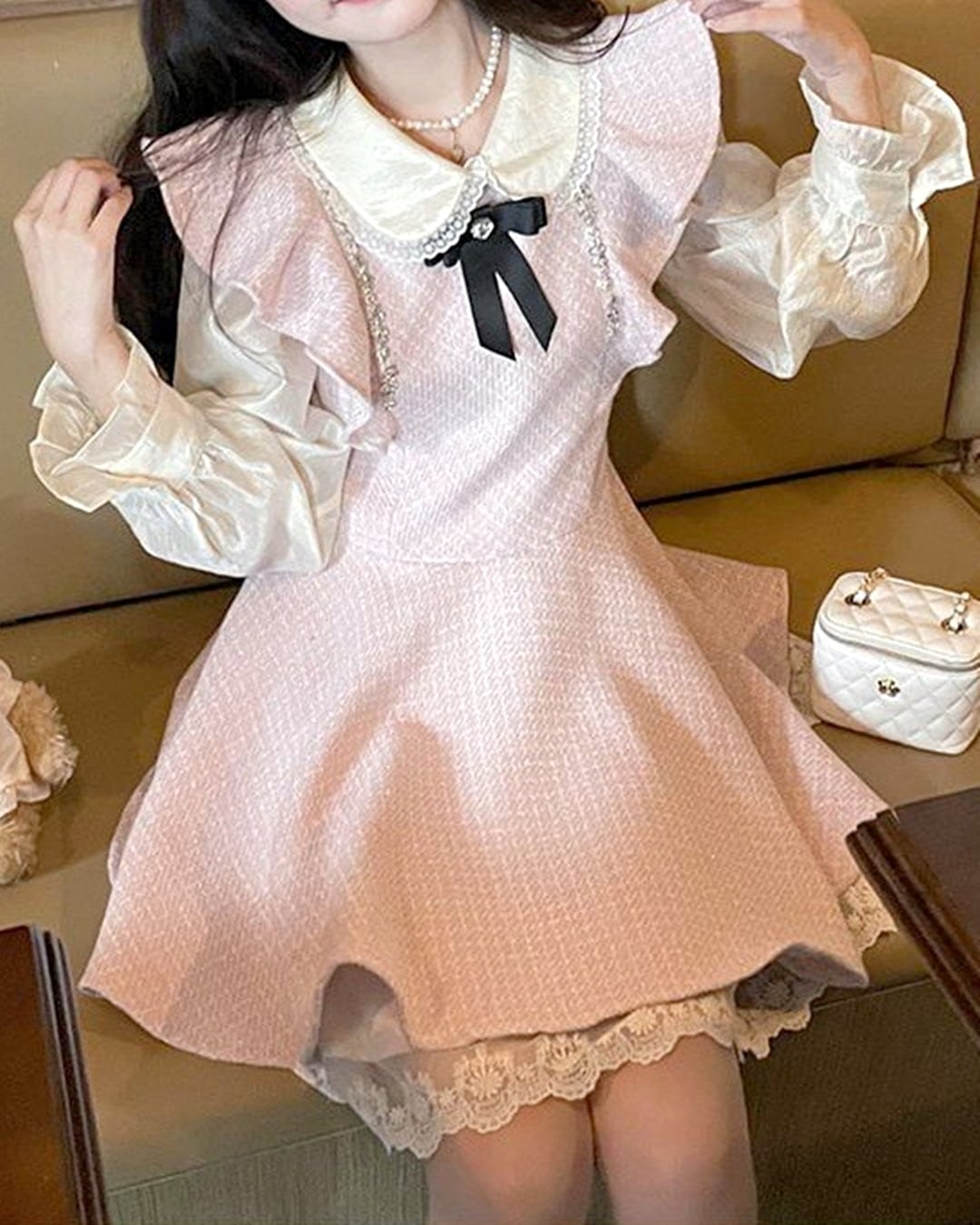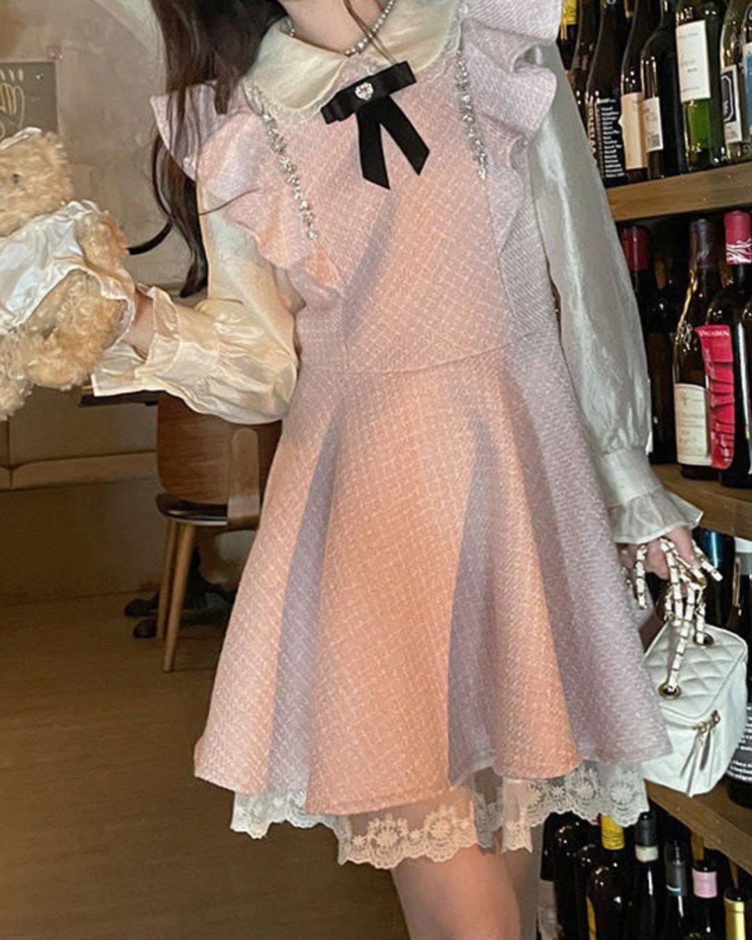フリルピンクワンピース&ブラウスセット 24WP02044