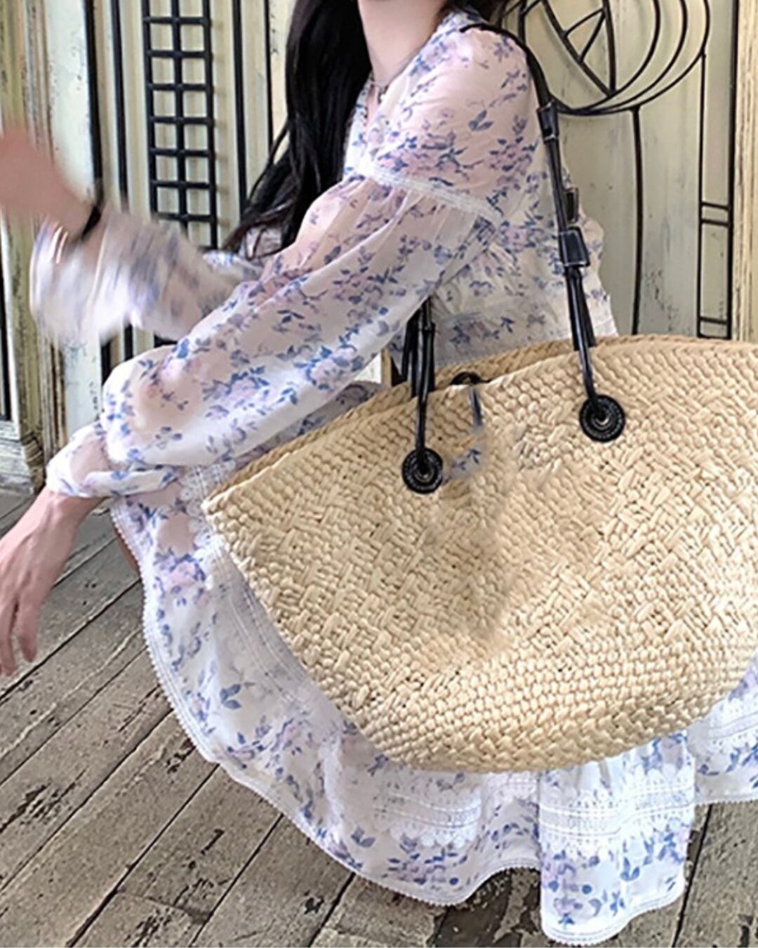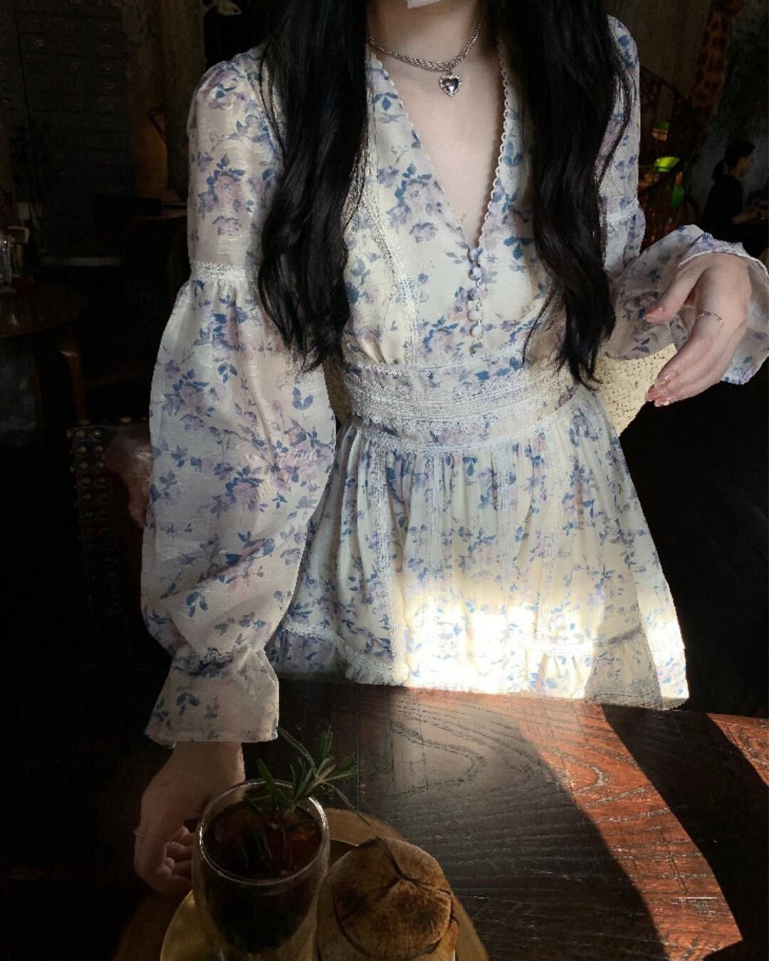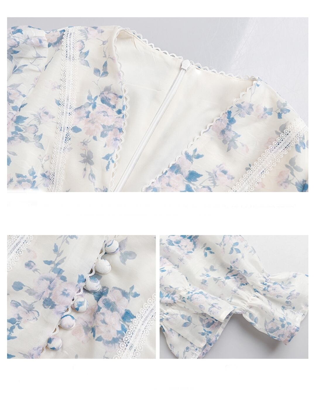 ブルーのフラワープリントが爽やかな