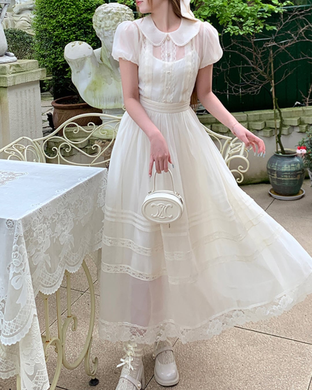パフスリーブピュアホワイトレースワンピース 2404098