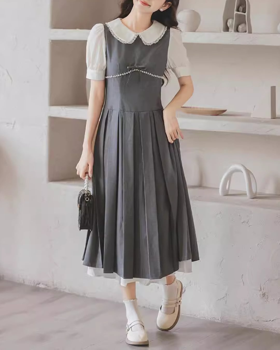 フェイクブラウスフレンチグレーワンピース 2408002