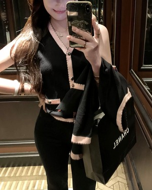パイピングピンクカーディガン&タンクトップセット(3 colors) 24WP08103