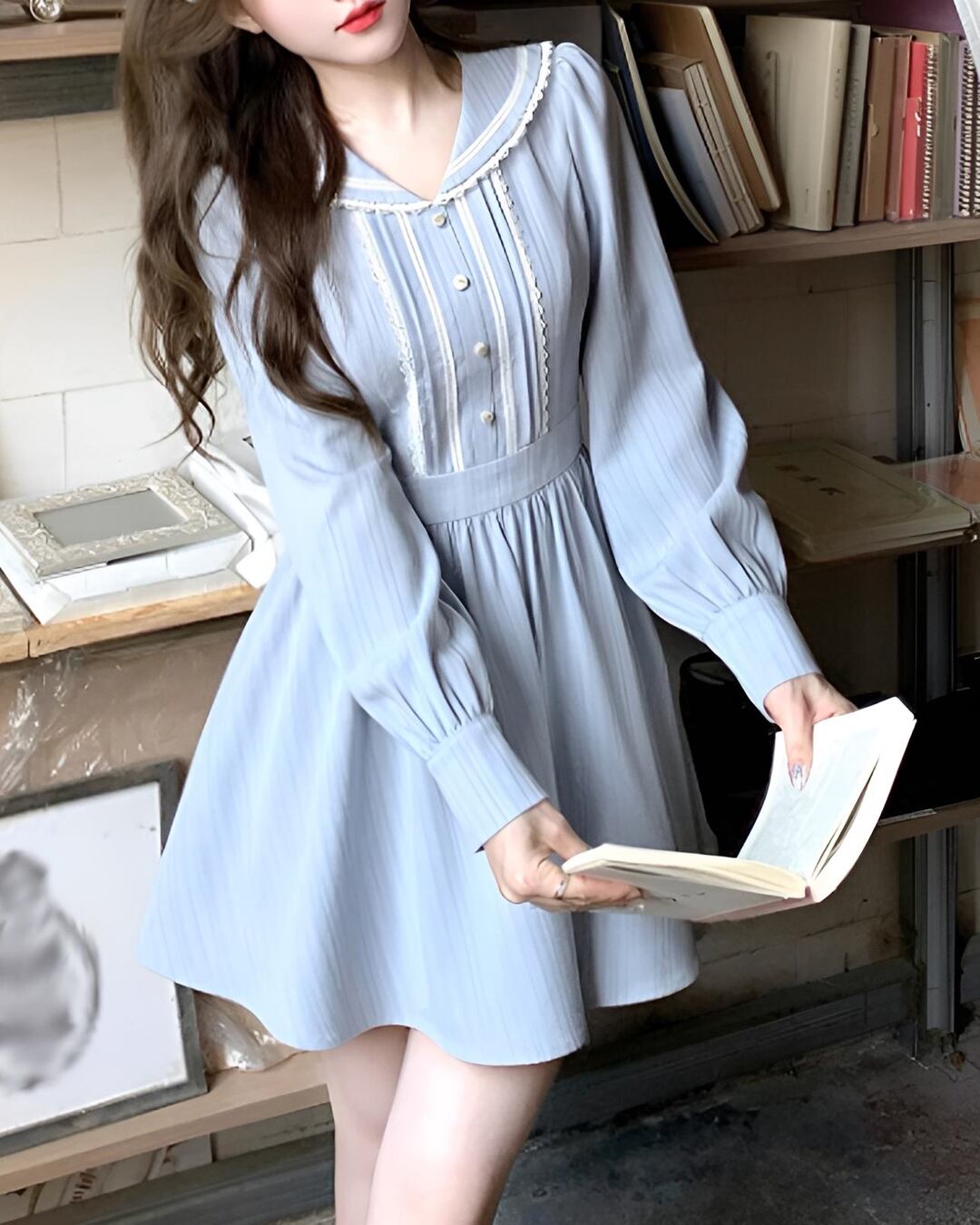 襟元のセーラーカラーが程よい甘さをプラスし