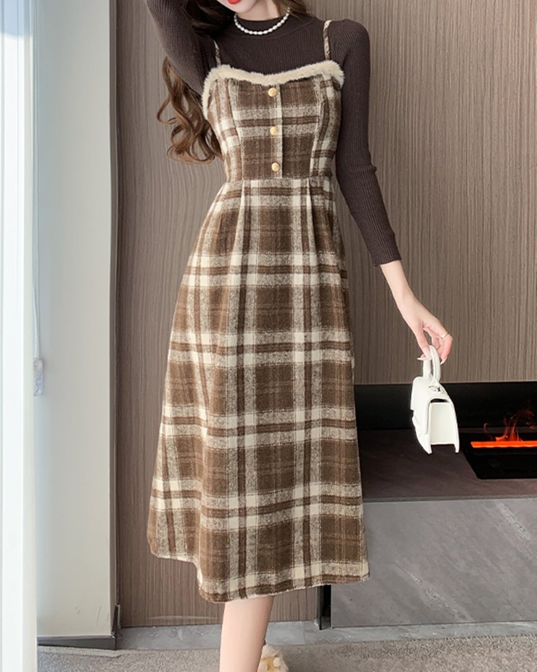 ファーチェックワンピース&ニットセット(2 colors) 24W10044
