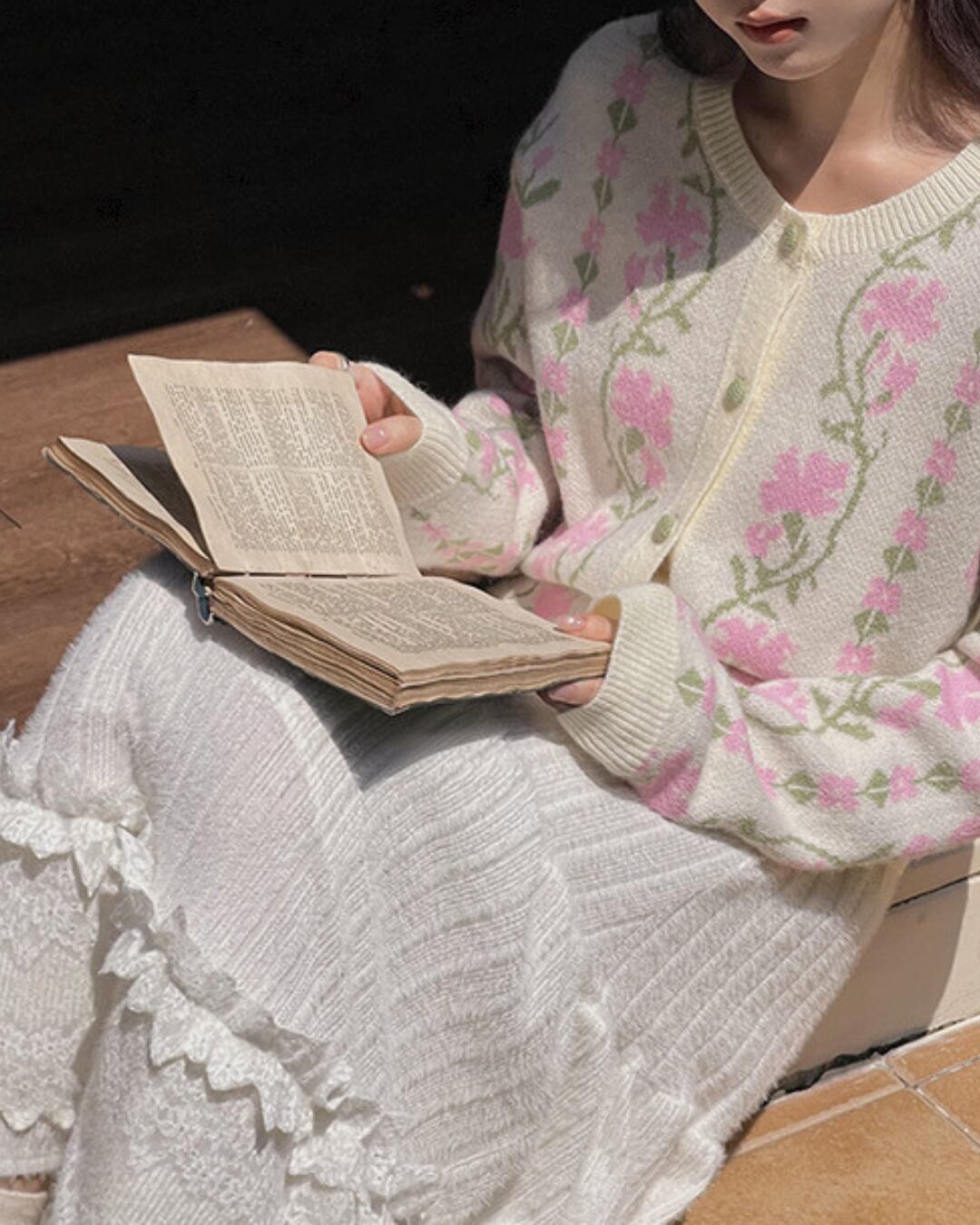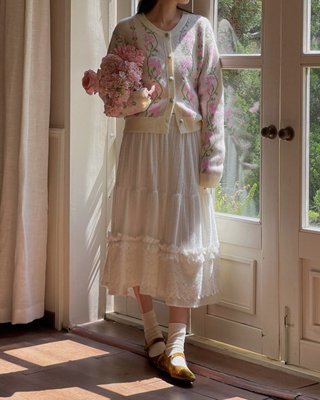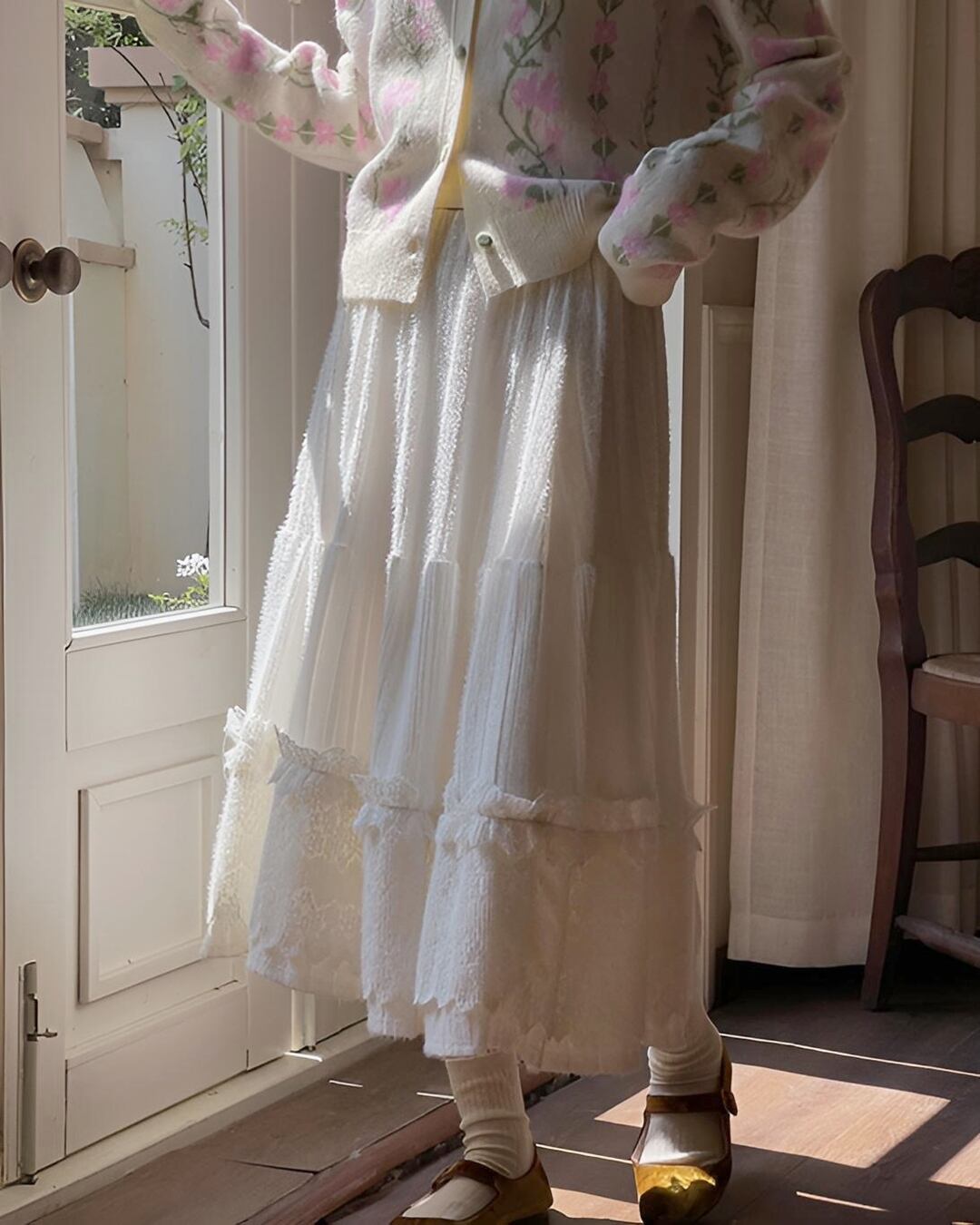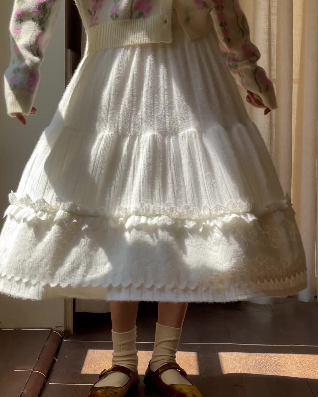 暖かな素材感で肌寒い日のフェミニンスタイルに