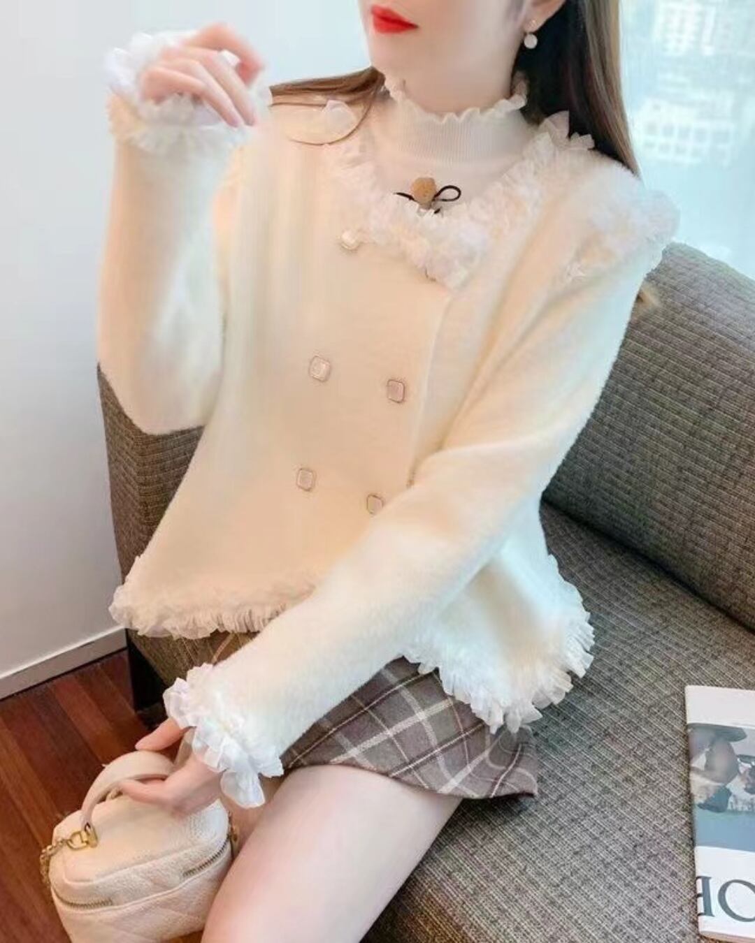 フェイクミンクフリルカーディガン(2 colors) 24W11002