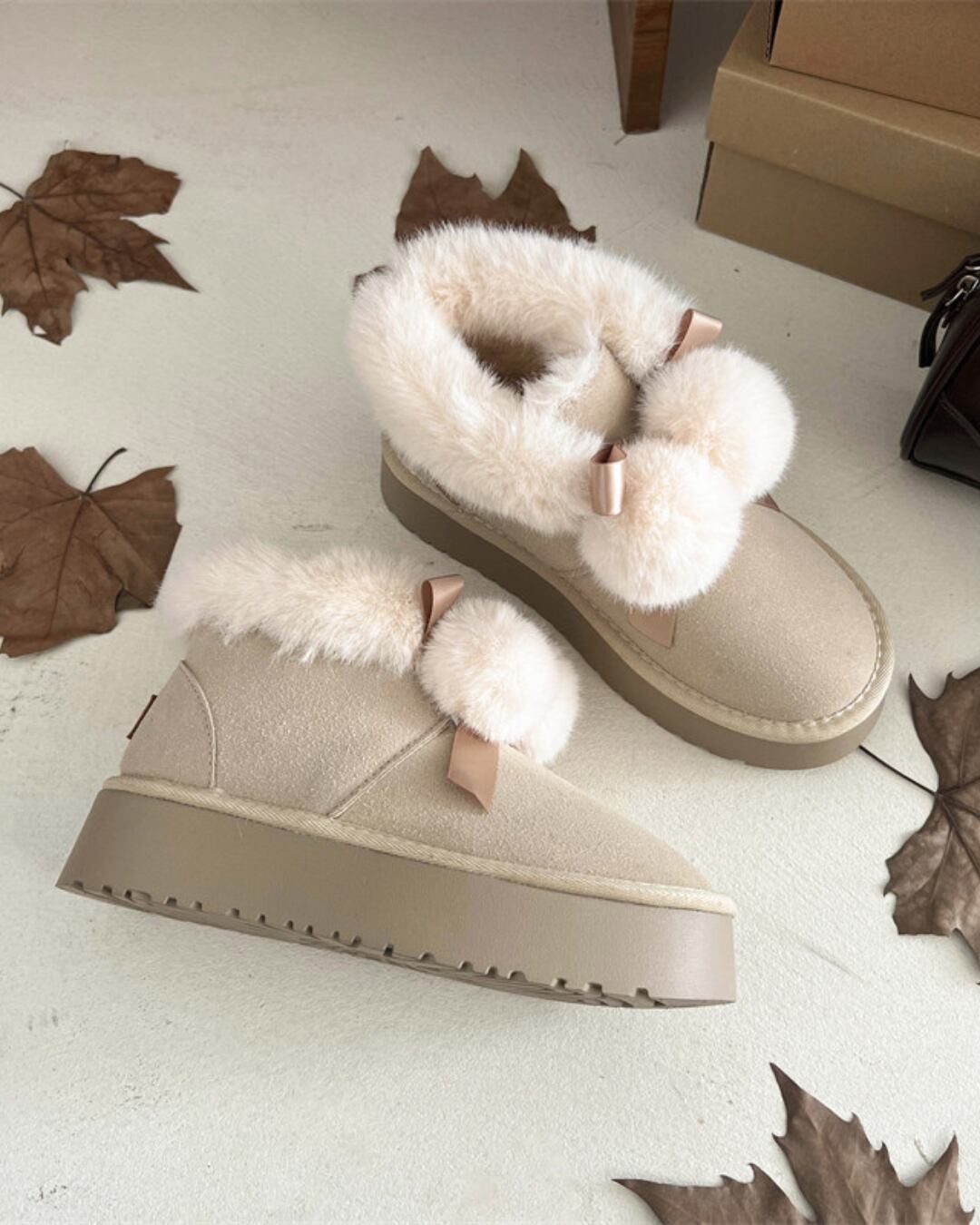 ボンボンファーリボンショートブーツ(2 colors) 24W11009