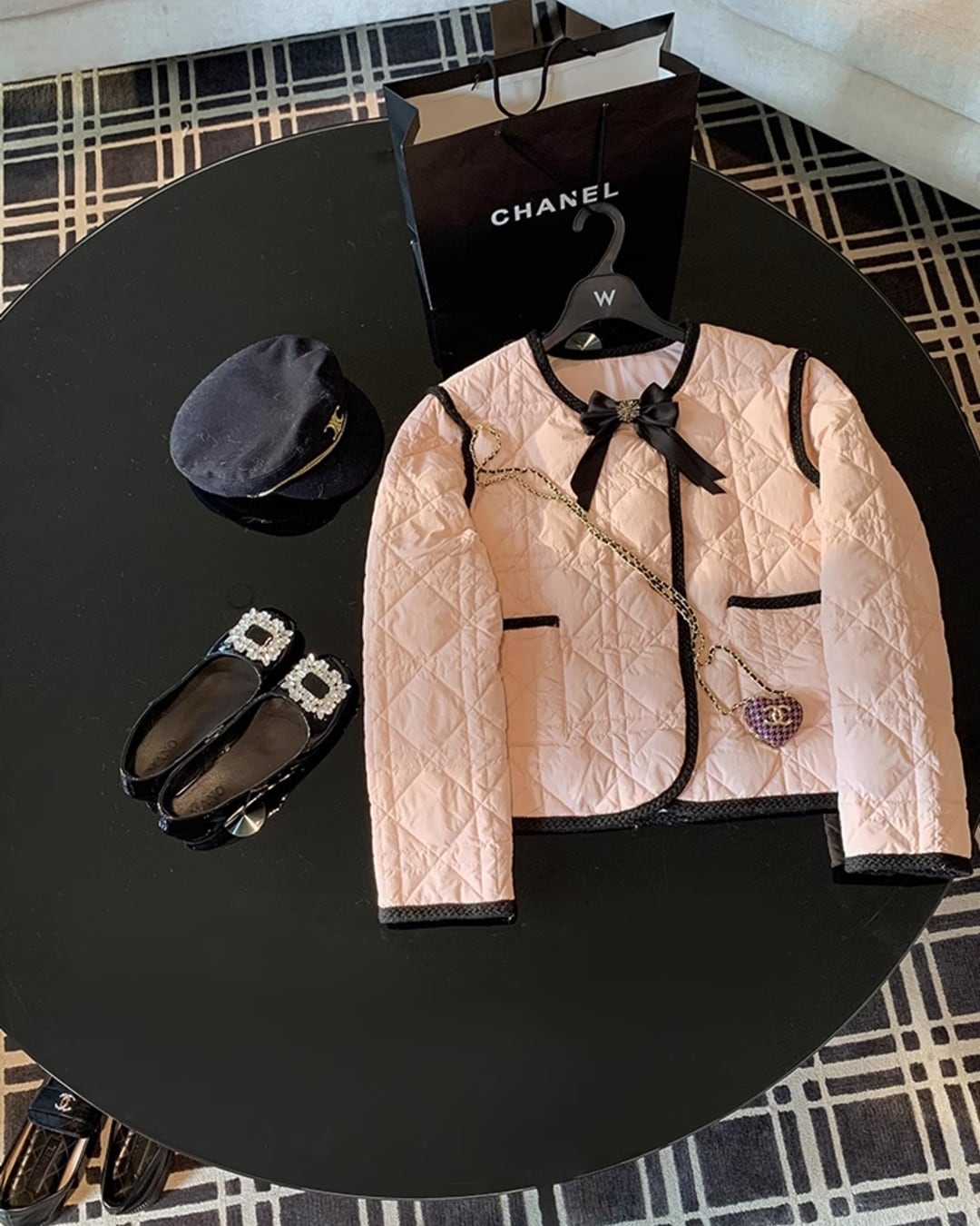 ピンクにブラックのパイピングが目を惹く
