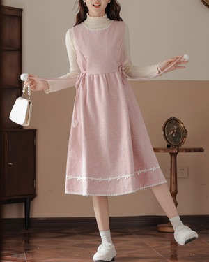 サイドファーリボンピンクワンピース&インナートップスセット 24W12008