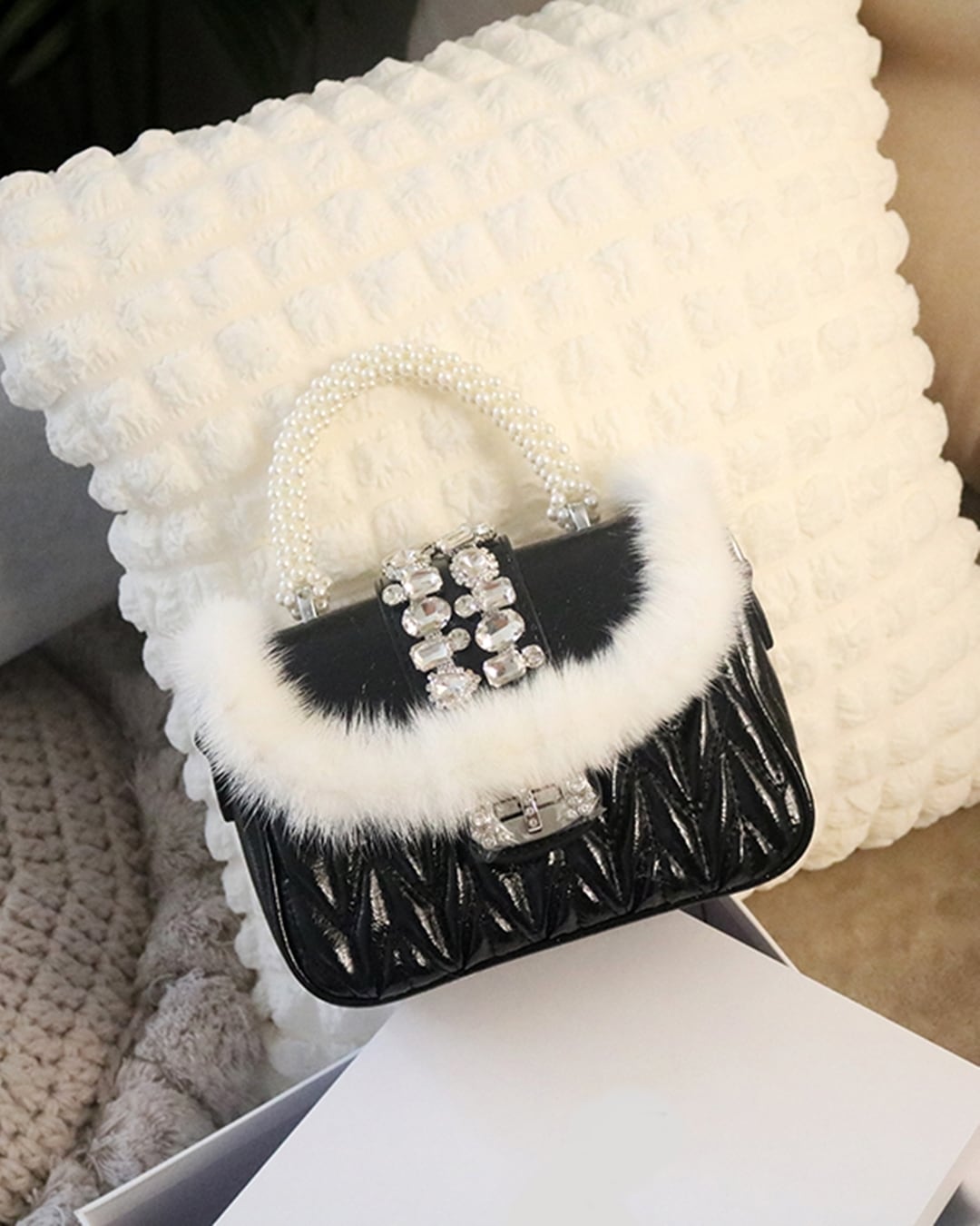 スクエアビジューファーバッグ(2 colors) 24W12009