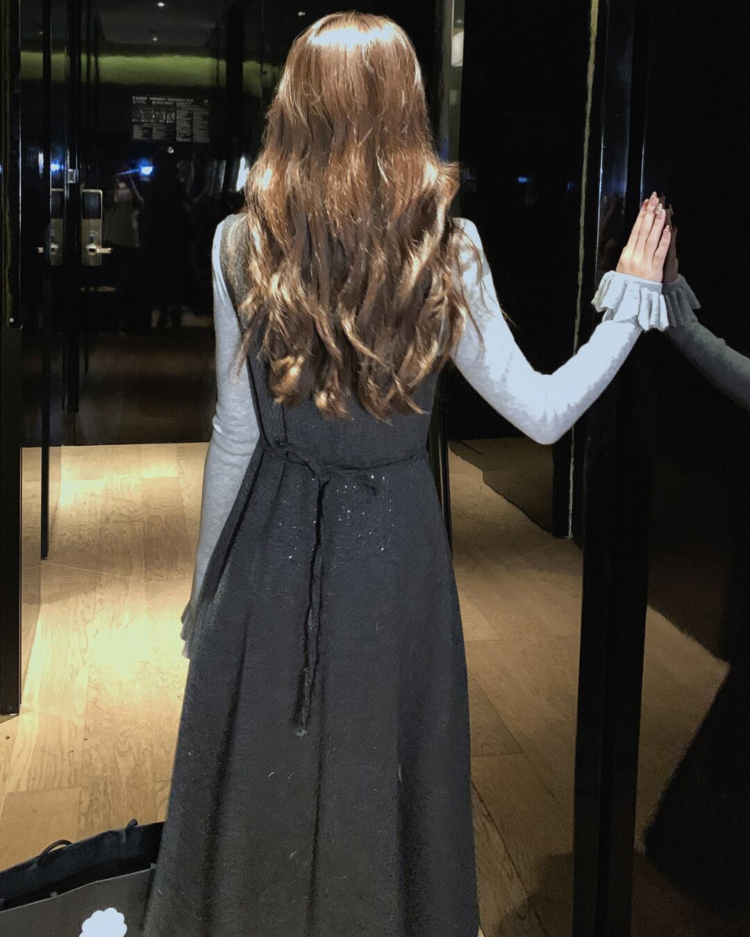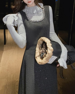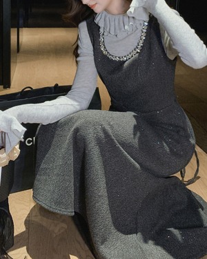 リブ素材のタイトなシルエットなので重ね着にもピッタリ.*・゚